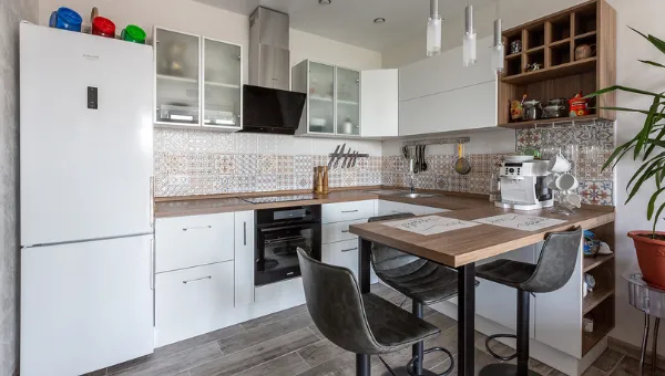 Белая кухня с деревянной столешницей: какие избежать ошибки и какой стиль выбрать