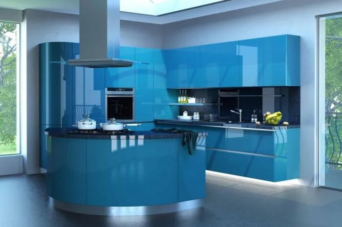 Гибкие силуэты можно найти в классической и современной архитектуре. Сегодня ее приемы перенесены в интерьер. В кухне с концепцией классики радиусные фасады могут украшать шкафчики в виде башенок. В интерьере в стиле хайтек, этники, минимализма остров, полуостров, напольные модули — демонстрировать гибкую волну с плавными изгибами вдоль стен или акцентировать внимание в центре комнаты. Такое декоративное решение придает ощущение динамики в интерьерной композиции, олицетворяет движение воды, стремящейся в бесконечность.