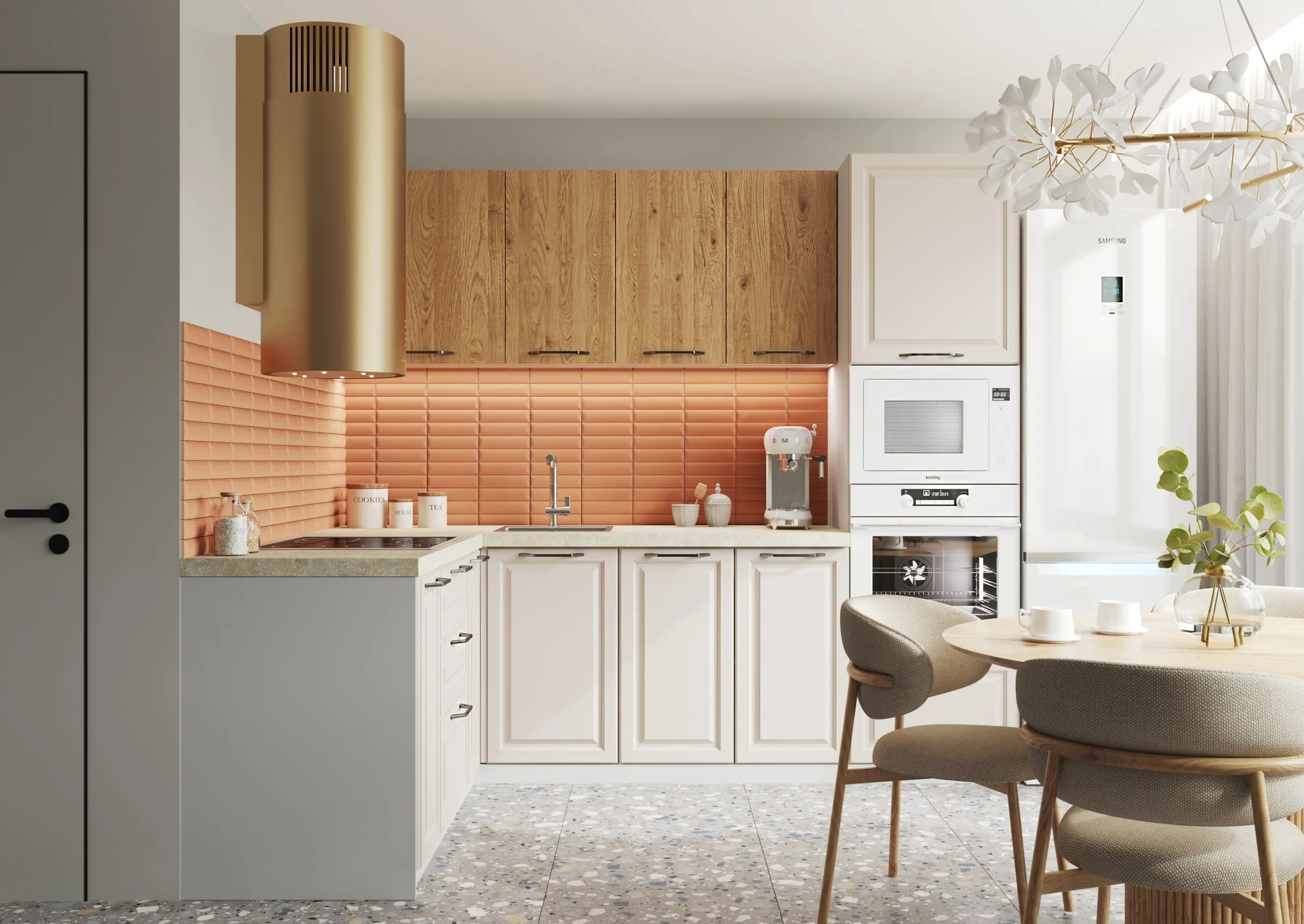 Фасады: МДФ/ПВХ Волна Эрден Тауп серый; Волна Эрден Дуб медовый