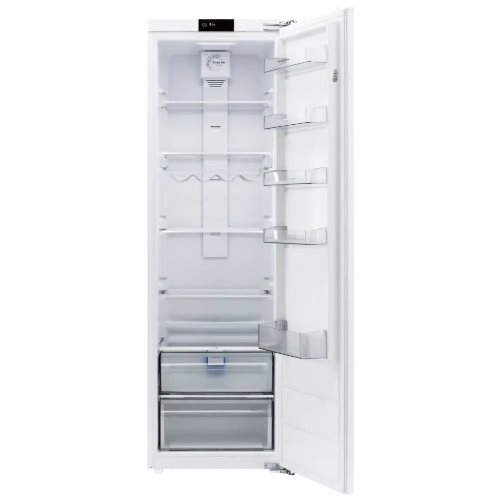 Встраиваемый высокий однокамерный холодильник HANSEL шириной 60 см можно установить на кухне как отдельный элемент или в паре с высоким с морозильником. Вместительная холодильная камера с полезным объемом 300 л, оснащена 5 стеклянными полками, 2 ящиками, 5 дверными полками и держателем для бутылок, благодаря которым вы сможете комфортно хранить большое количество продуктов. Холодильник предусматривает статическую систему охлаждения и капельную разморозку, благодаря которым продукты не пересушиваются, а размораживание холодильника происходит автоматически. Модель HANSEL предусматривает удобную боковую LED-подсветку, которая освещает все уровни хранения, а также современное интуитивно понятное сенсорное управление с дисплеем. Для быстрого охлаждения большого количества продуктов вы можете воспользоваться функцией Super Cool, а для качественного хранения фруктов и овощей предусмотрена зона свежести CRISPER ZONE с контроллером влажности Humidity Control и системой устранения этиленового газа и неприятных запахов ULTRA FRESH PRESERVER. Холодильник HANSEL отличается высоким классом энергоэффективности А+, благодаря которому годовое потребление электроэнергии составляет всего 144 кВт.