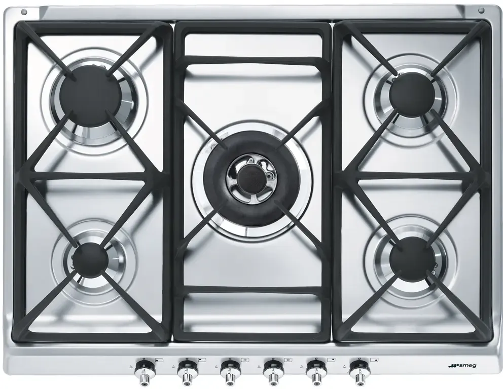 ЭСТЕТИКА и УПРАВЛЕНИЕ: Нержавеющая сталь Чугунные решетки Поворотные переключатели серебристые Крышки горелок эмалированные, одна никелированная ФУНКЦИОНАЛЬНОСТЬ: Автоматический электроподжиг 5 газовых горелок: Задняя левая – 2,55 кВт Передняя левая – 1,05 кВт Центральная – 5,0 кВт с двойным управлением Задняя правая – 1,65 кВт Передняя правая – 1,65 кВт БЕЗОПАСНОСТЬ: Газ-контроль АКСЕССУАРЫ В КОМПЛЕКТЕ: Жиклеры для сжиженного газа G30 ТЕХНИЧЕСКИЕ ХАРАКТЕРИСТИКИ: Тип газа: природный G20 Мощность подключения: 1 Вт Номинальная мощность газа: 11,9 кВт Напряжение: 220-240 Вт Частота тока: 50/60 Гц