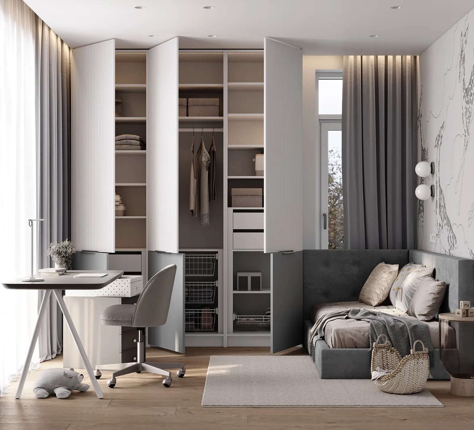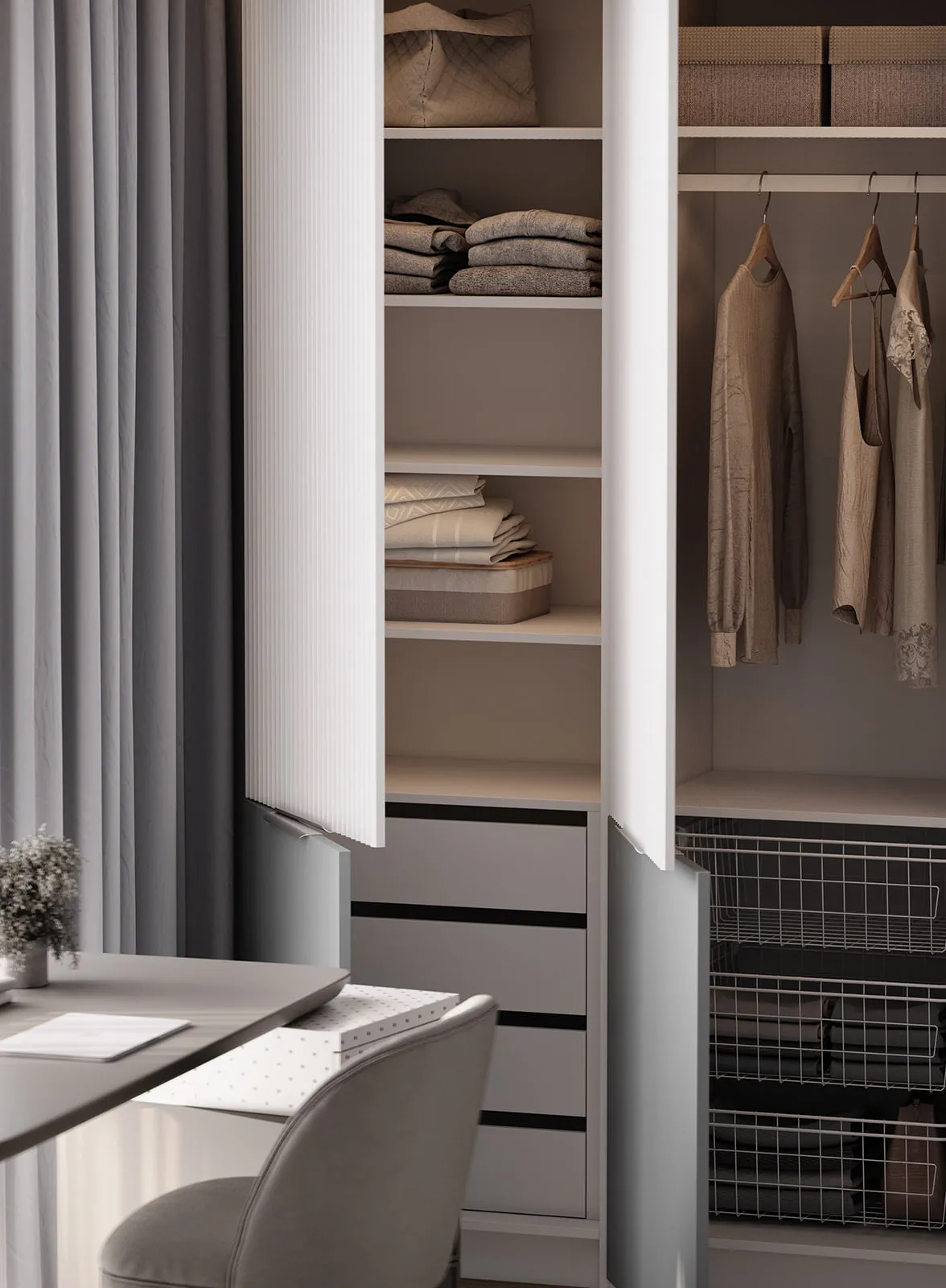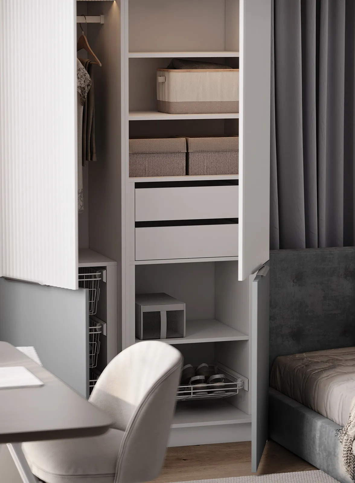 Фасады: Флавио (крашеная МДФ), цвет NCS S 1000-N Глянец / «Система» (крашеная МДФ), цвет NCS S 3010-B10G Матовый