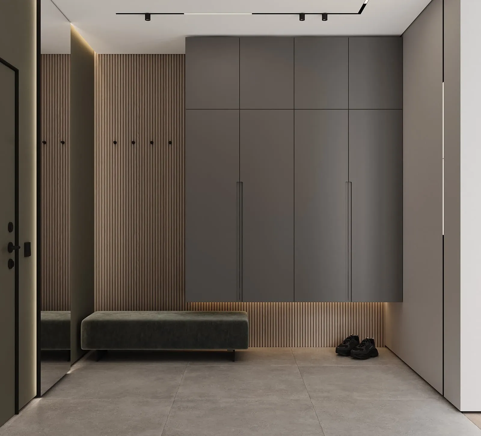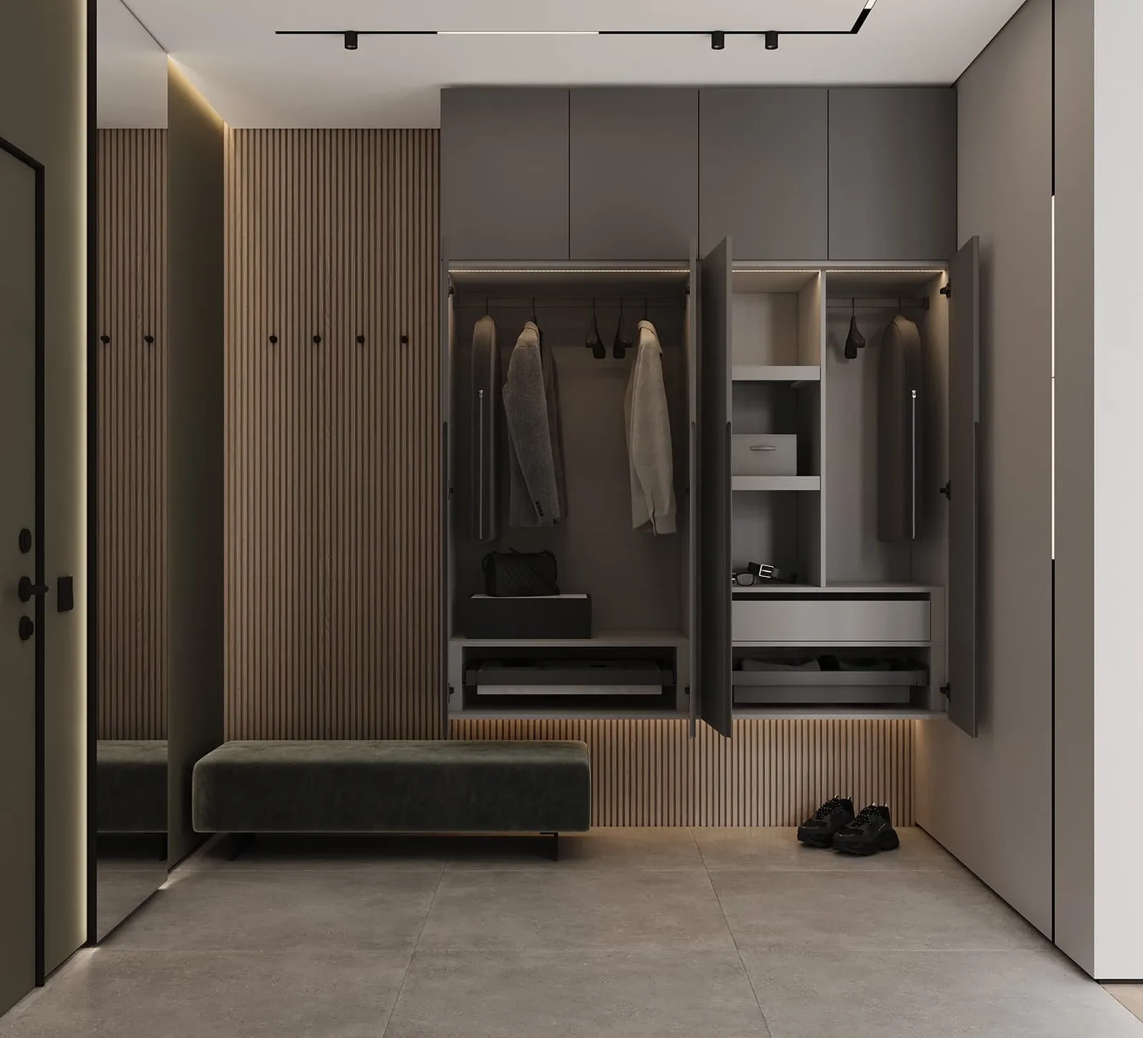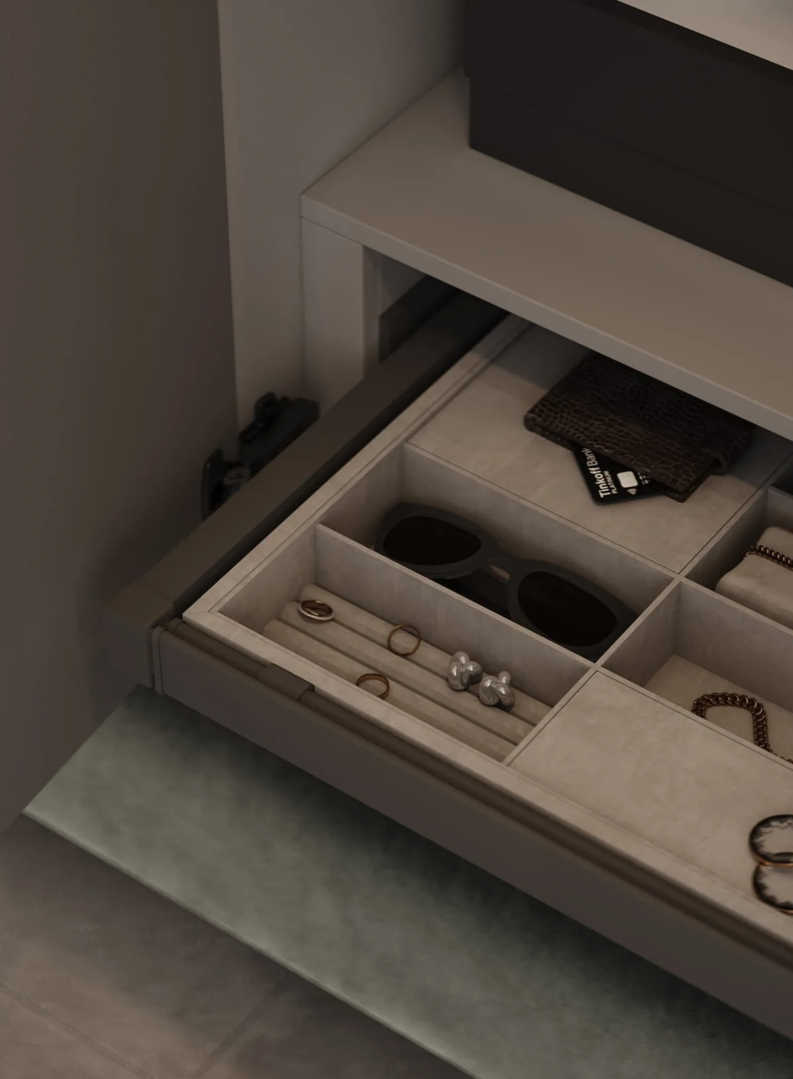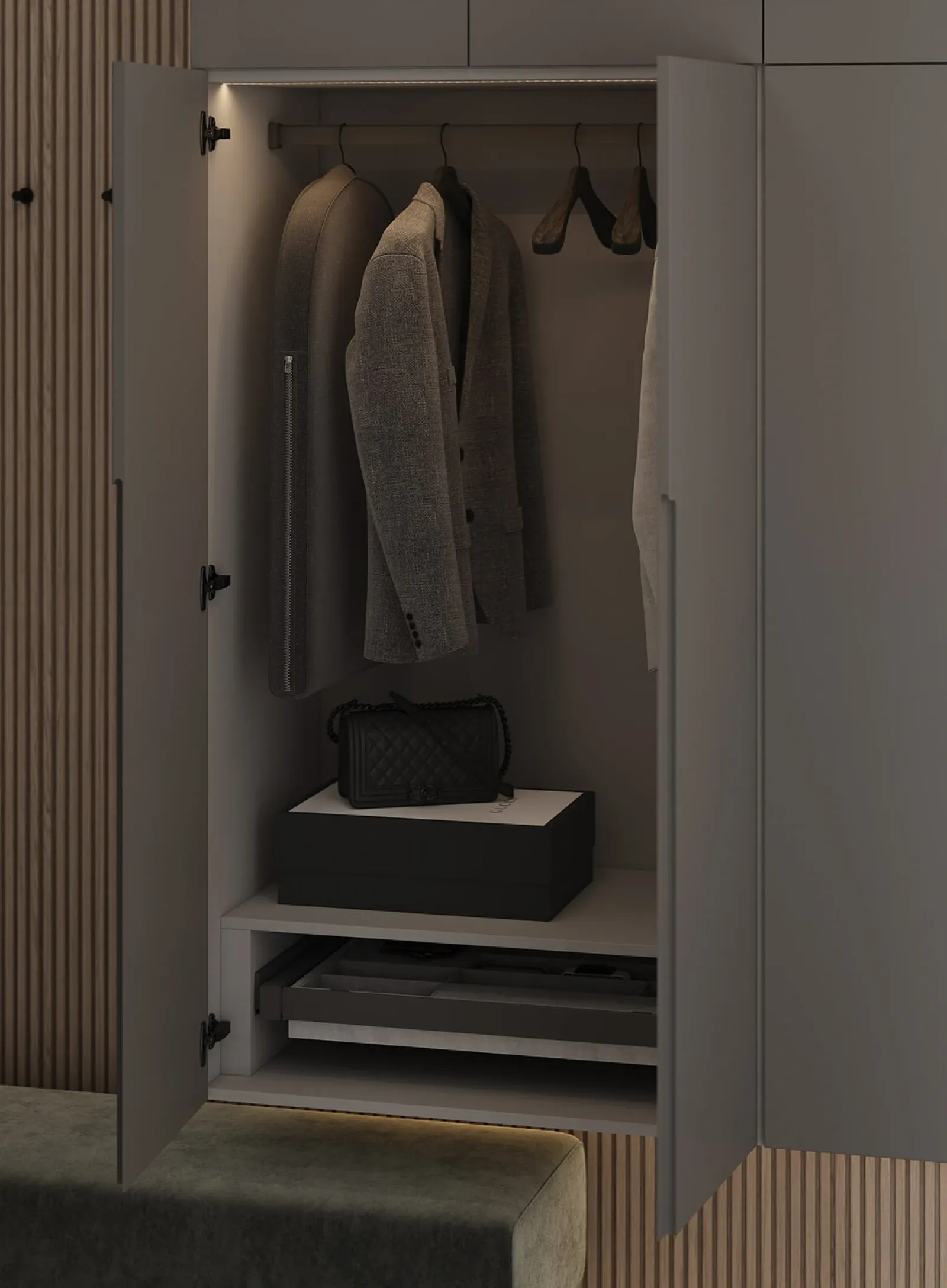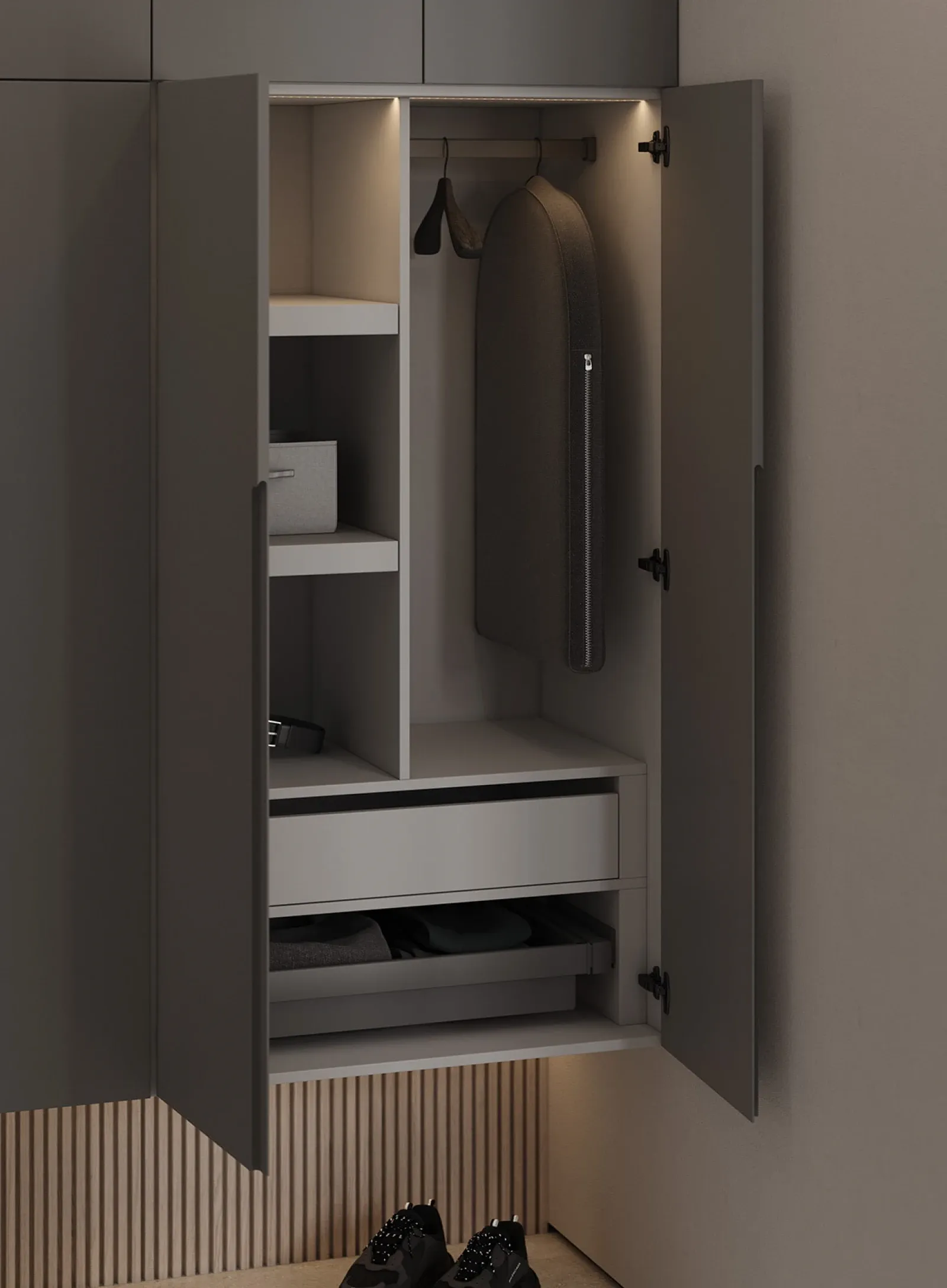 КАРКАС, ПОЛКИ, ВЫДВИЖНЫЕ ЯЩИКИ, ЗАДНЯЯ СТЕНКА ЛДСП, цвет Серый Камень ФАСАДЫ Т622 Крашеная МДФ, цвет NCS S 6502-G Матовый