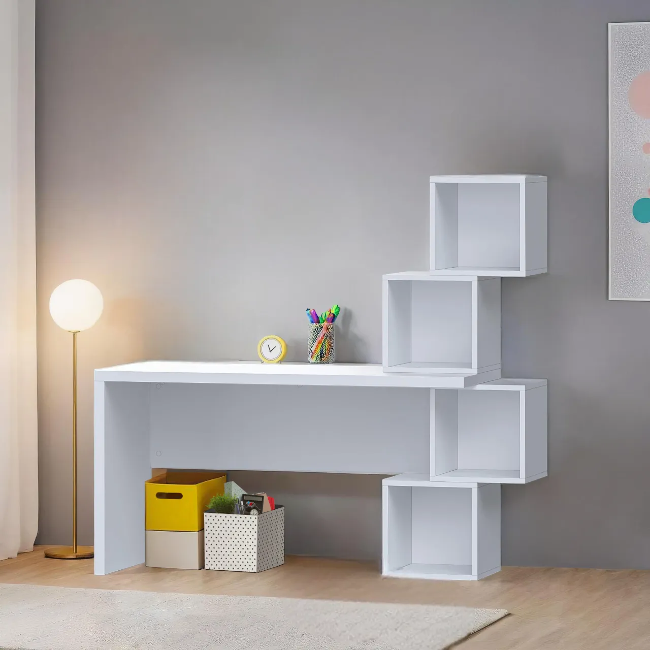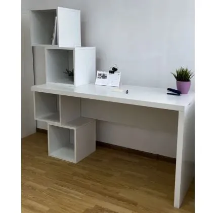 Элегантный и компактный белый стол Рио с полками - идеальное решение для детской комнаты. Он преобразит спальню, добавив удобное место для хранения книг, игрушек и других вещей. Стол включает четыре полки кубической формы, что экономит место и создает дополнительное пространство под столом. Стол Рио сделан из безопасной ламинированной МДФ, которая является экологически чистым материалом, произведенным из натуральной древесины и без вредных связующих компонентов. Стол Рио можно без опасений ставить в детскую комнату, ведь благодаря материалу стол устойчив к различным грибкам и микроорганизмам, что делает его гигиеничными и безопасными в быту.