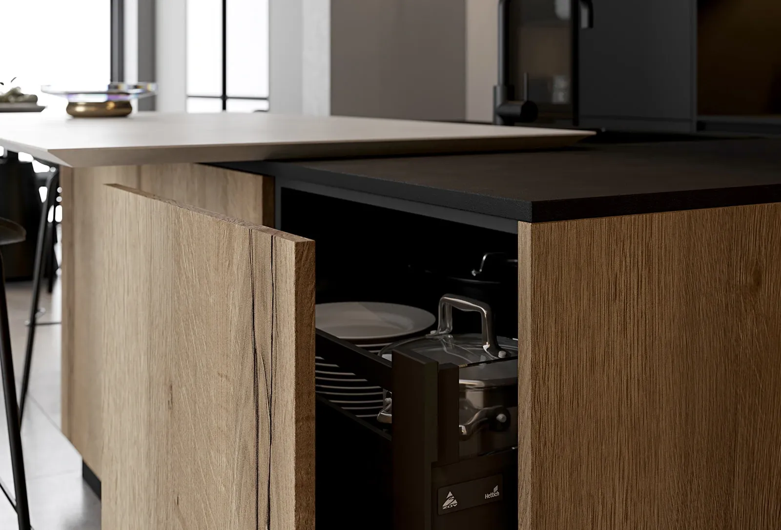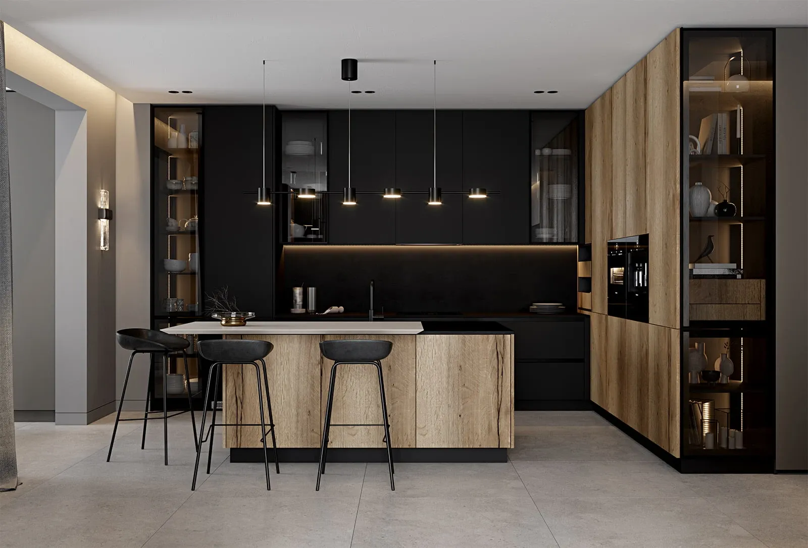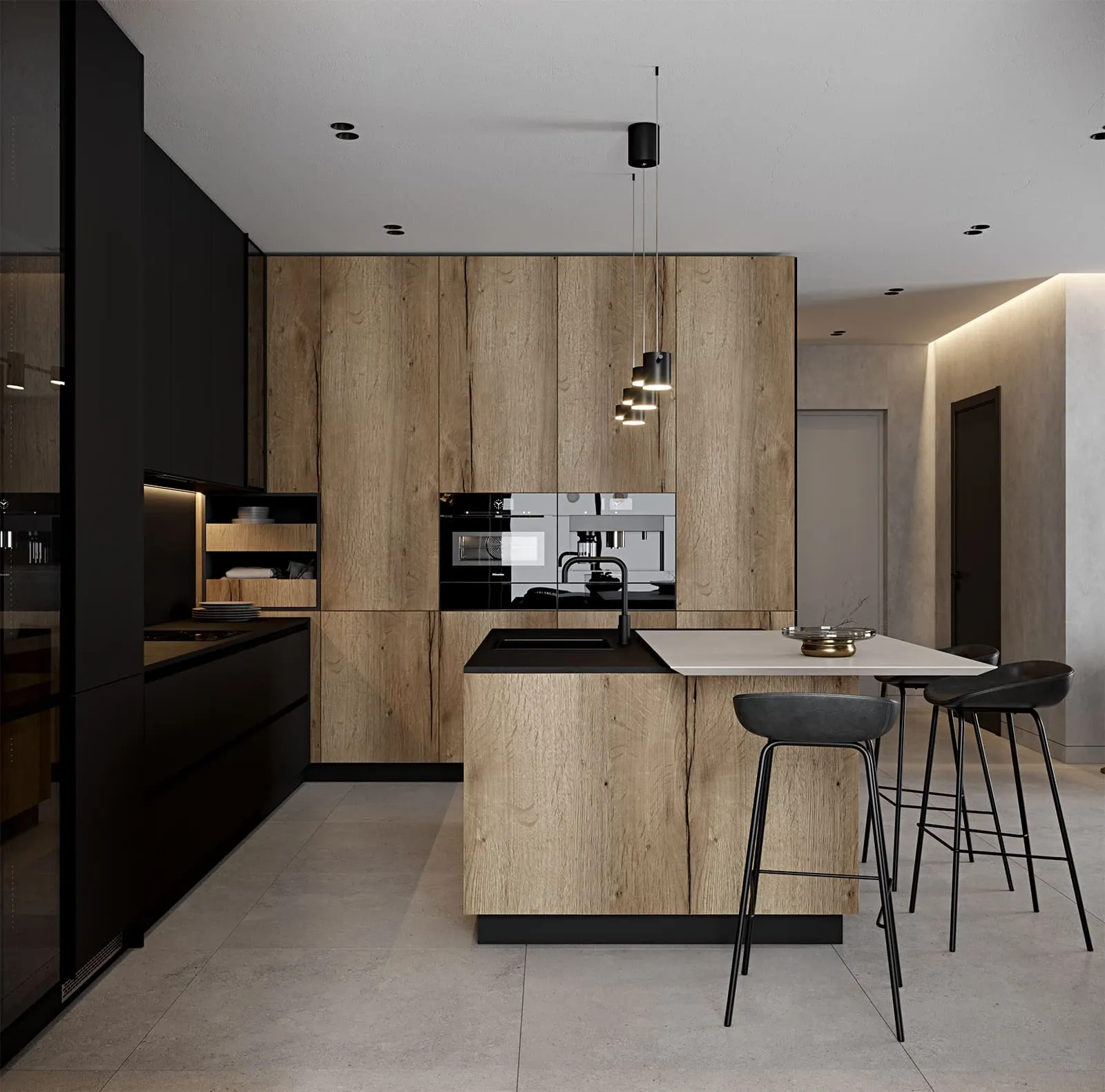 ФАСАДЫ ЛМДФ SUPRAMAT, цвет Черный Супрамат / ЛМДФ Тимбер, декор Галифакс СТОЛЕШНИЦА Пластик HPL, 20 мм