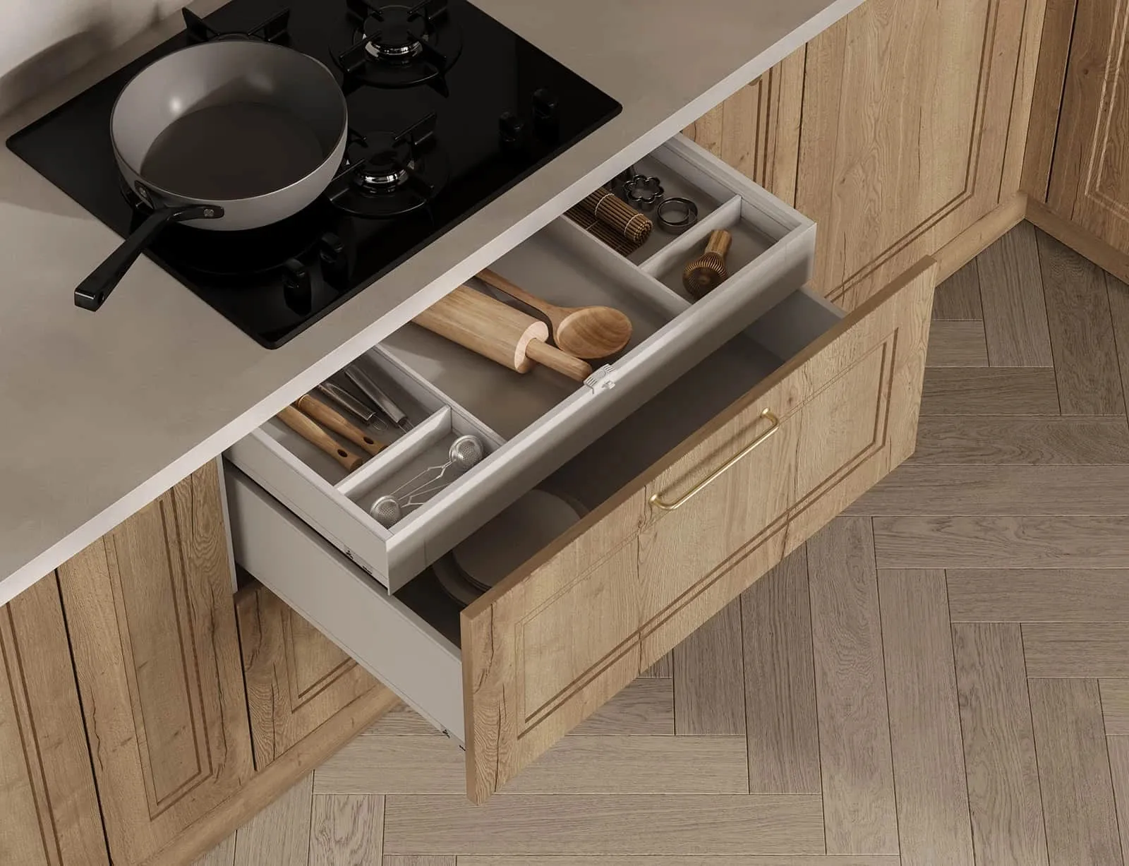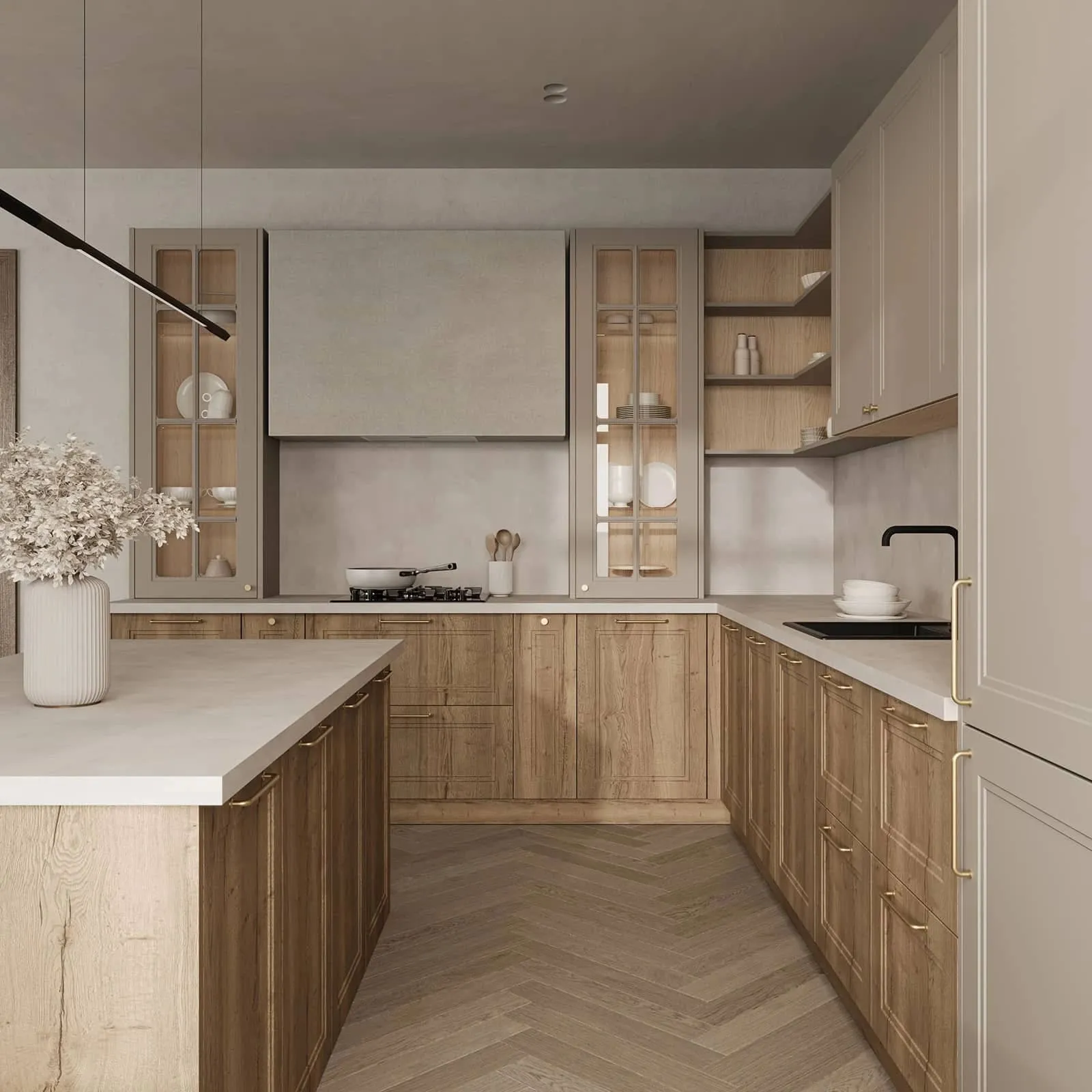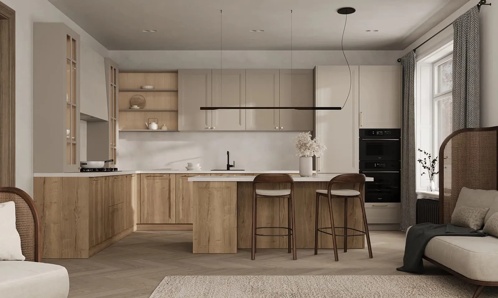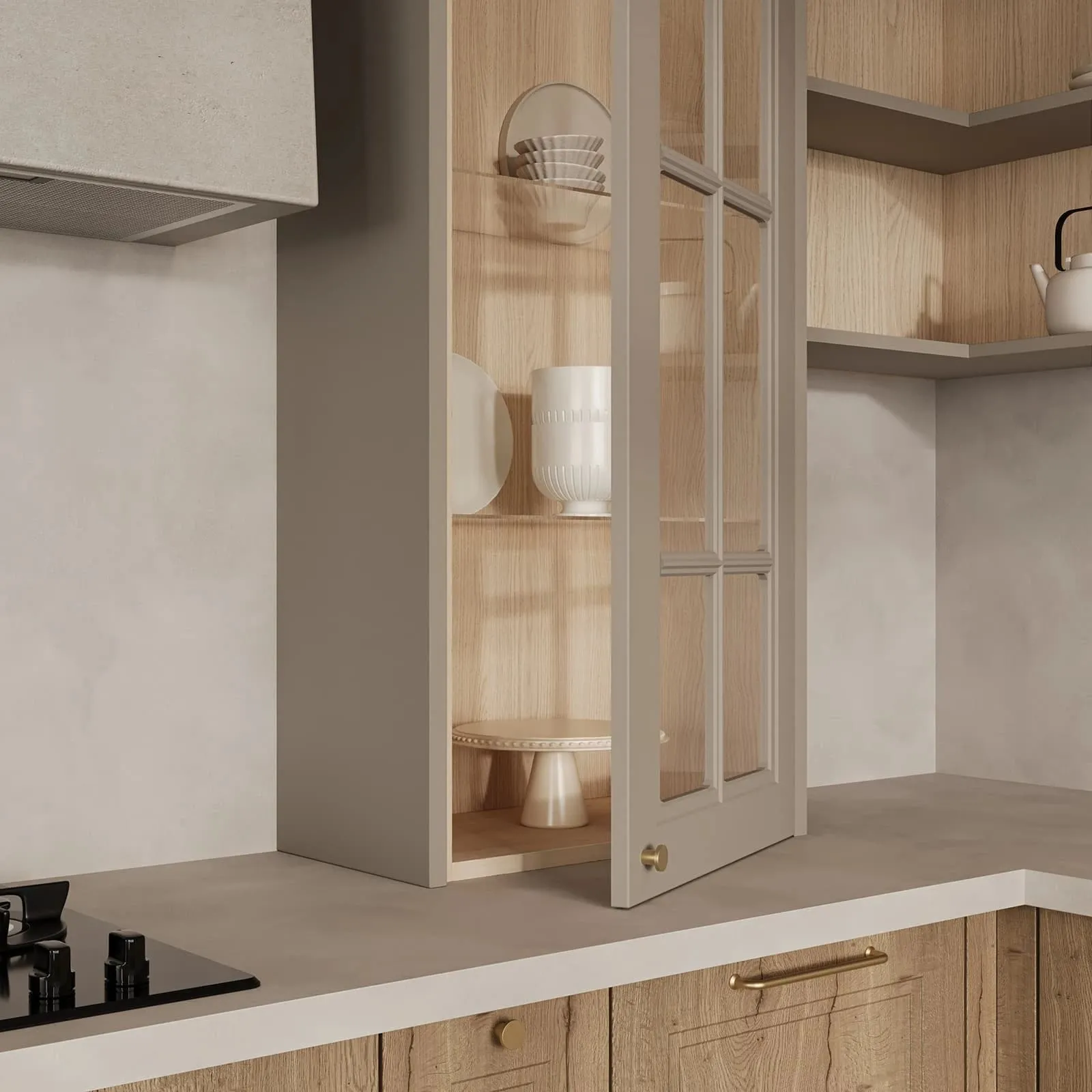 ФАСАДЫ Эйвон (МДФ/ПВХ/PET), цвет Галифакс Натуральный Ф / Тауп Серый Ф / Молочный PET СТОЛЕШНИЦА Пластик HPL, 38 мм