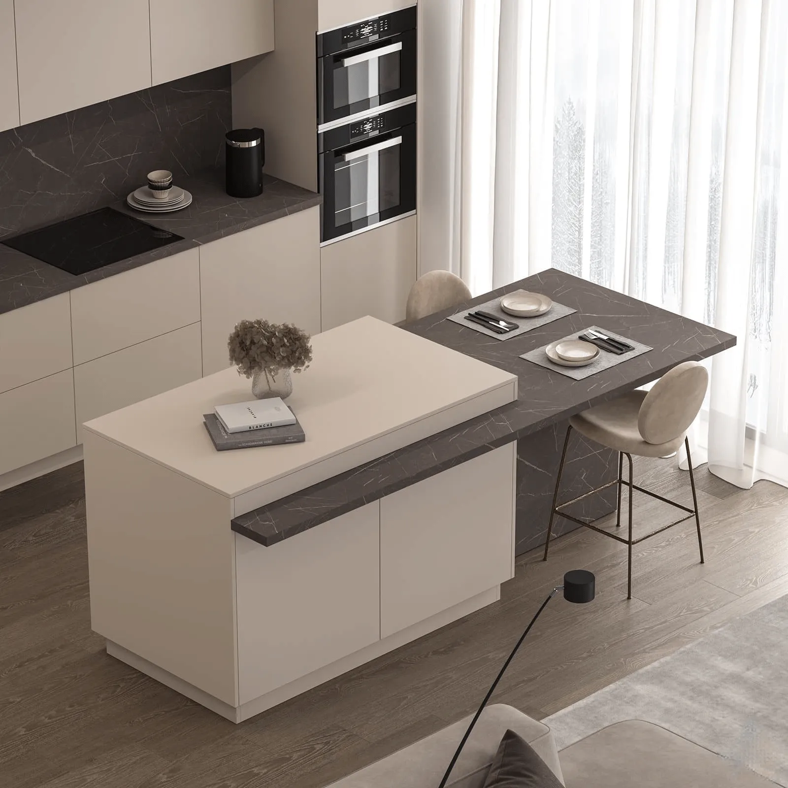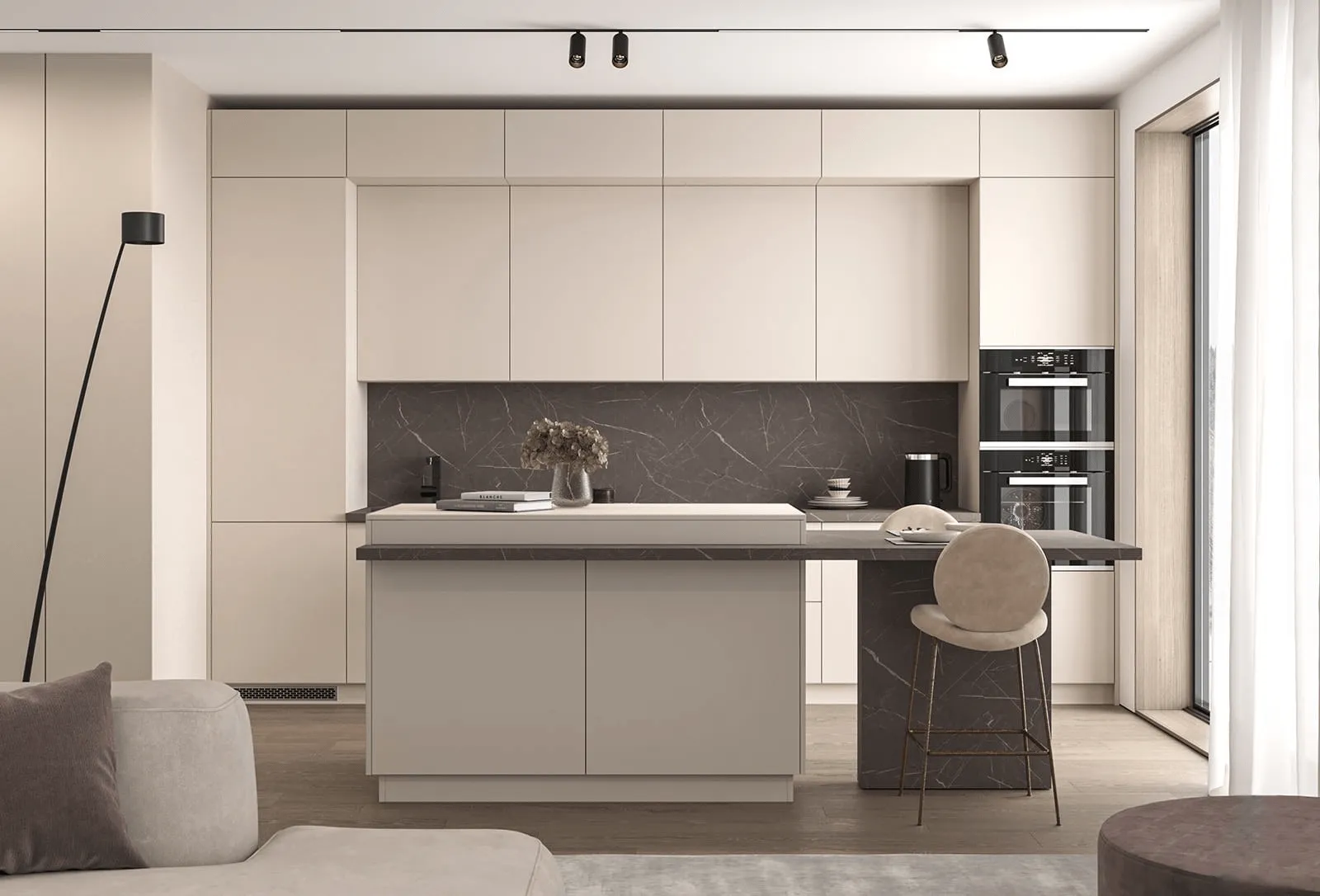Кухня АНТИКО выполненна с использованием фасадов из МДФ пластика HPL , является идеальным сочетанием кухни современного стиля и функциональности. Пластик HPL обладает рядом преимуществ, включая прочность, устойчивость к царапинам, влаге и пятнам, что делает его идеальным для кухонной зоны. Благодаря нейтральности цвета Аврорио, гарнитур легко сопрягается с другими цветовыми решениями, позволяя владельцам кухни выбирать акцентные детали и аксессуары на свое усмотрение.