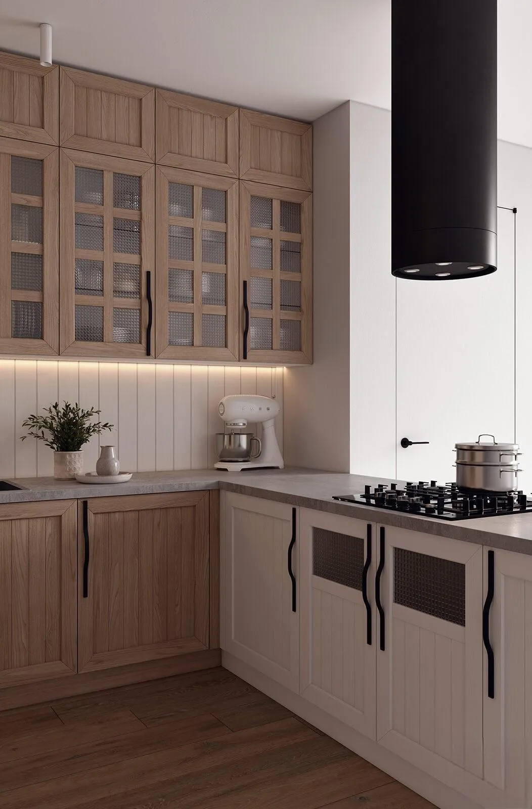Декоративные фасады: Фасад Комби-В2 (стекло Тисненое-1 / шпонированная МДФ)