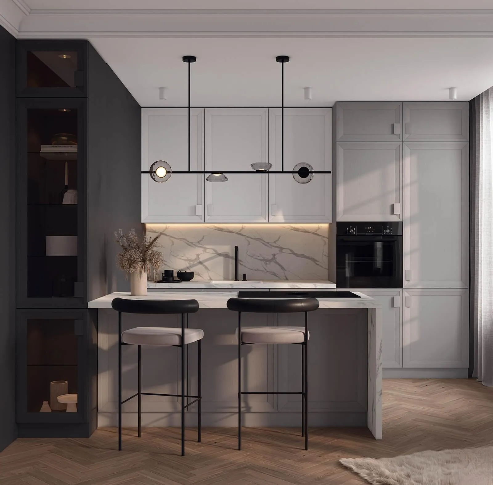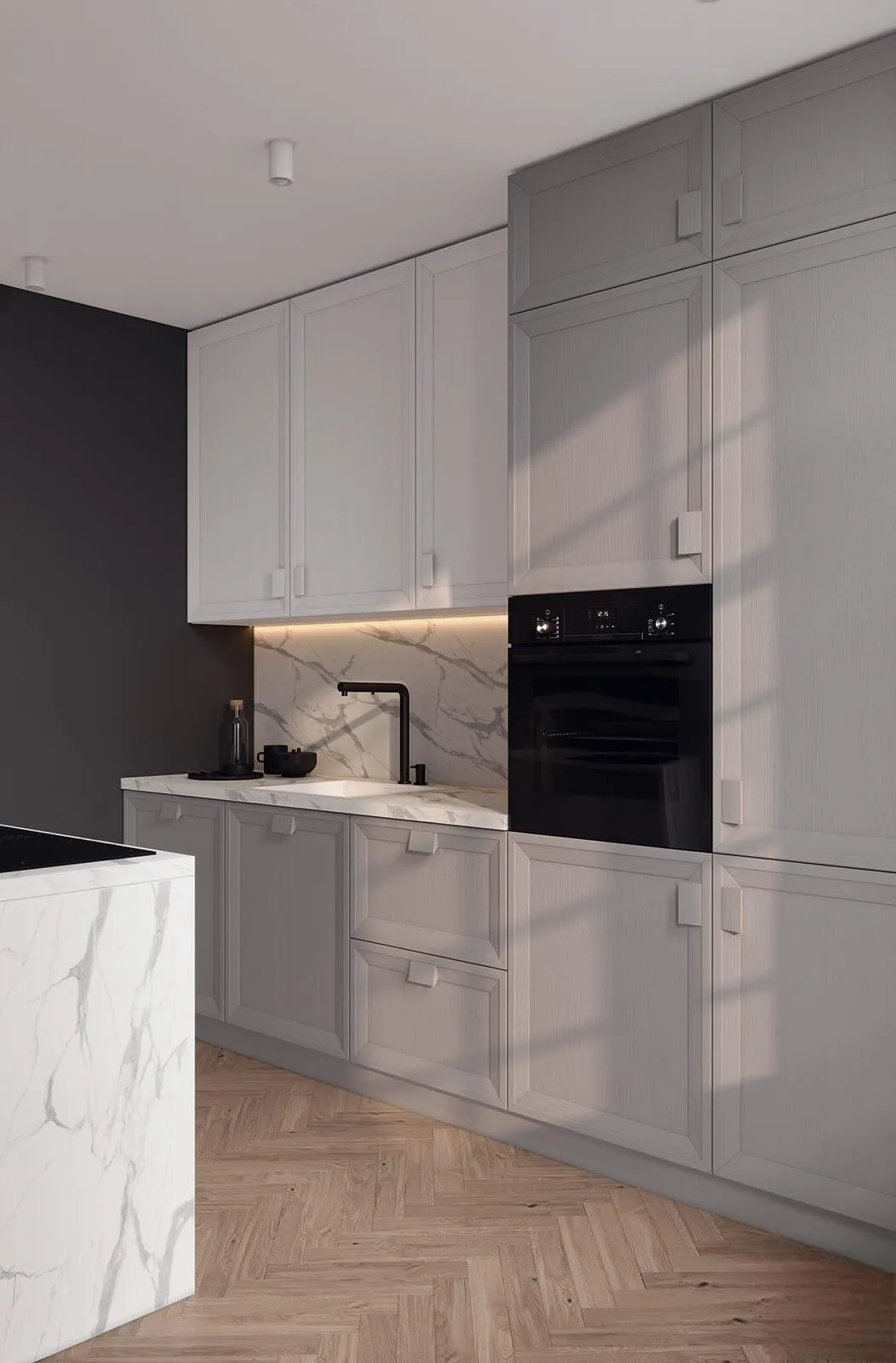 Фасады: Т546 Натуральный ясень, цвет NCS S 0500-N / 120 / 125