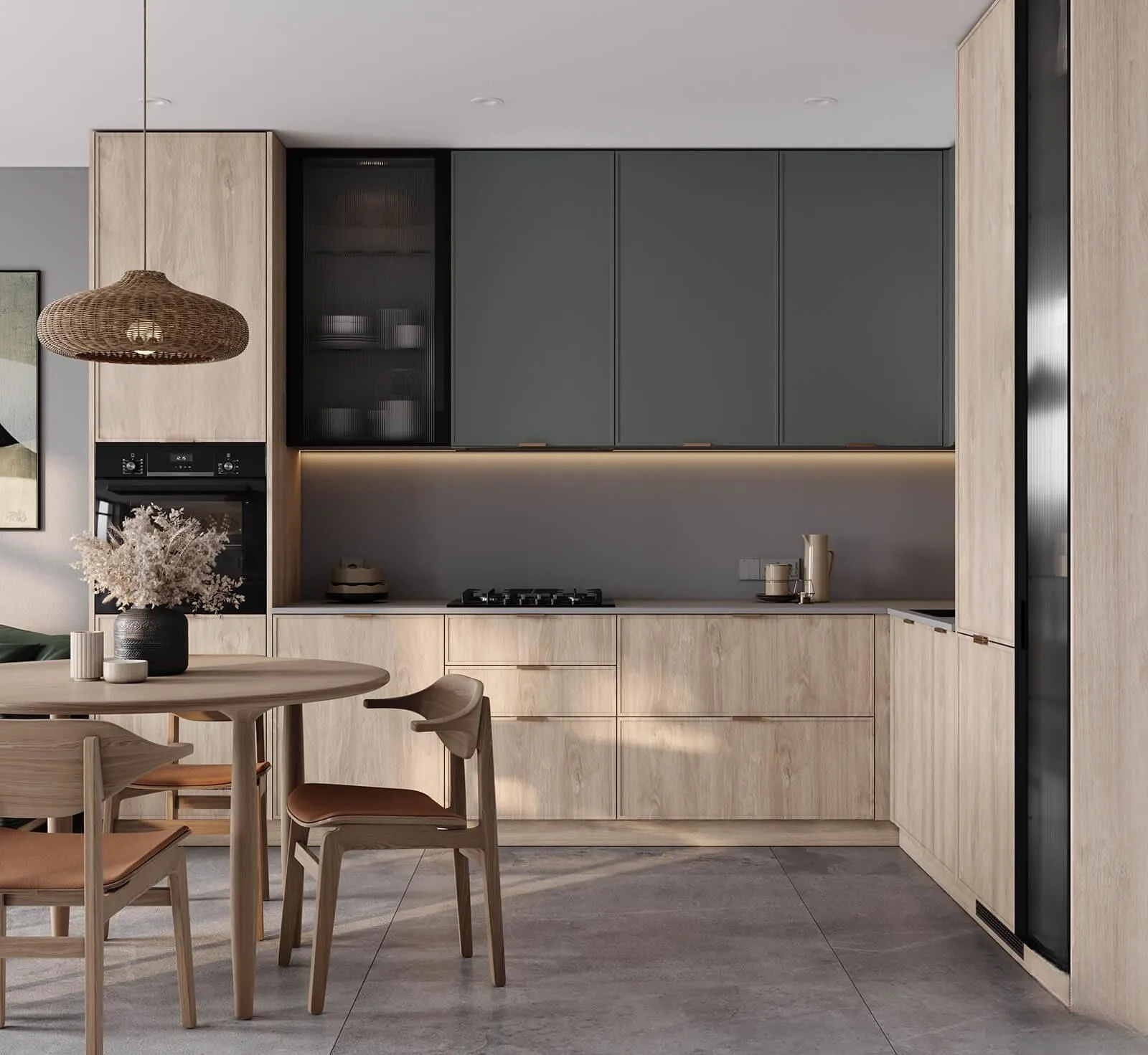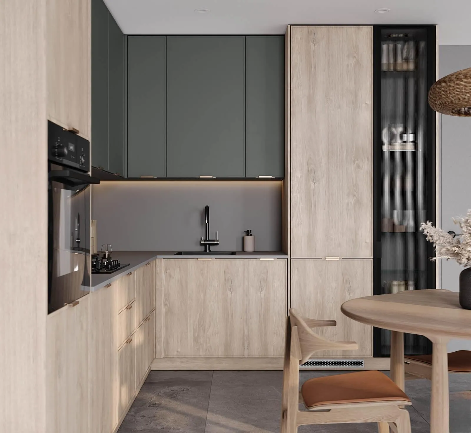 Фасады: Хаген (МДФ / ПВХ), цвет Дуб Винтаж / Хайленд Грин