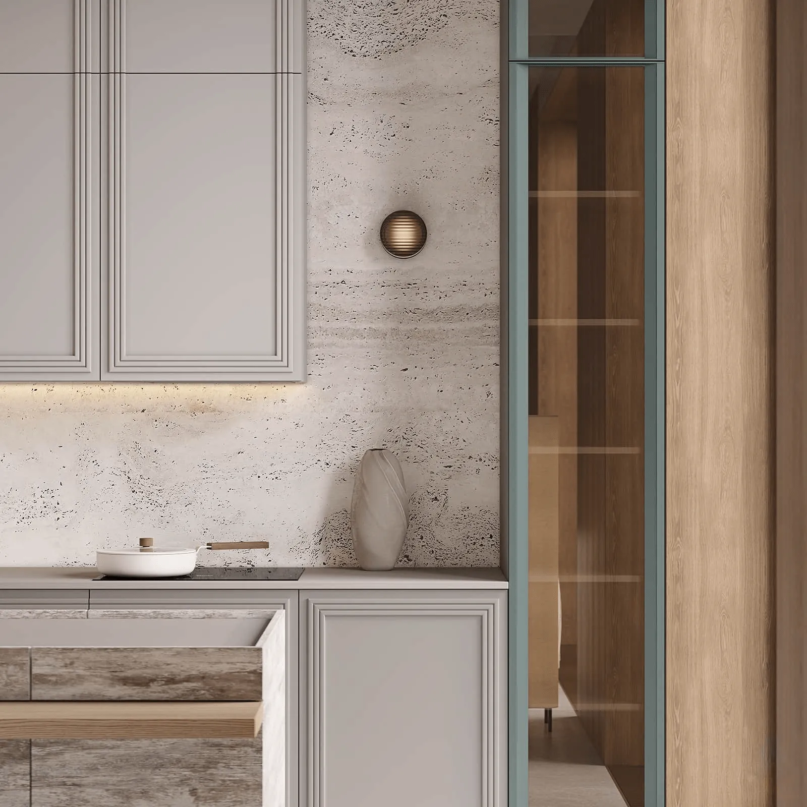 Одним из самых популярных и удачных фасадов для кухни являются фасады ЛДСП Синкрон из коллекции ЛАМБЕРТИ . Этот материал отличается прочностью, долговечностью и доступной стоимостью. К тому же, его поверхность имитирует натуральные материалы, что создает необычный и стильный вид кухонных фасадов. Покрытие синкрон полностью повторяет текстуру натурального материала, будь то мрамор или гранит. Этот эффект делает кухню более интересной и привлекательной, а также становится отличной деталью для любого стиля.