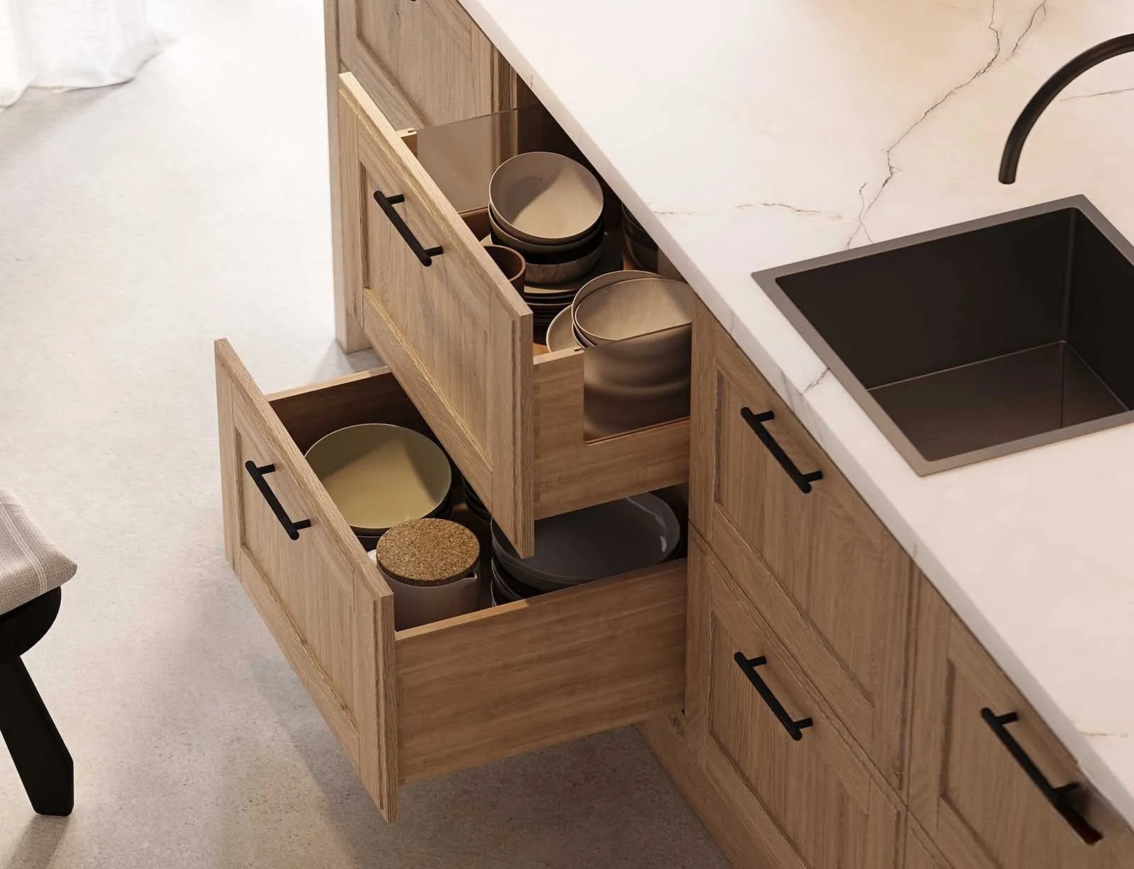 Выдвижные ящики: Натуральная ольха, цвет #183 (масловоск Бесцветный).