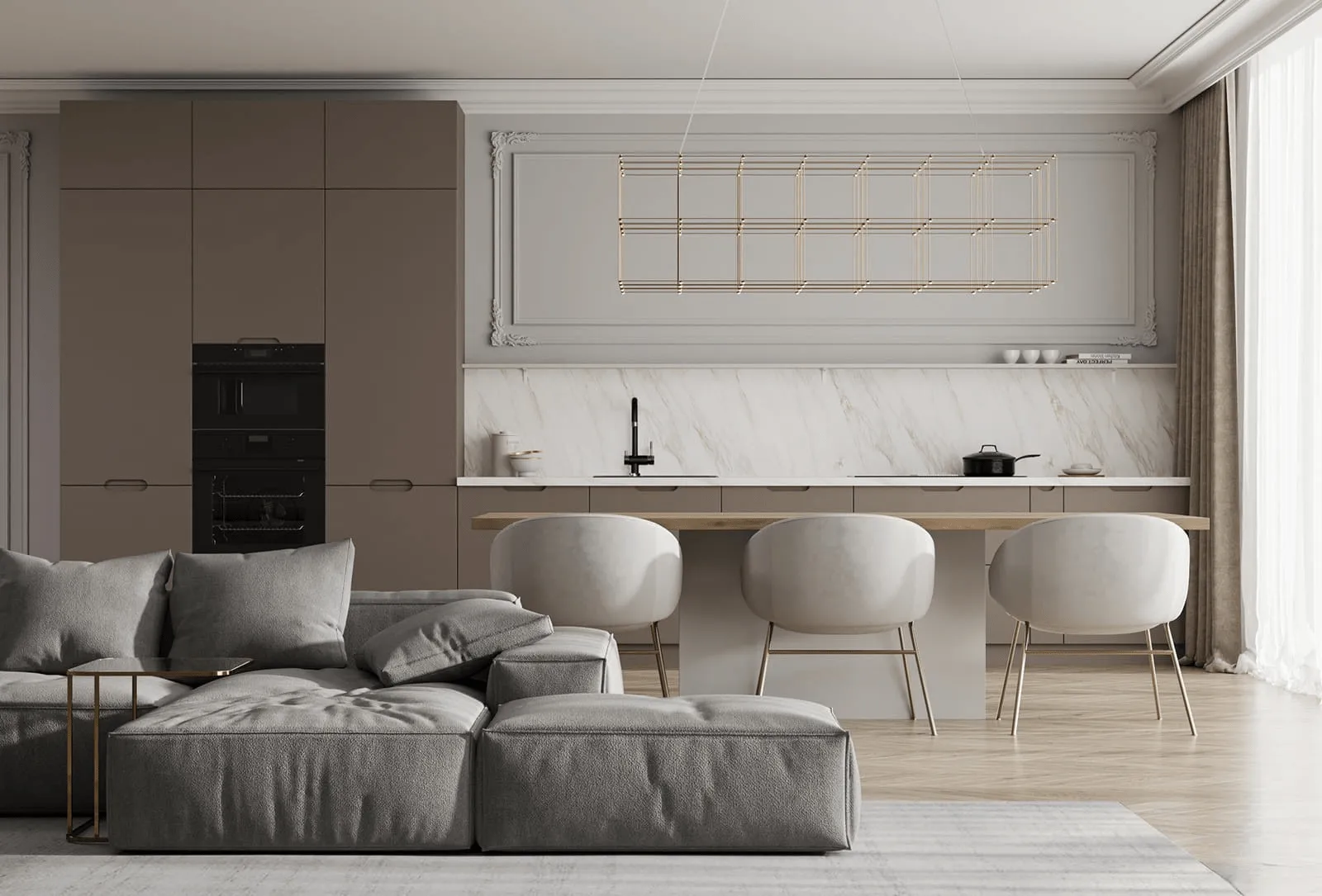 Фасады: Т622 Крашеная МДФ, цвет NCS S 6005-Y50R Матовый.