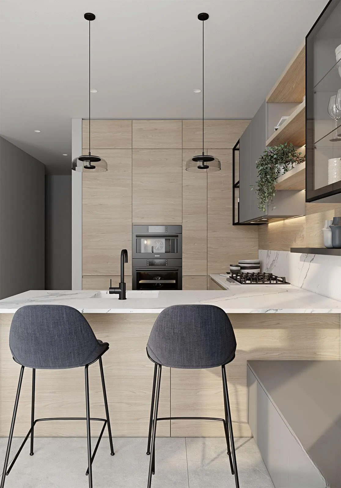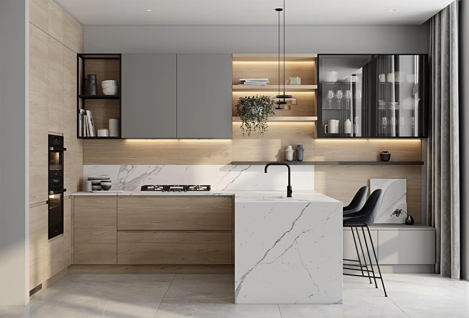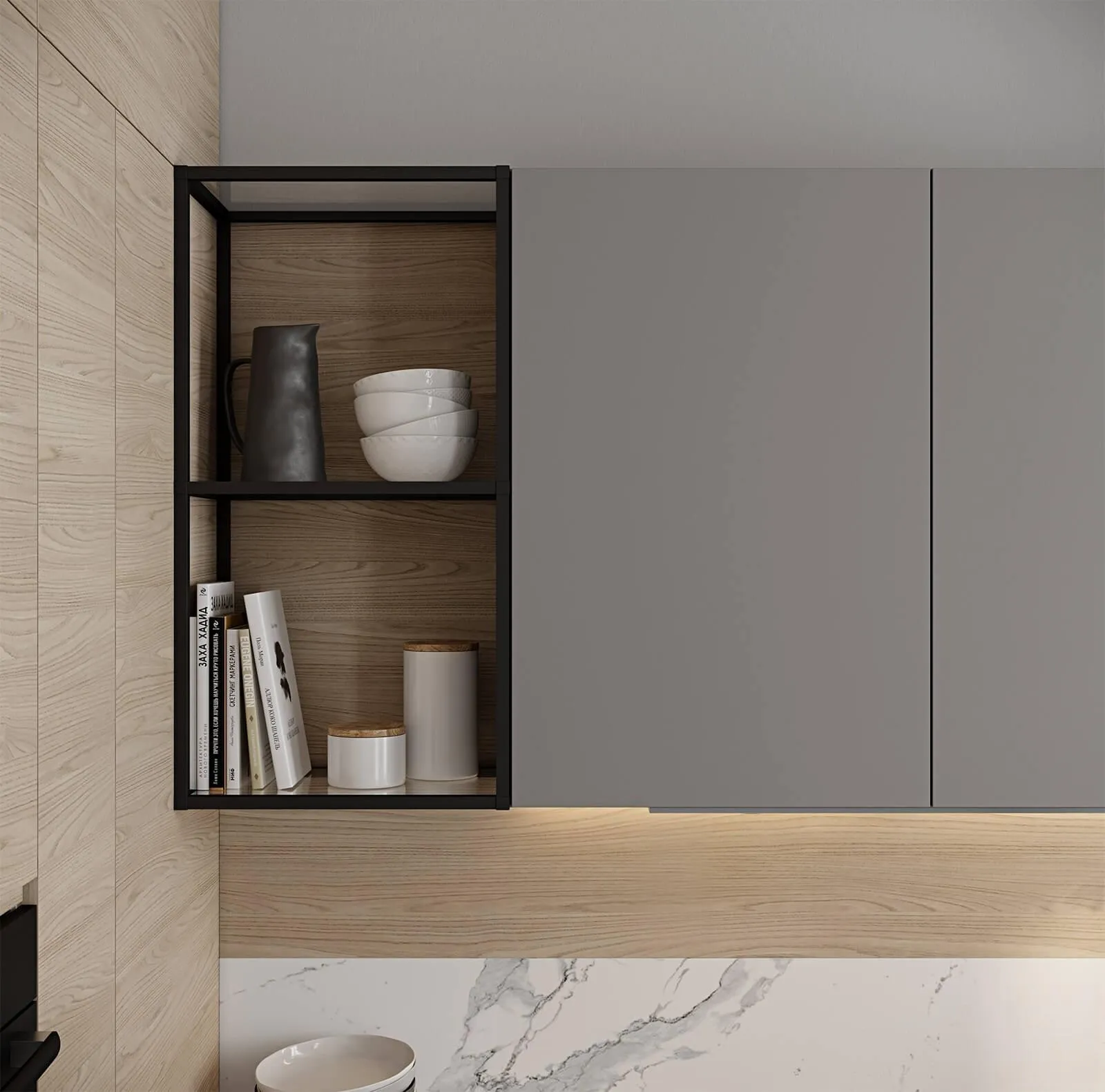 Фасады: ЛМДФ, цвет Дымчатый Супрамат / Т422 Шпон дуба, цвет #183 (парафиномасляная смесь Бесцветная)