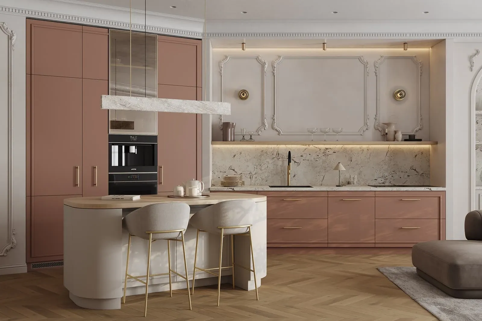 Фасады: Т652 Крашеная МДФ, цвет NCS S 4020-Y70R Матовый / NCS S 2002-Y Матовый