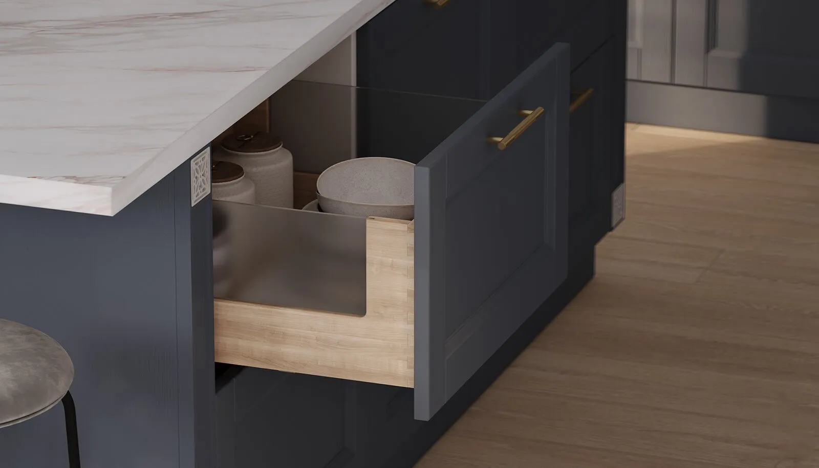 Выдвижные ящики: Натуральная ольха, цвет #183 (масловоск Бесцветный).