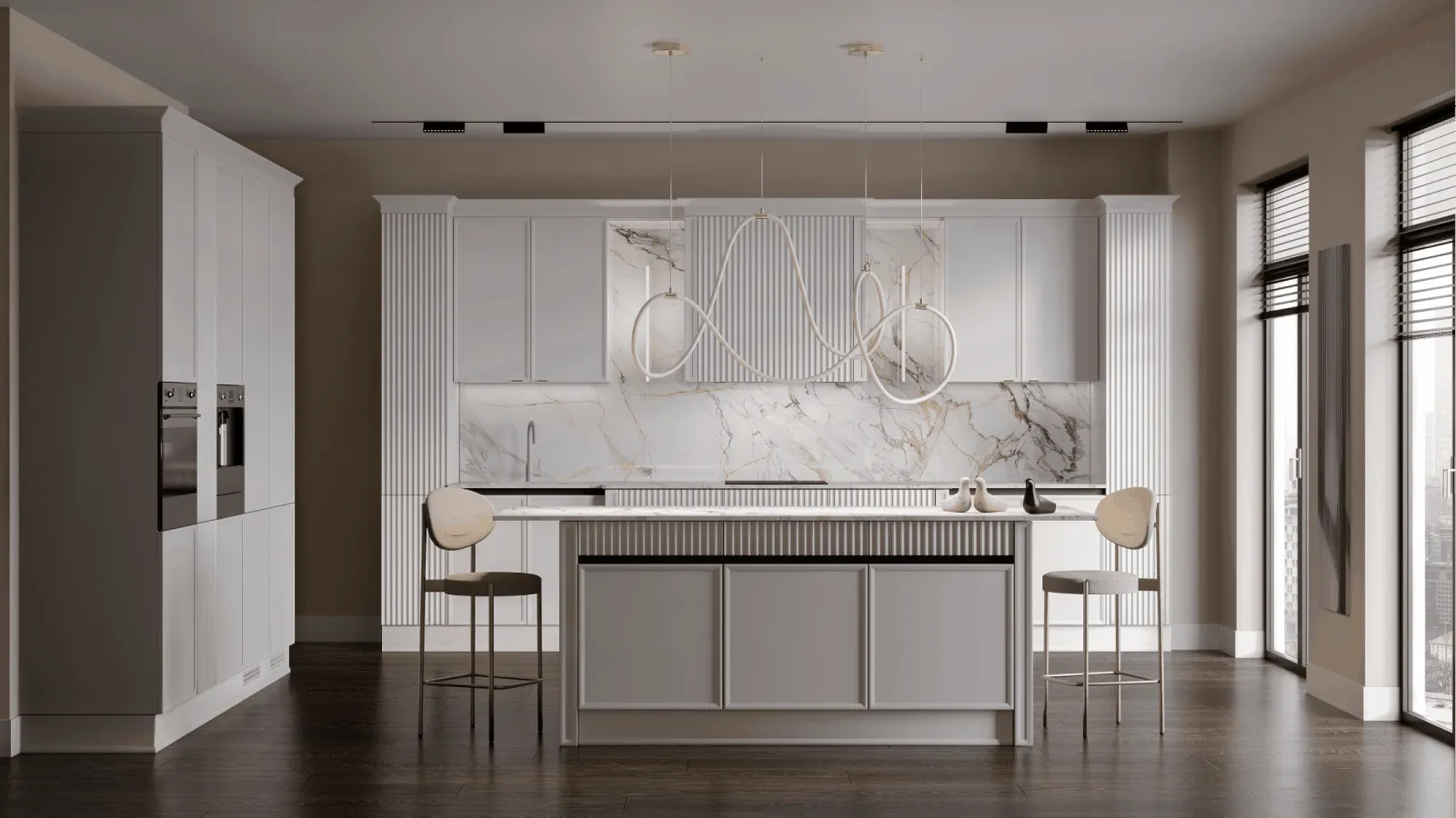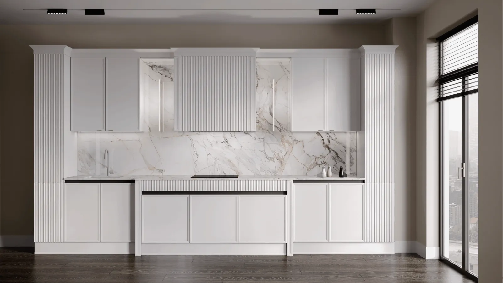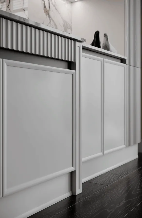 Фасады: МДФ эмаль Т641 RAL 9010 мат, Т644 RAL 9010 мат.