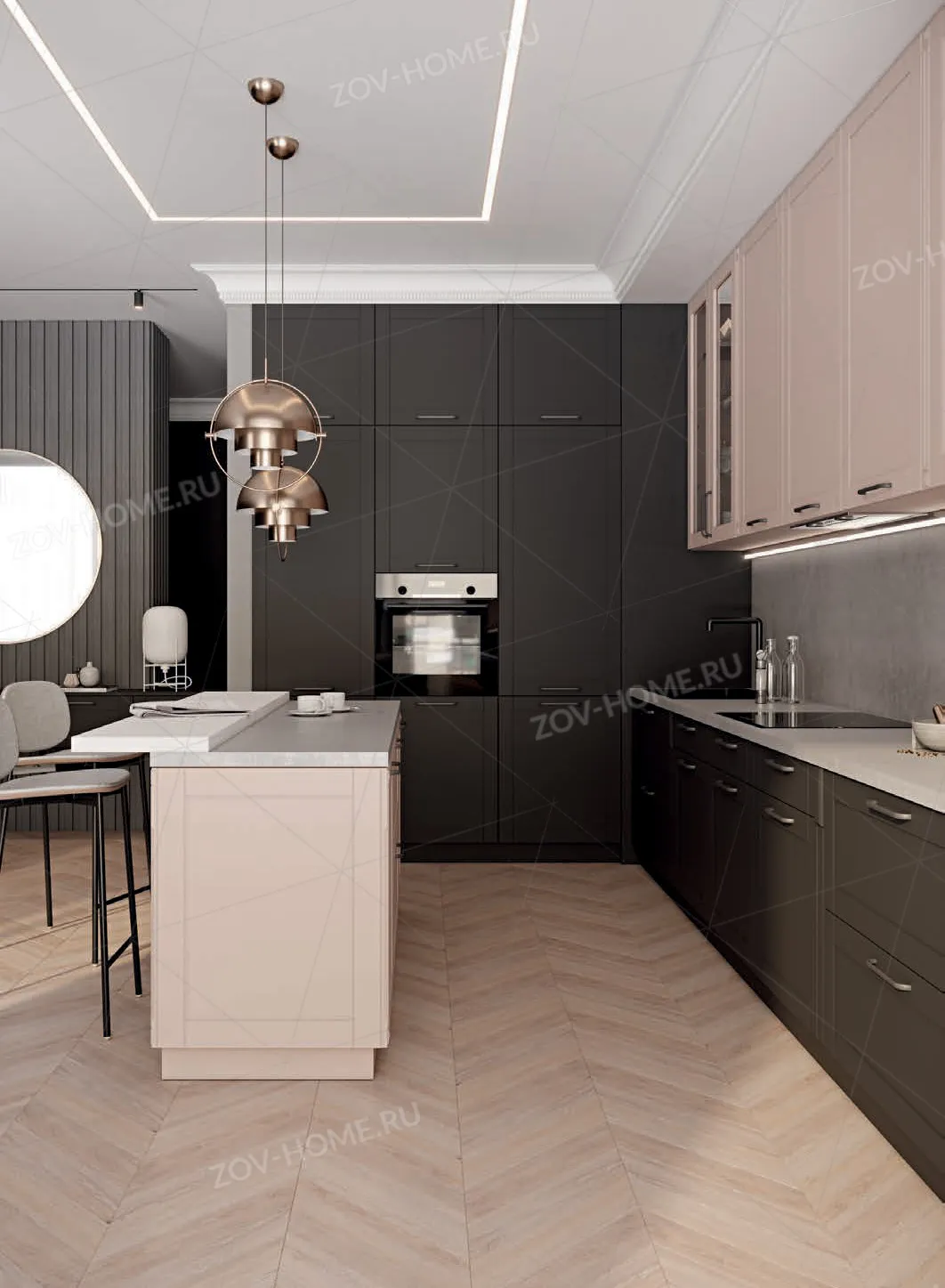 Цоколь: Крашеная МДФ, цвет NCS S 8000-N Матовый / NCS S 2010-R Матовый, высота 100 мм