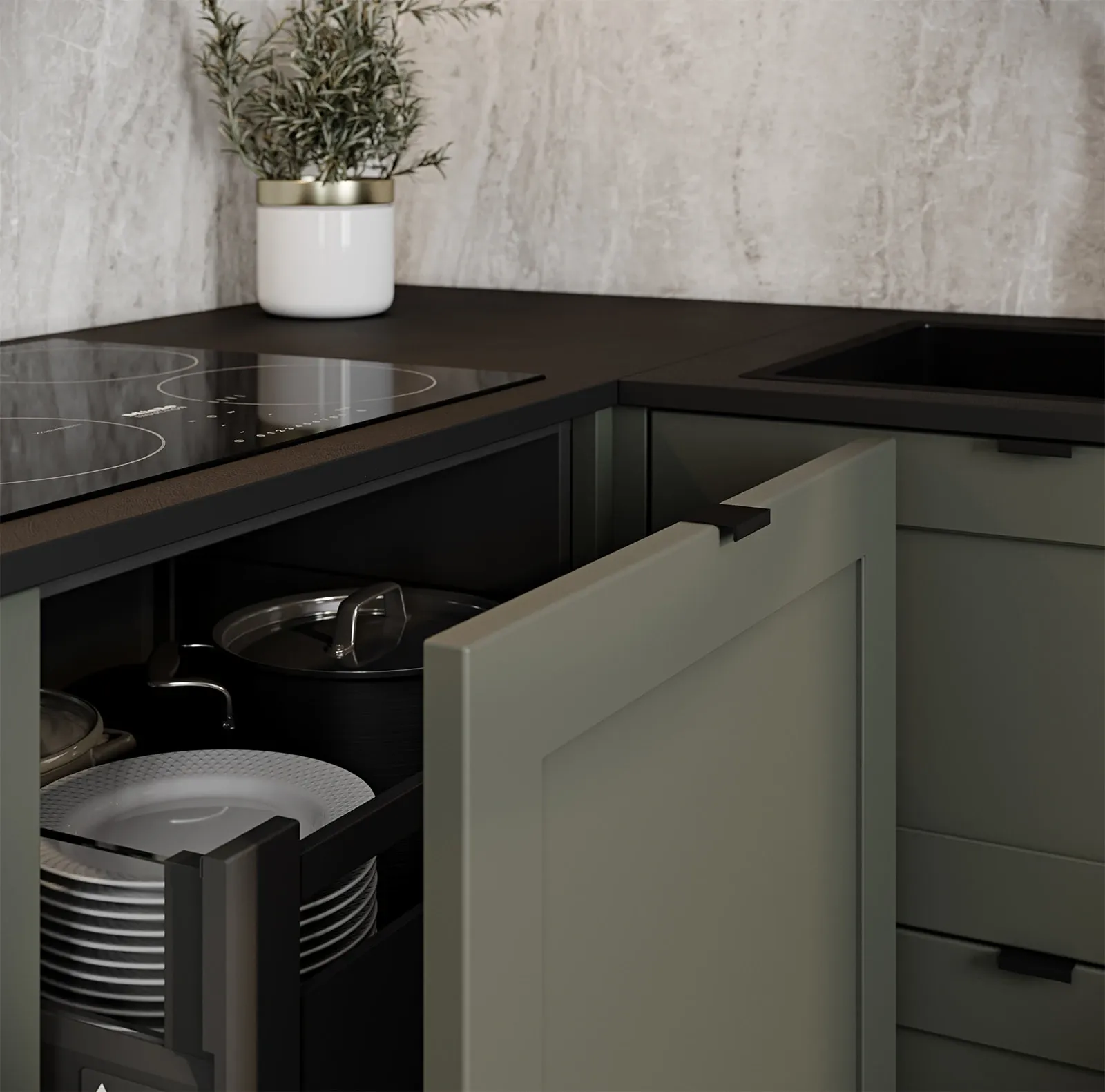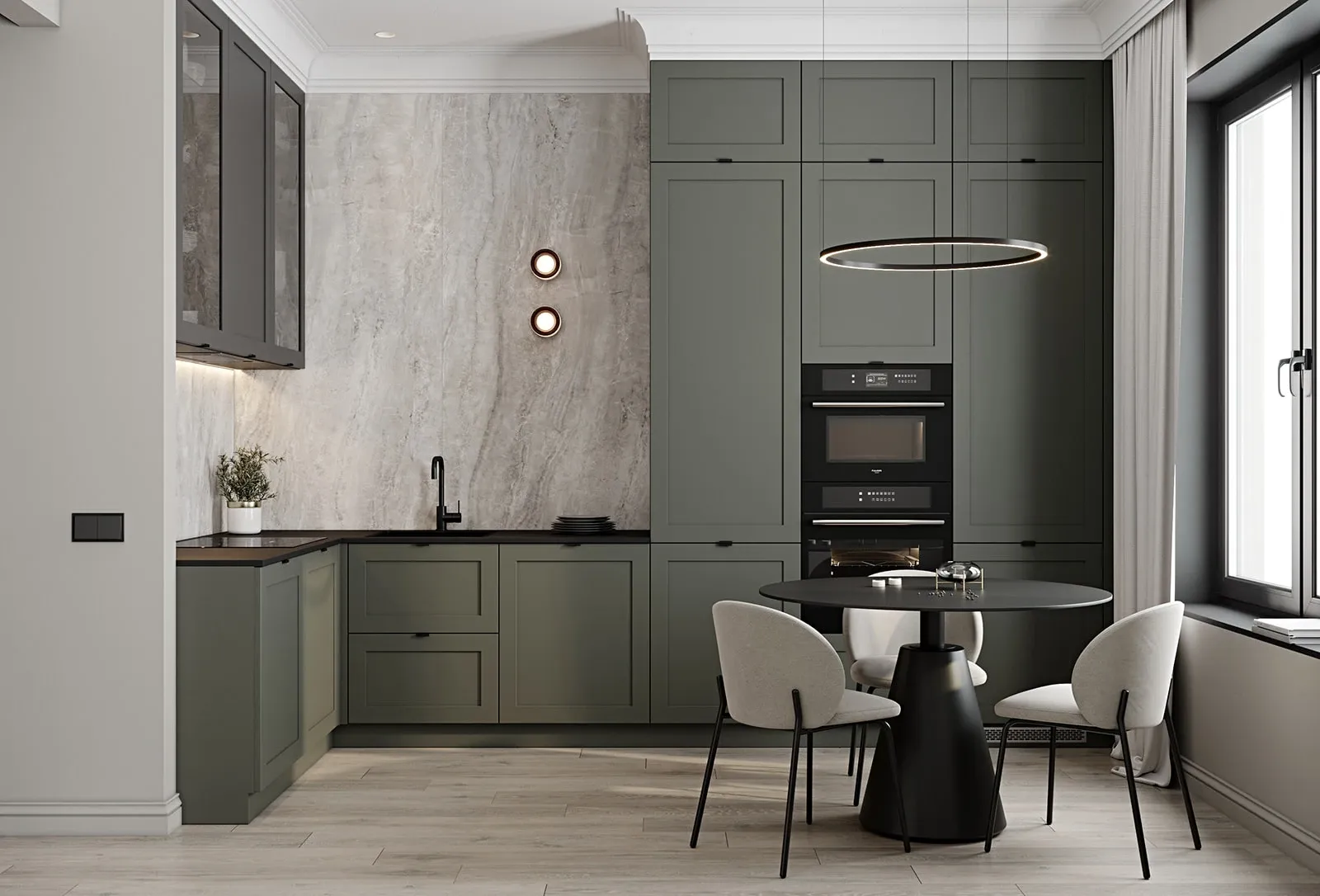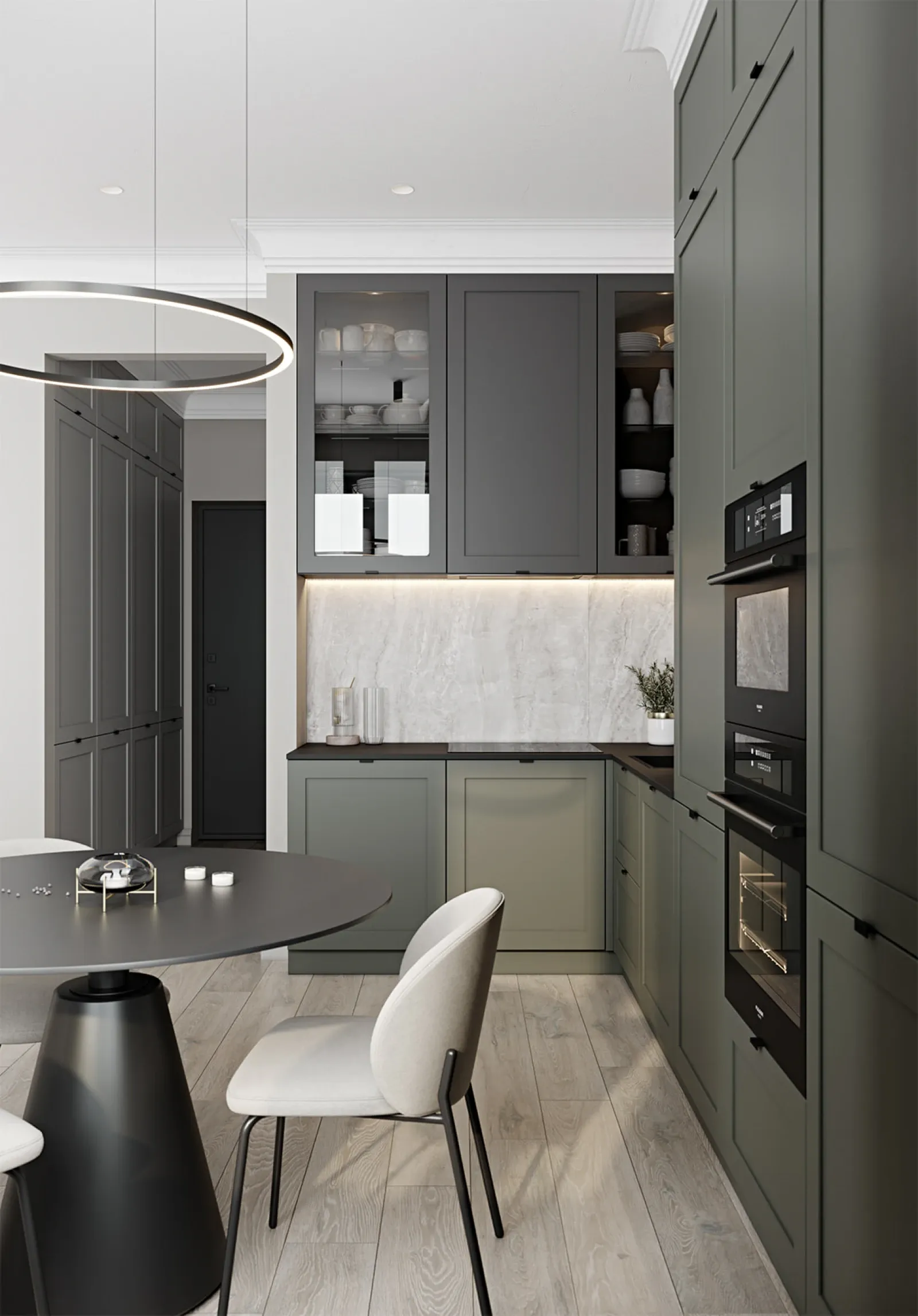 ФАСАДЫ Ливон (МДФ/ПВХ), цвет NCS S 5010-B90G Матовый / NCS S 6000-N Матовый СТОЛЕШНИЦА Пластик HPL, 20 мм