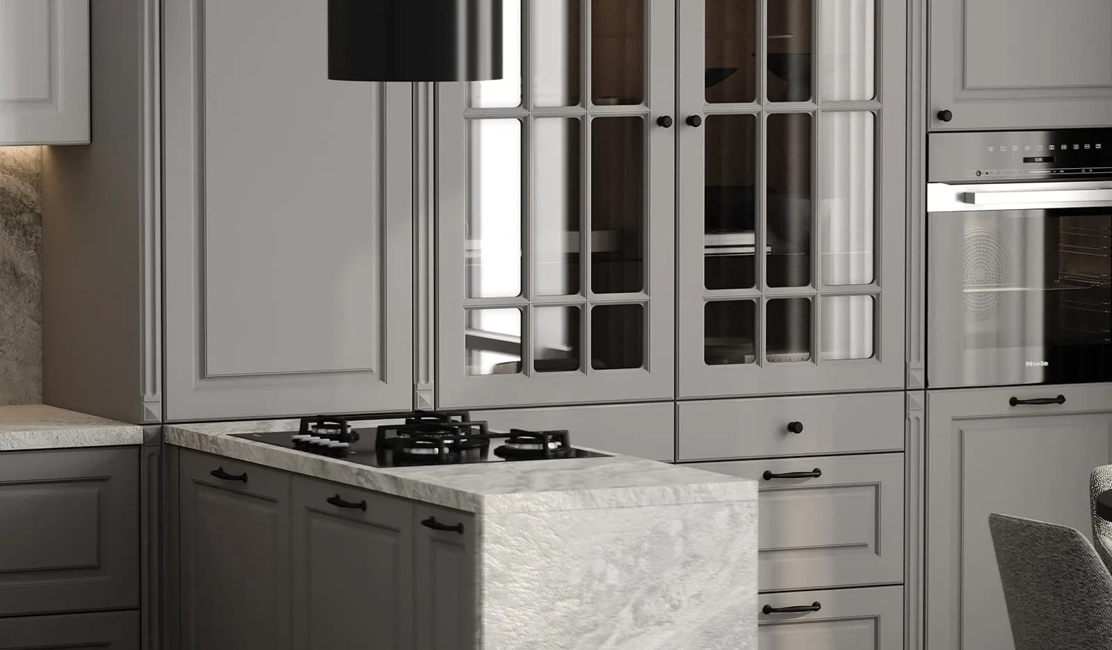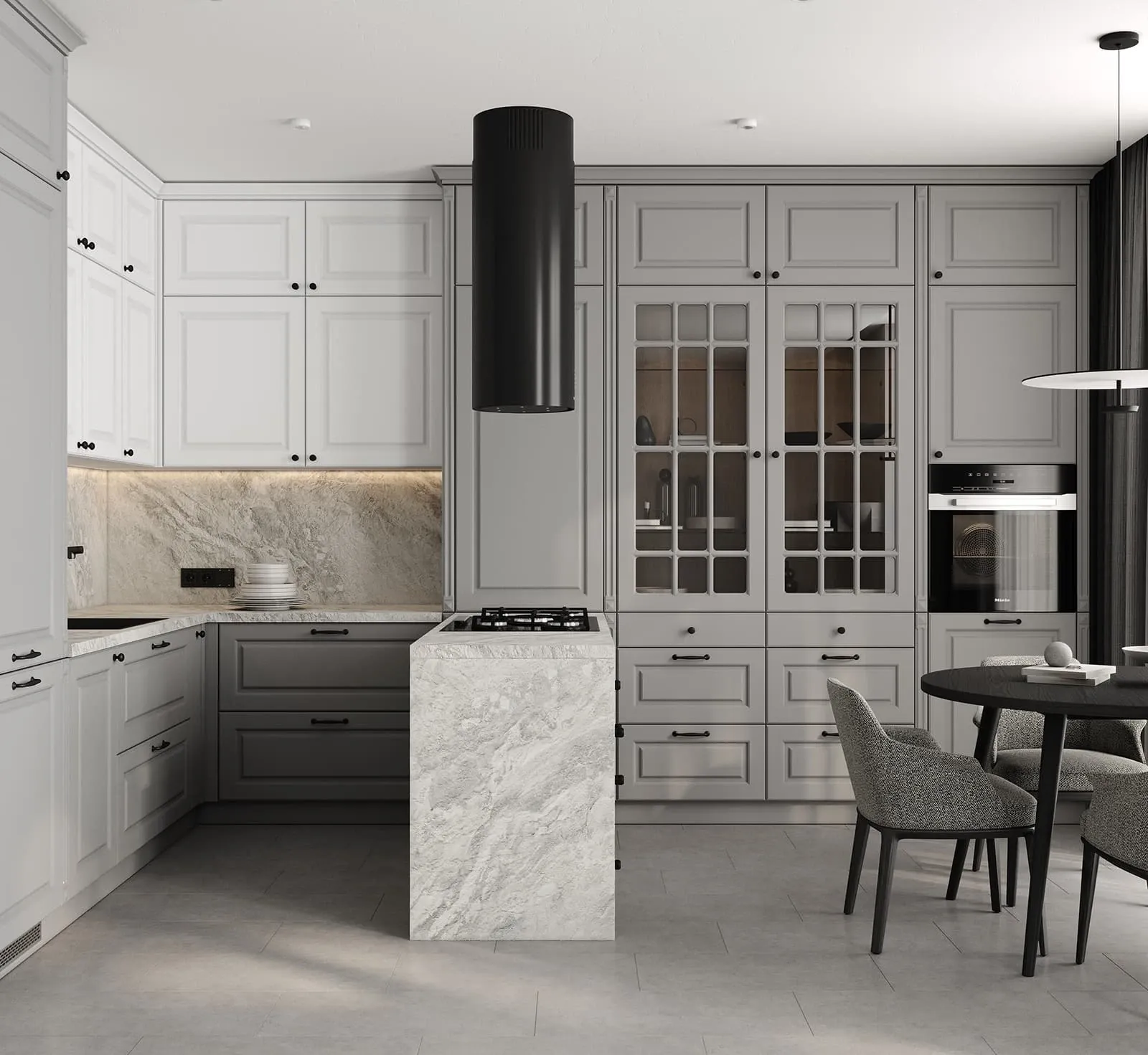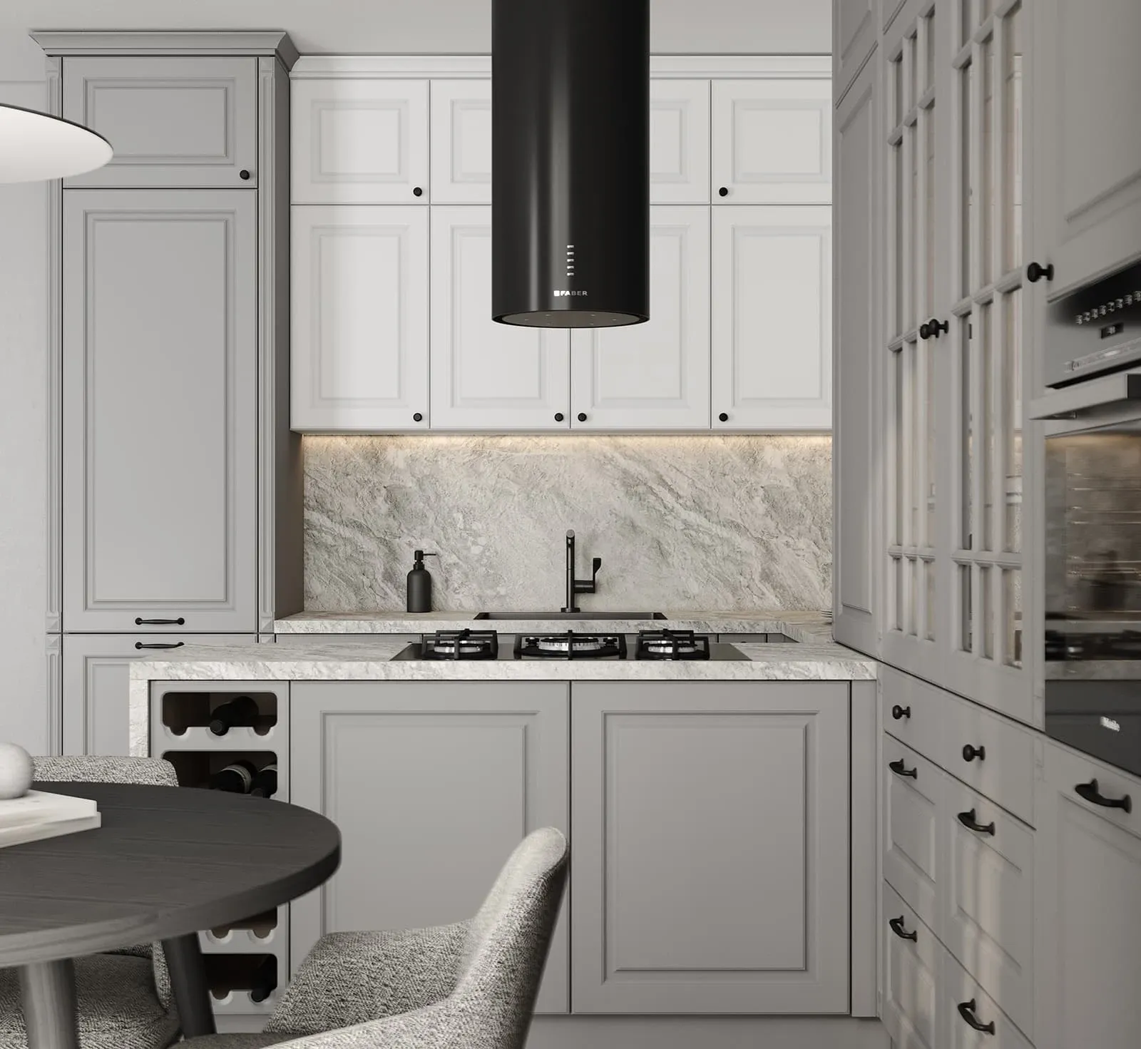 ФАСАДЫ Лонгфорд (МДФ/PET/ПВХ), цвет Белый PET / Серый СТОЛЕШНИЦА Пластик HPL, 38 мм