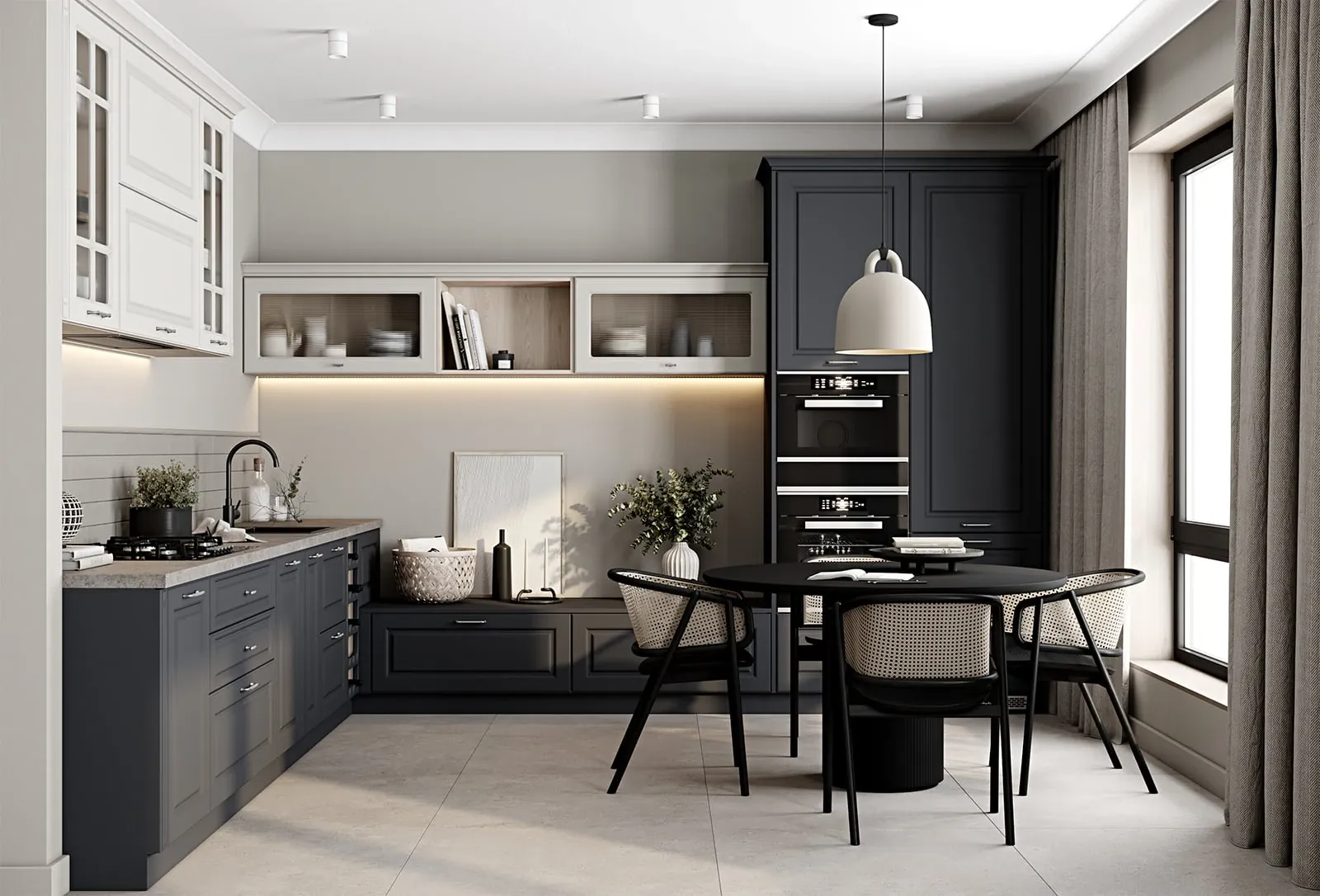 ФАСАДЫ Лонгфорд (МДФ/ПВХ), цвет Тауп Серый Ф / Ориа Блю Ф СТОЛЕШНИЦА Пластик HPL, 38 мм