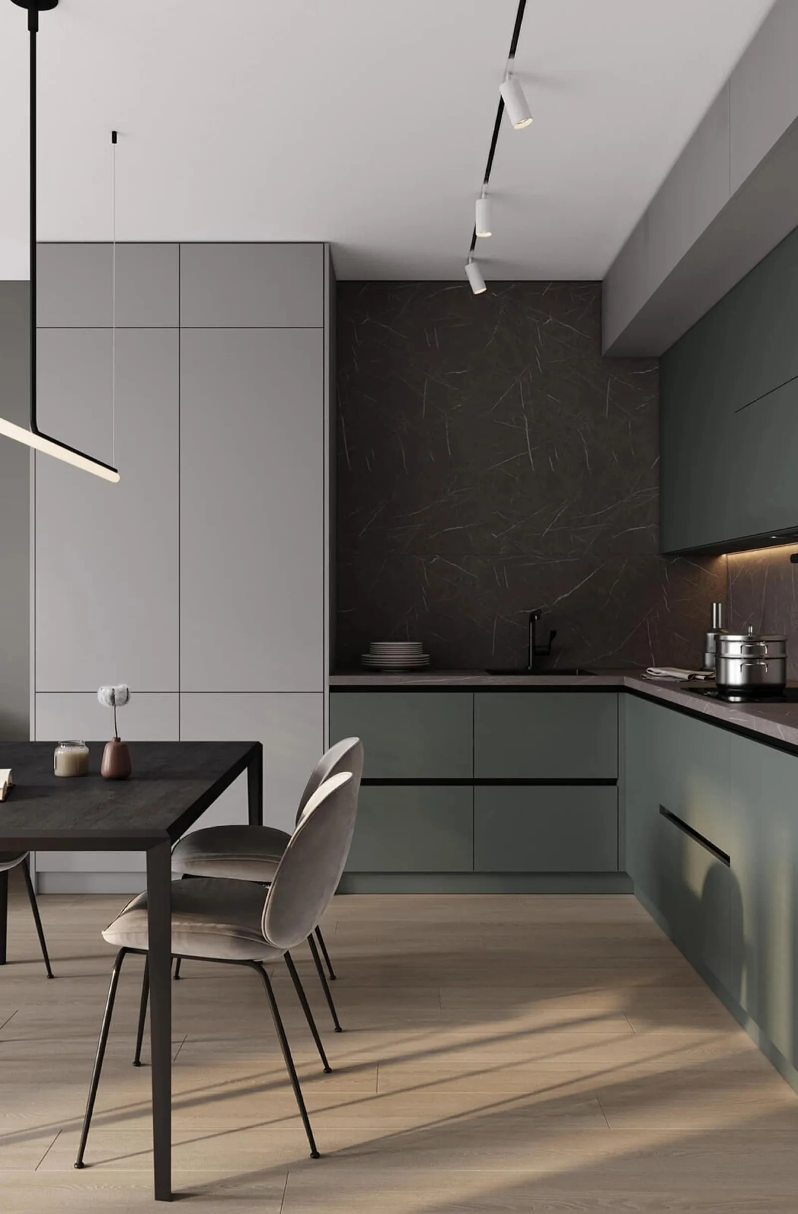 ФАСАДЫ ЛМДФ SUPRAMAT, цвет Форест Супрамат / Пепельный Супрамат СТОЛЕШНИЦА Пластик HPL, 38 мм