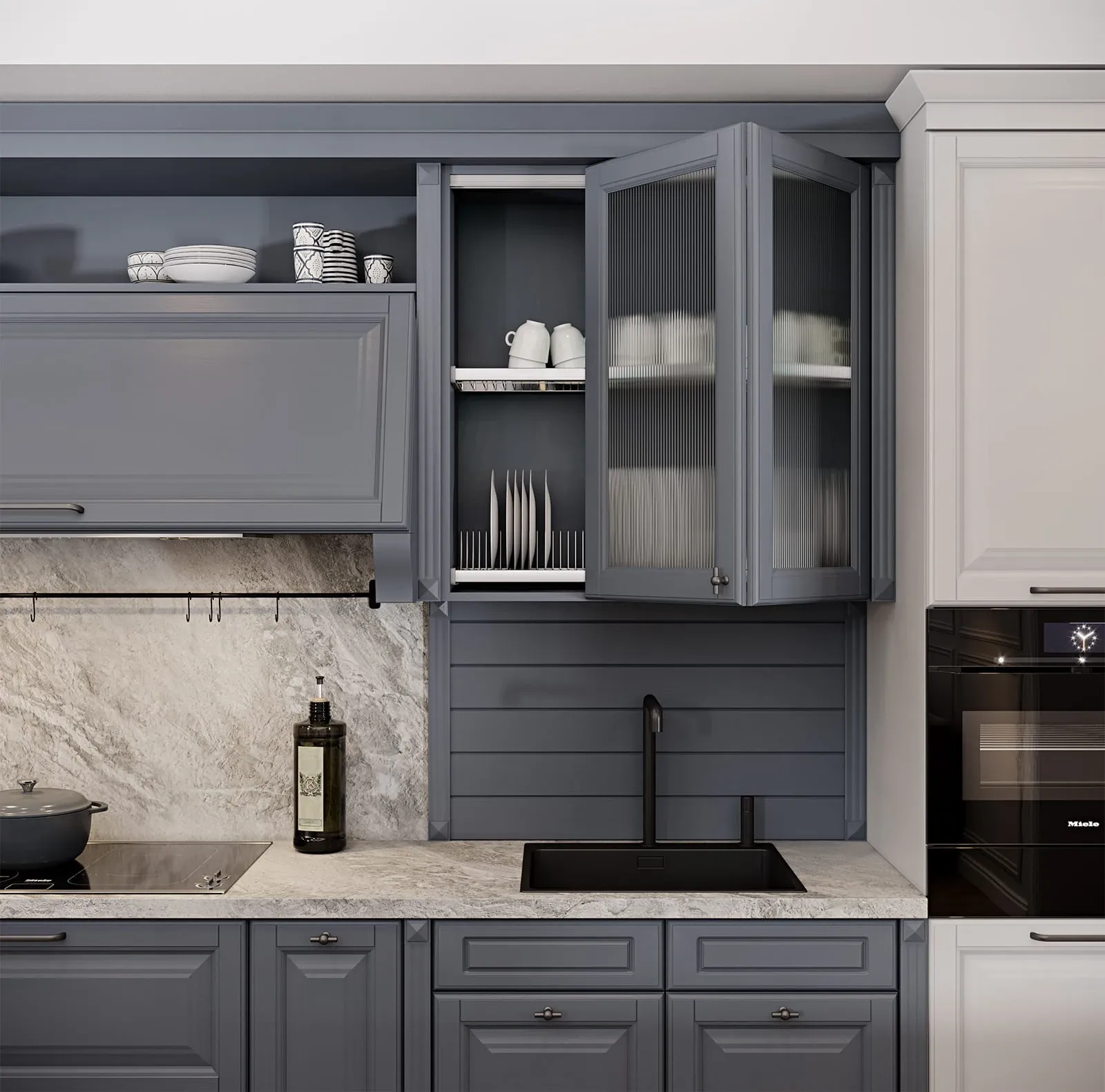 ФАСАДЫ Т308 Натуральная ольха, цвет NCS S 3020 - R80B (без патины) / NCS S 1002 - R50B (без патины) СТОЛЕШНИЦА Пластик HPL, 38 мм