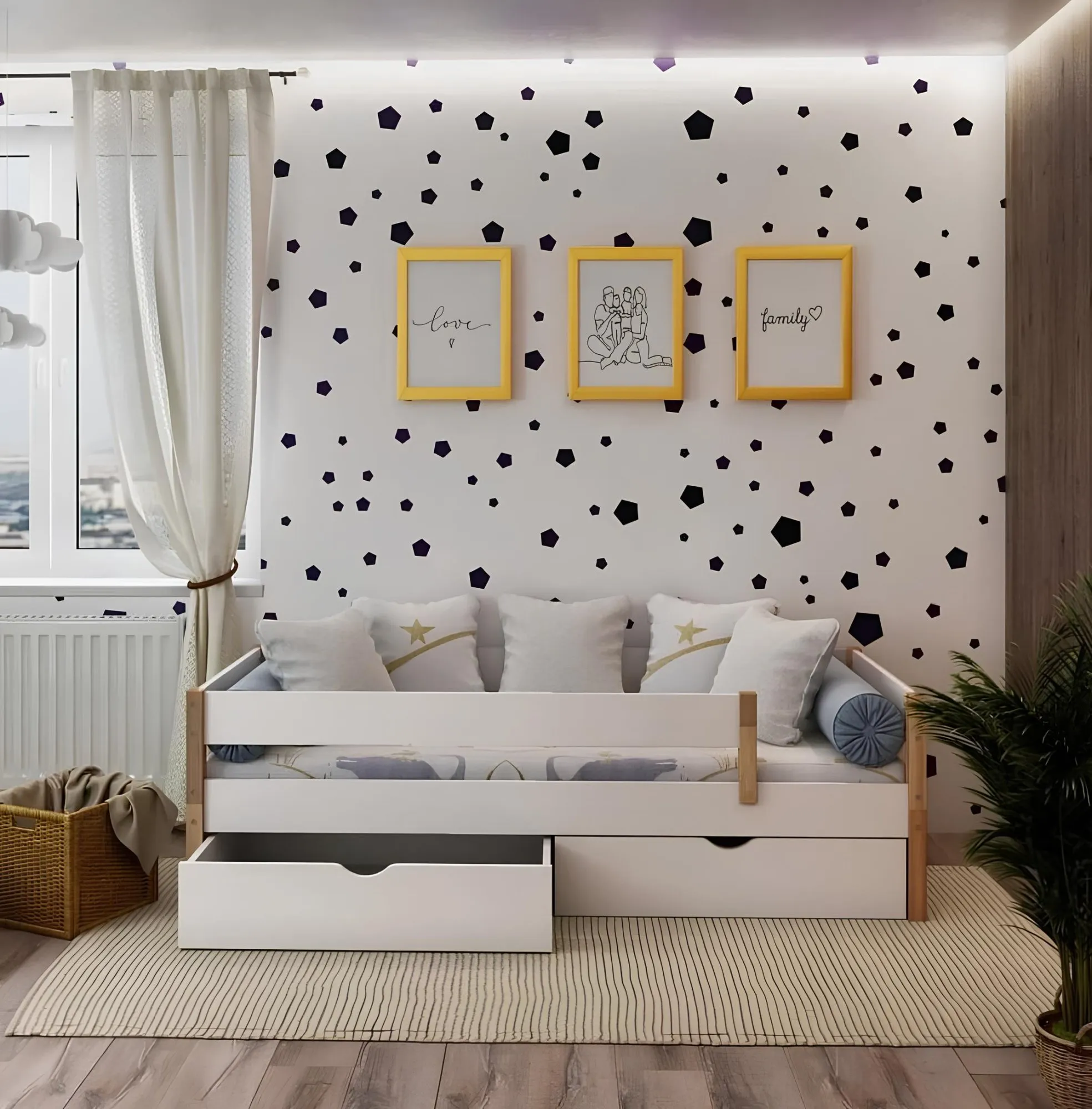 Стильная и компактная кровать Николь с ящиками станет прекрасным решением для детской комнаты в любом стиле. Вместительные ящики позволят хранить там постельное белье, подушки и иные вещи, что позволит сэкономить место в комнате, а также привести кровать в более аккуратный вид.
