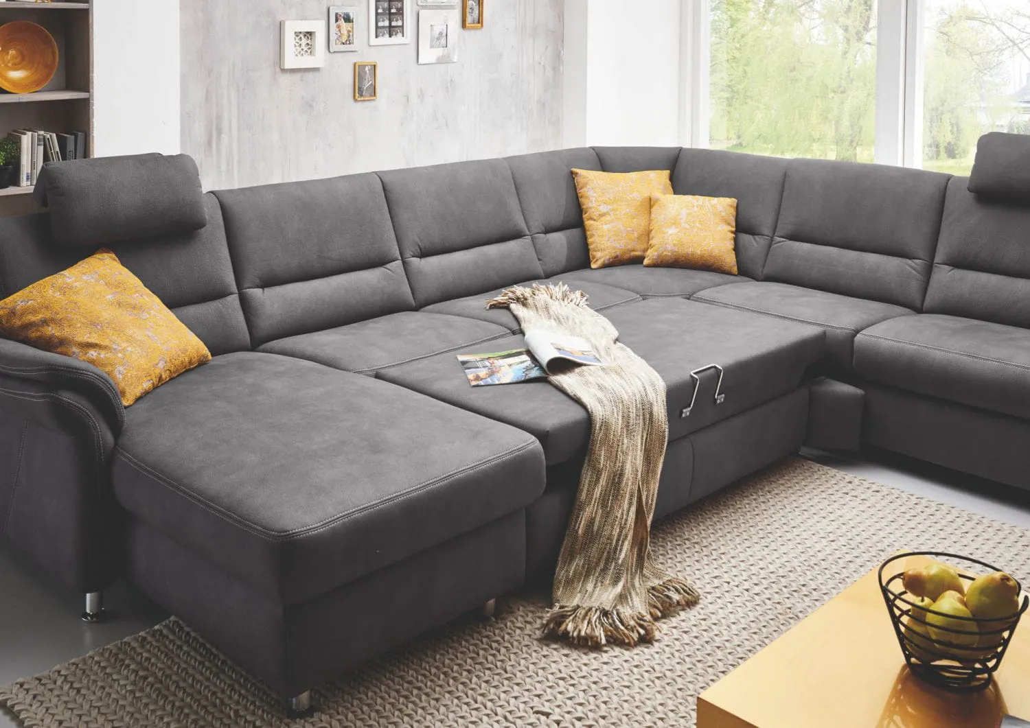 ✔ Прямая часть со спальным местом - диван быстро превращается в просторную кровать (используется механизм «Дельфин»).