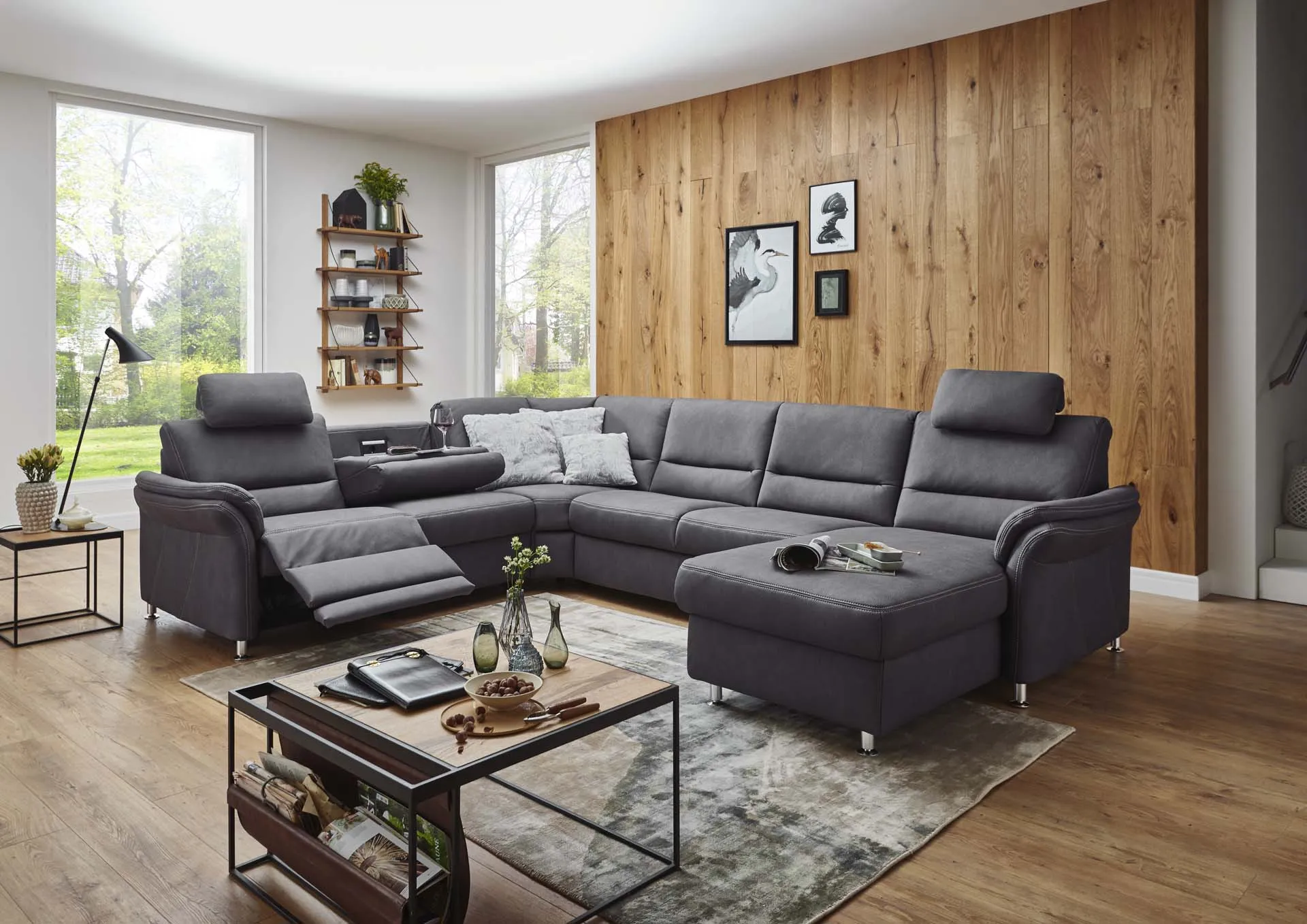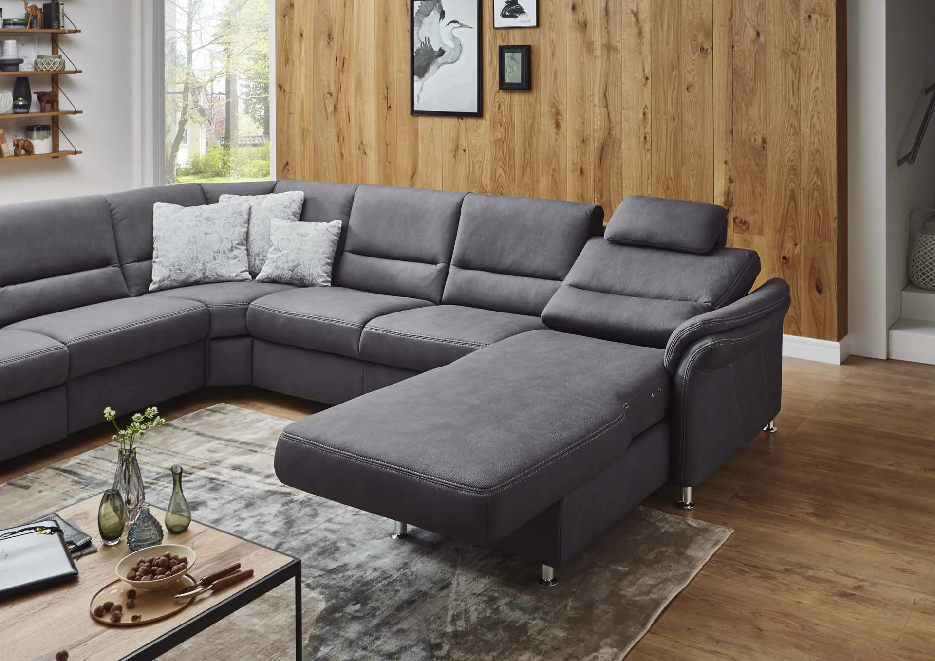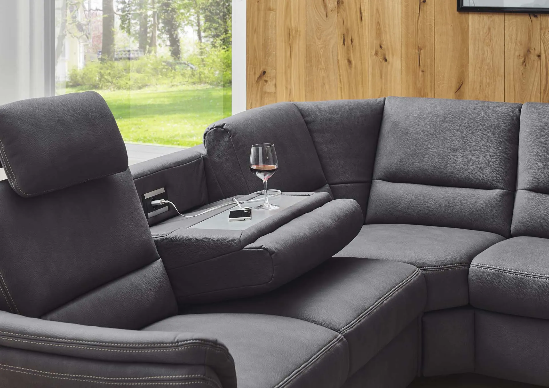 2 подголовник премиум + откидной столик + реклайнер + трапецевидный угол + спальное место + канапе с эл.приводом + 3 подушки