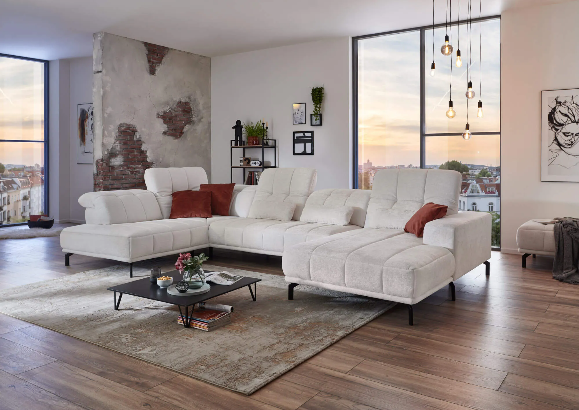 Прямой комбинированный модуль с подголовником и регулировкой глубины сиденья слева;