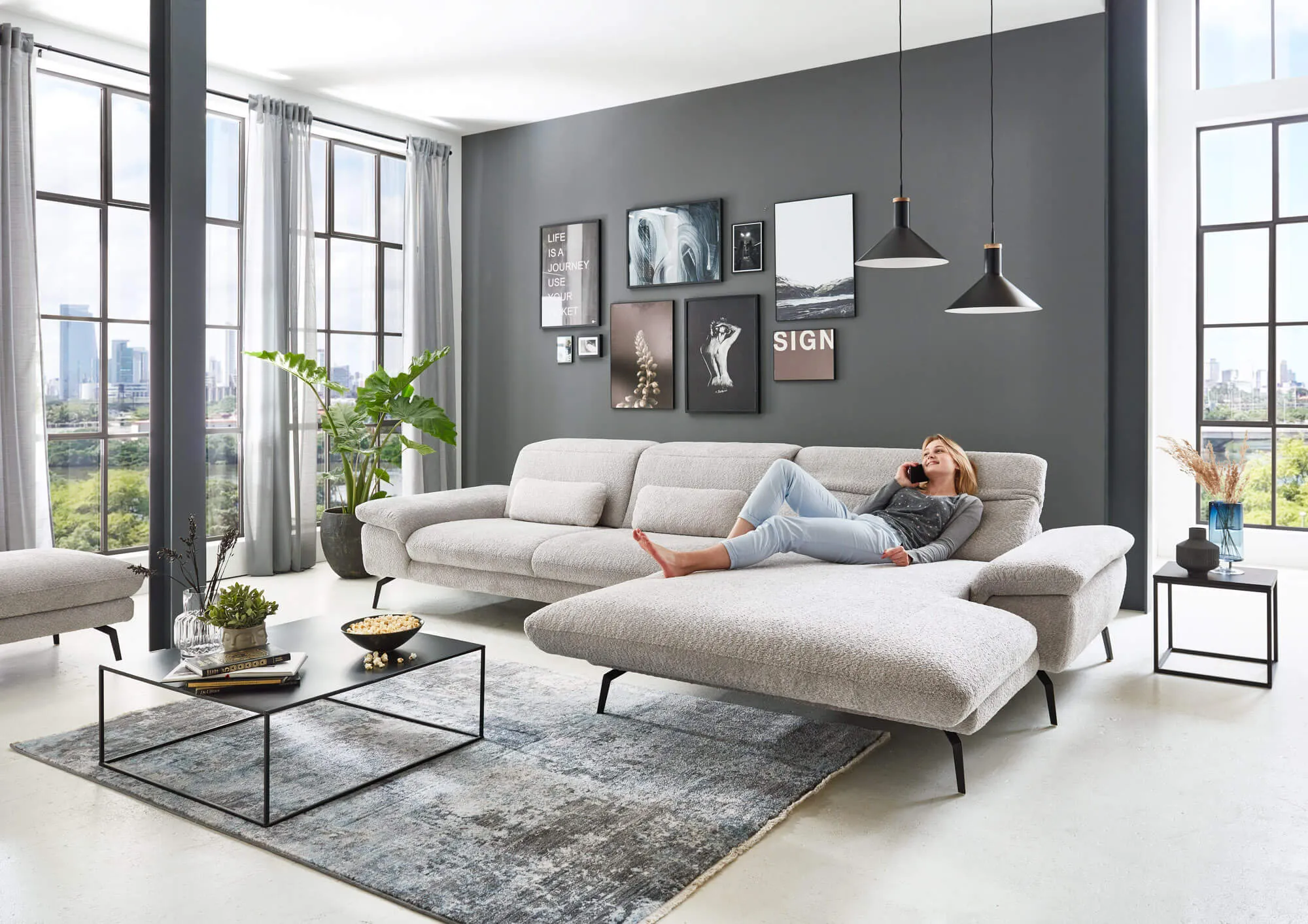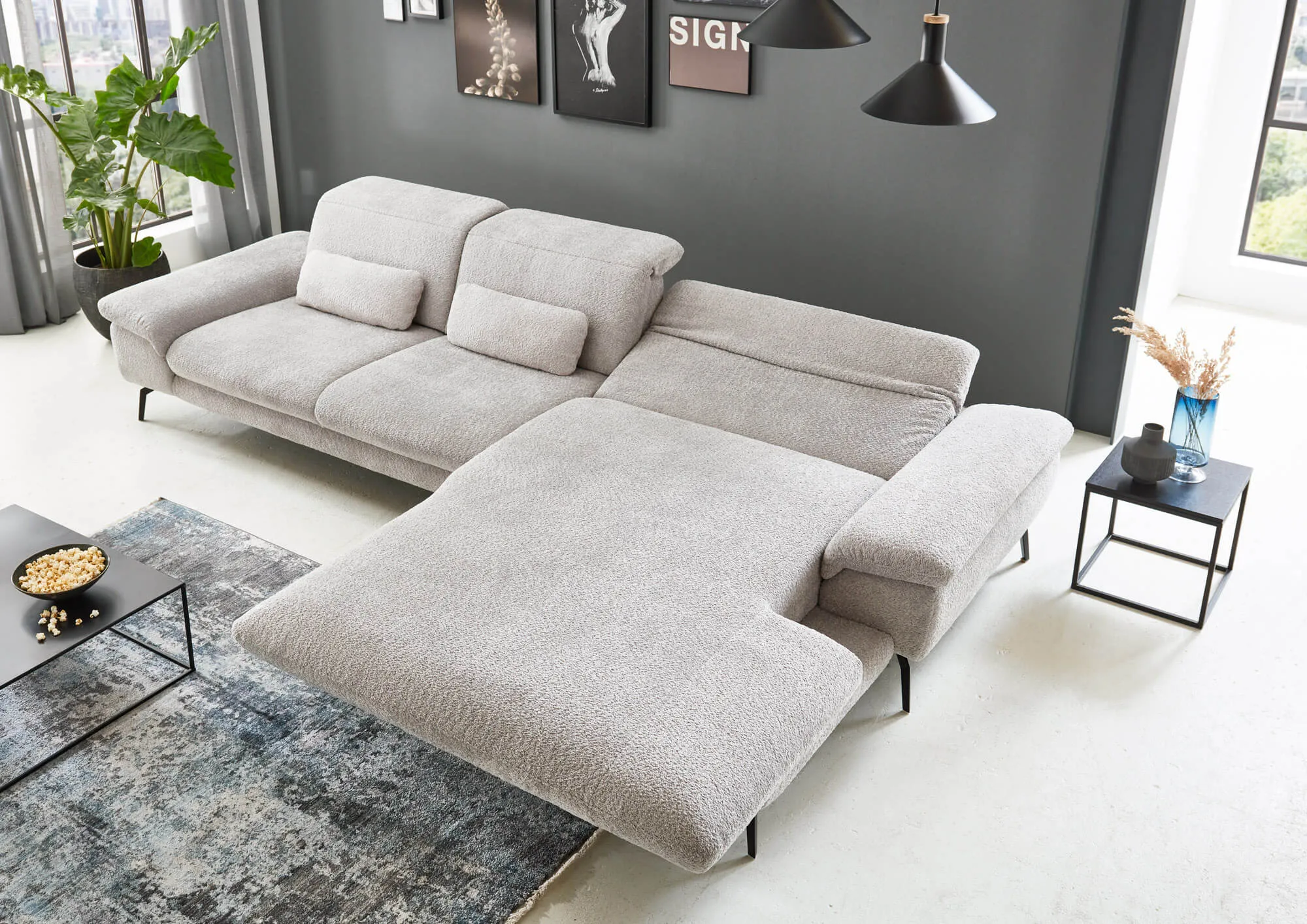 ✔ Канапе увеличенная с электродвигателем + регулировка подголовника (KV) + регулировка подлокотника (AV).