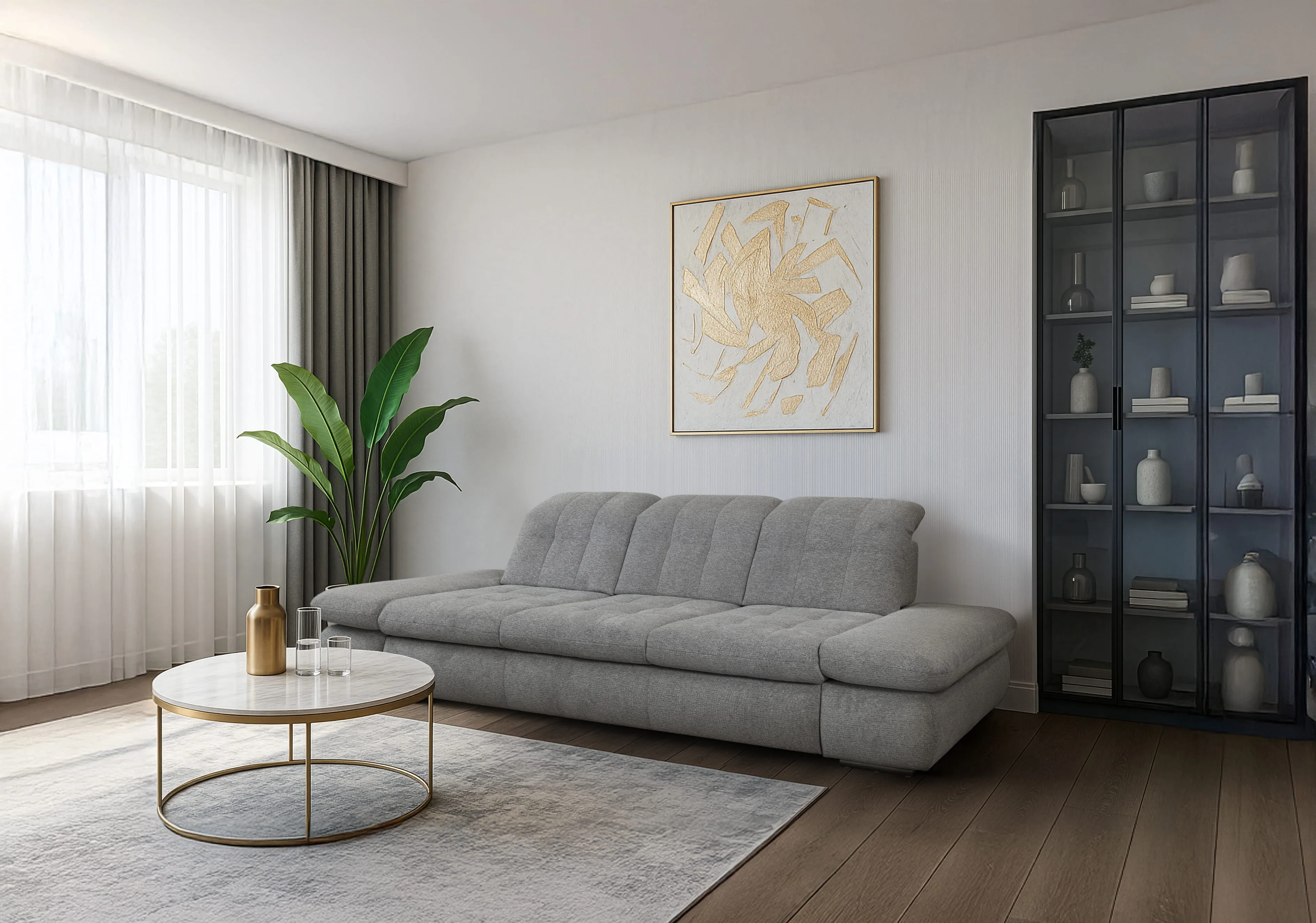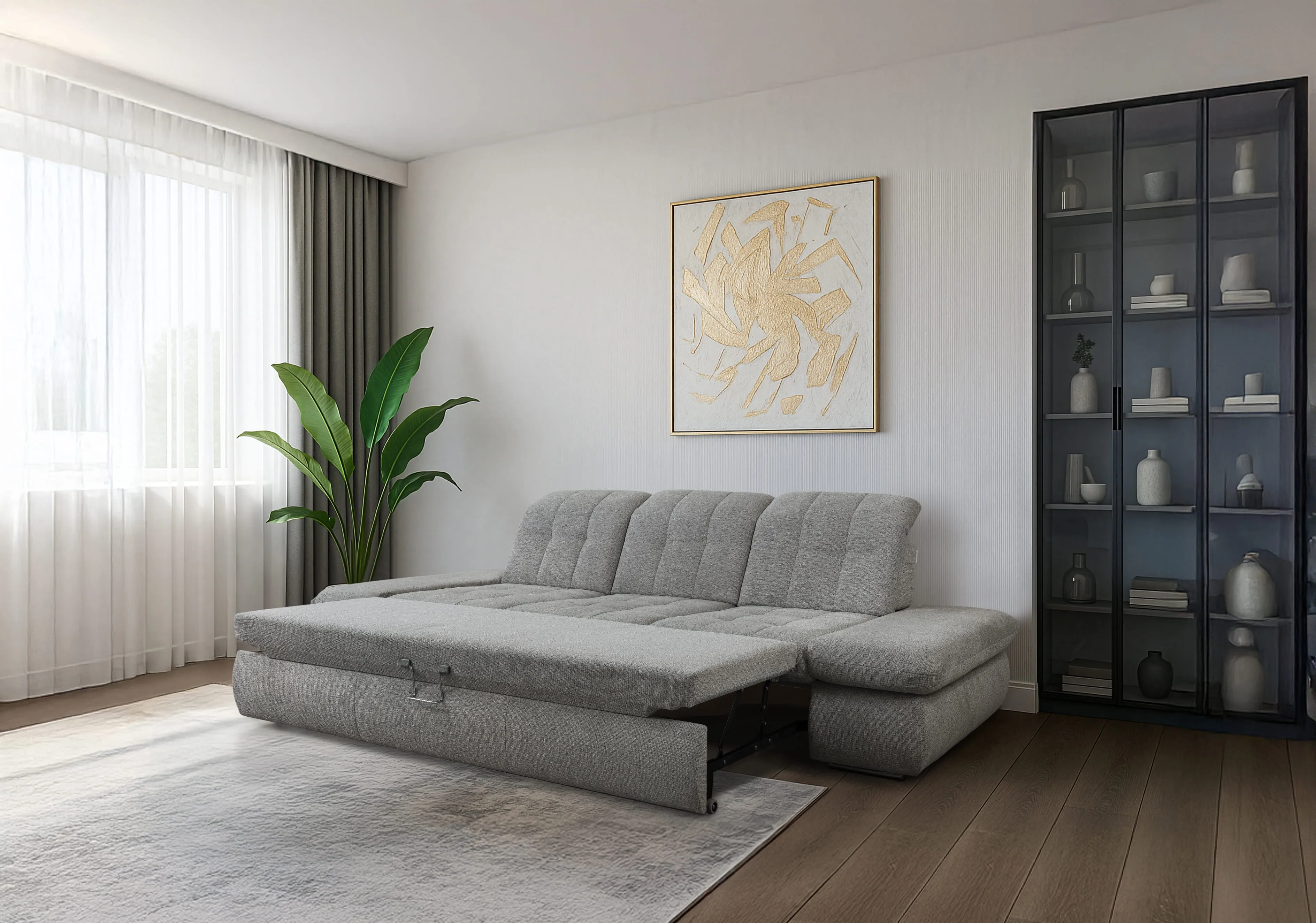 ✔ Трехместный элемент со спальным местом + регулировка глубины сидения (ST), подлокотников (AV), подголовников (KV) - механизм «Дельфин».