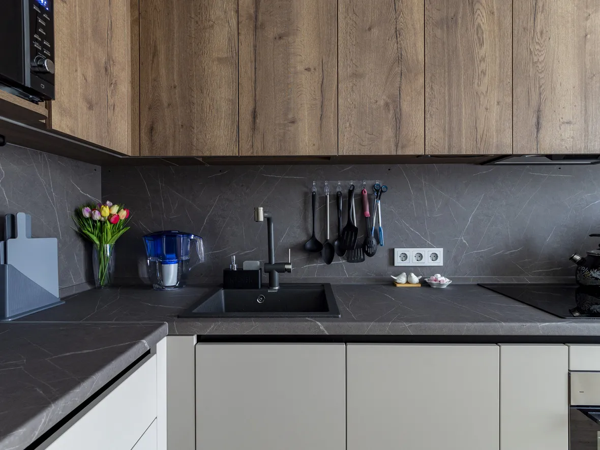 Столешница: 38мм и стеновая панель в цвете Мармо