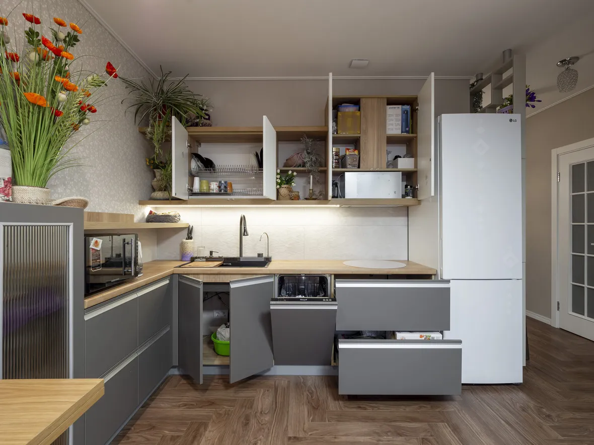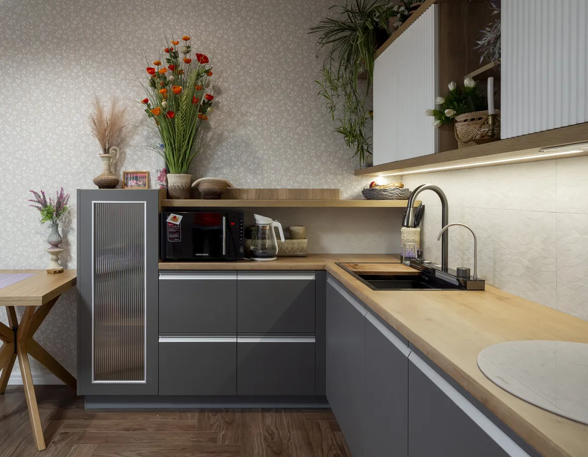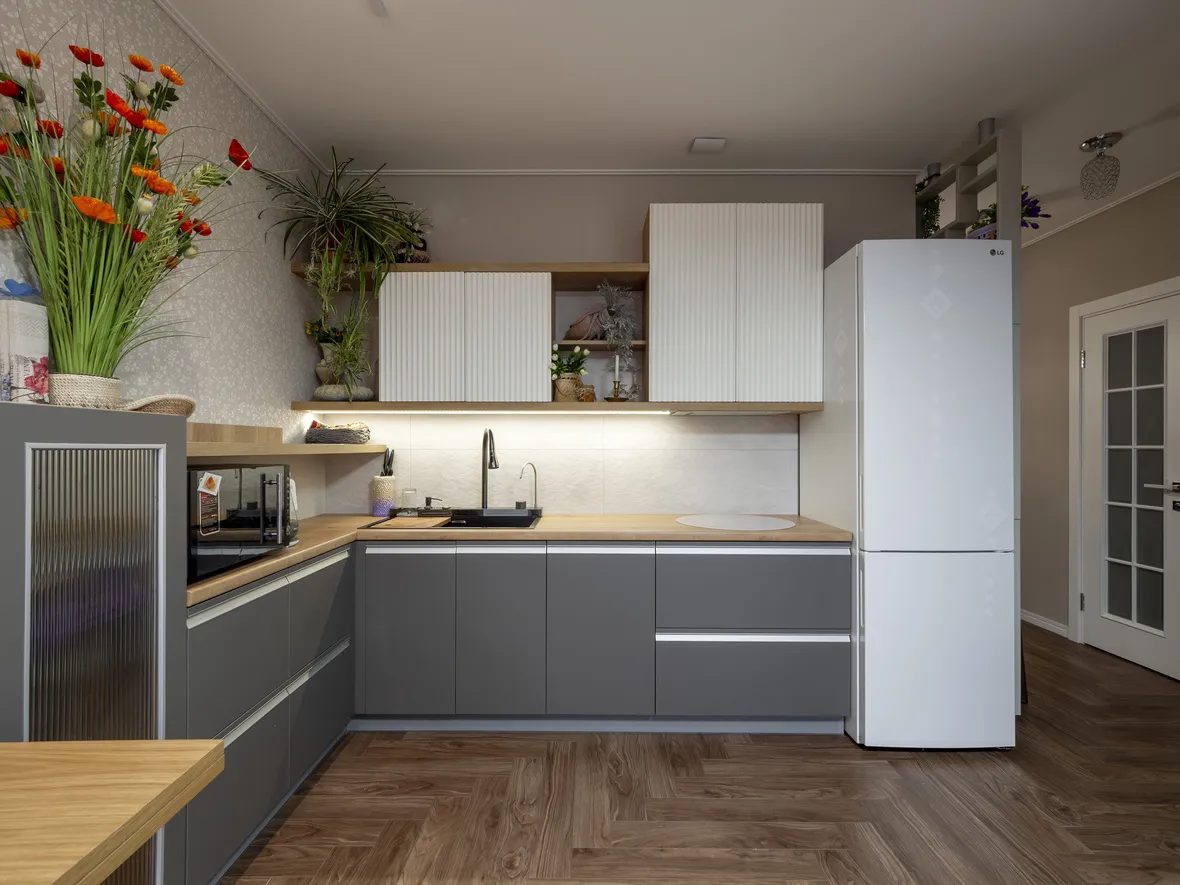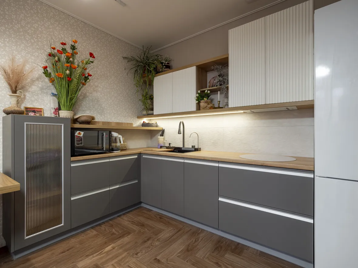 Фасад: Акрил-5 в цвете Пепел; Флавио в цвете Молочный РЕТ