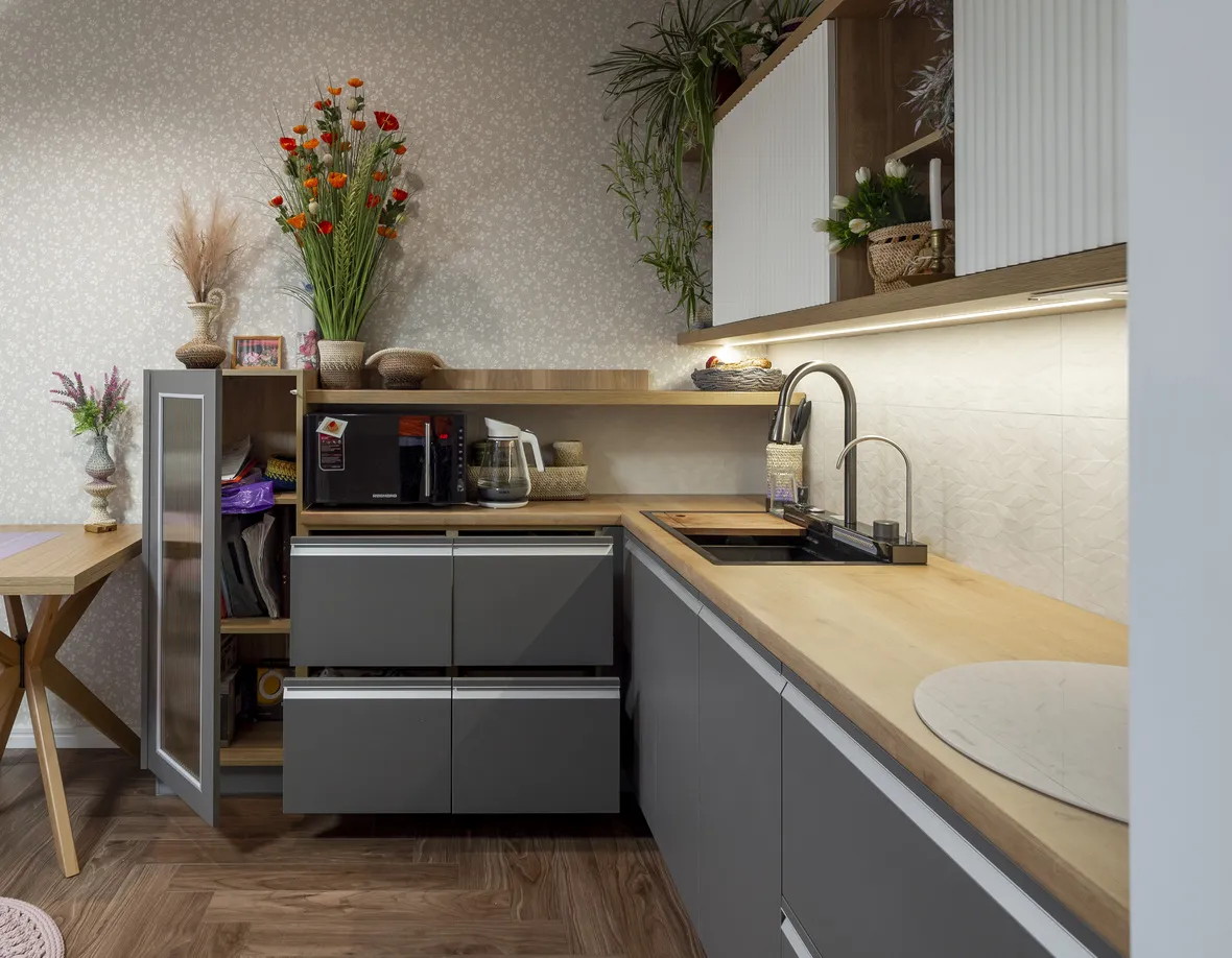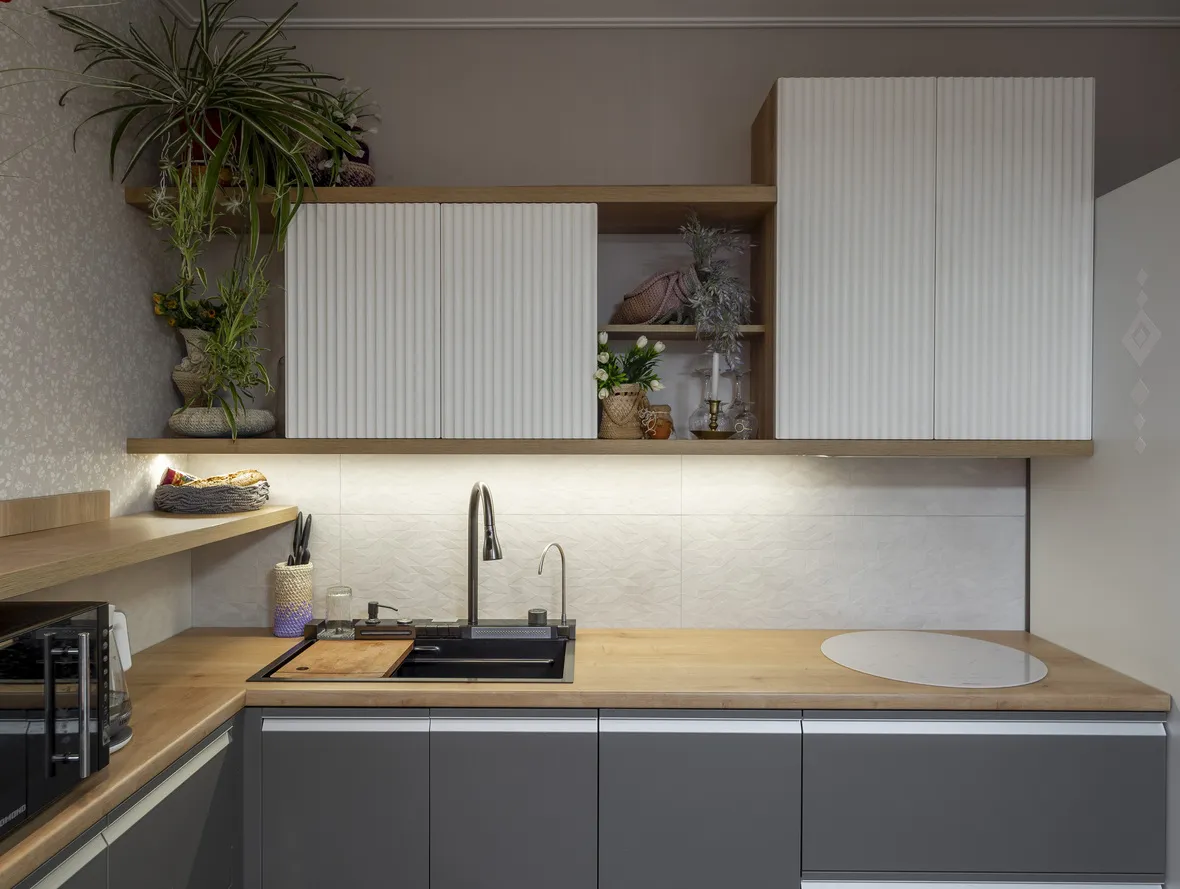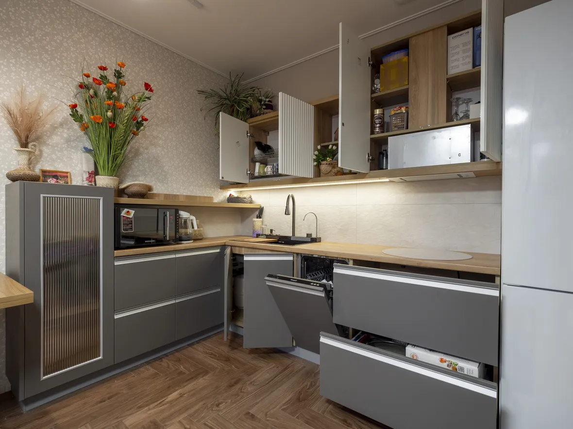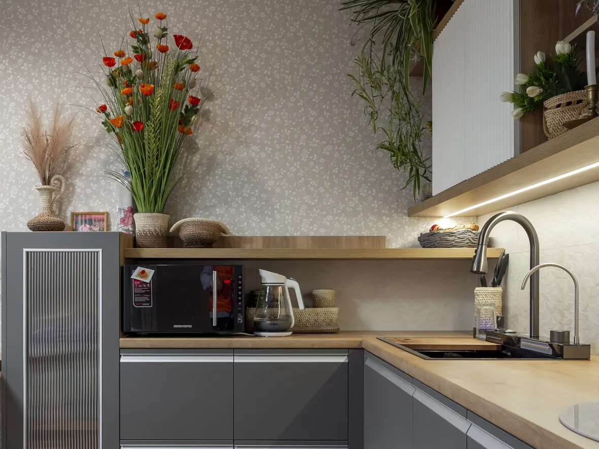 Фасад: Акрил-5 в цвете Пепел; Флавио в цвете Молочный РЕТ