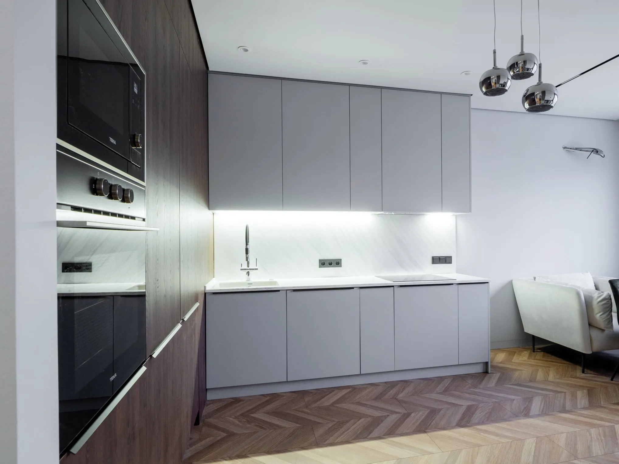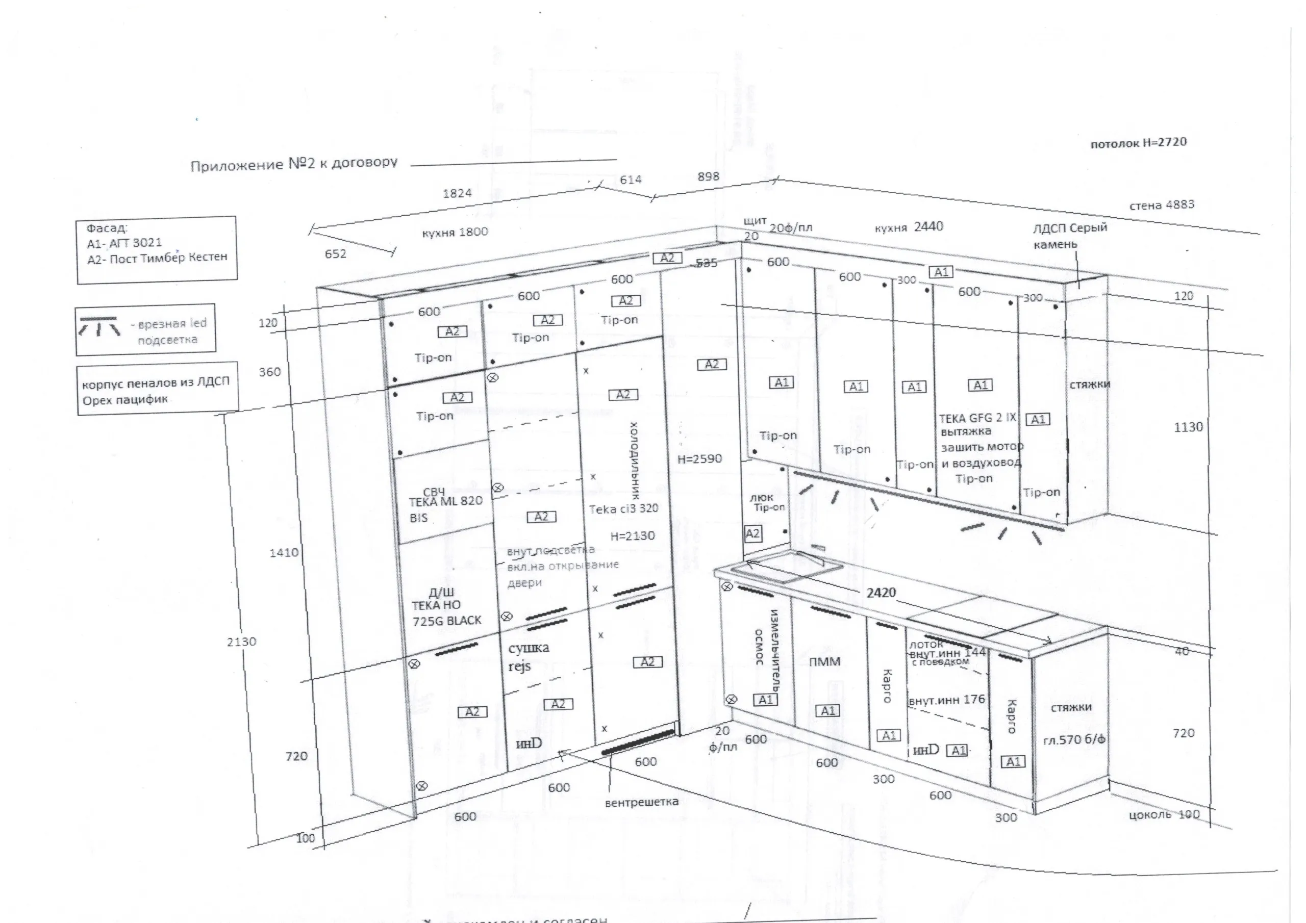 Фасады: МДФ Эмаль АГТ-Супрамат 3021 / ЛДСП Тибер Кестен