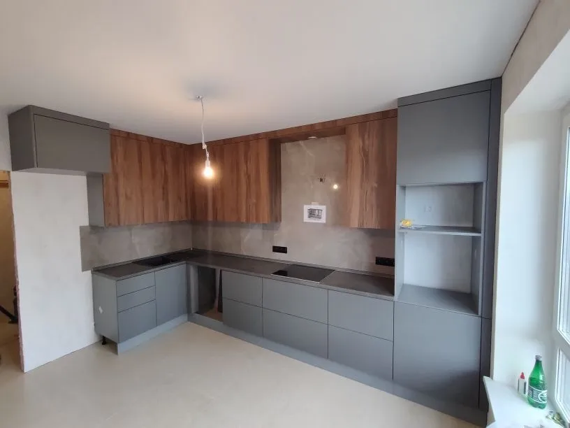 Фасады: ЛДСП Тимбер Марон верт / Пост-АГТ Серый Супрамат