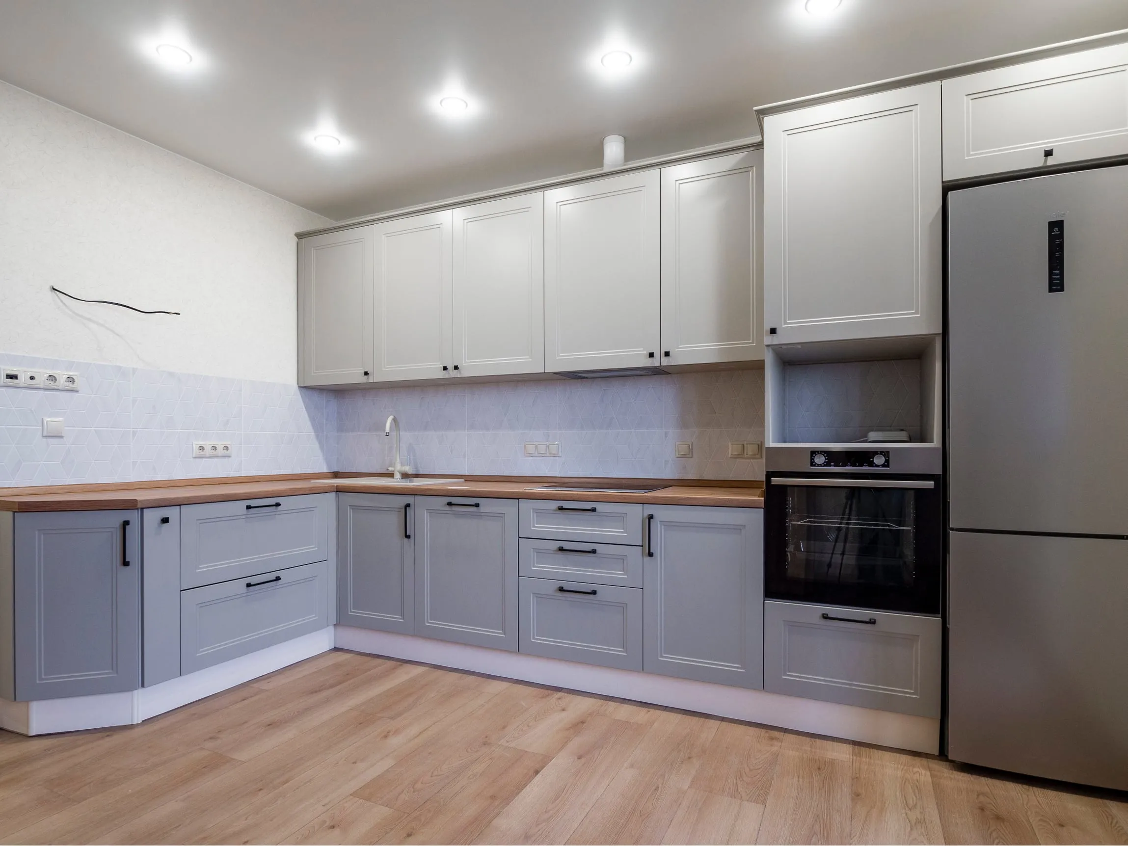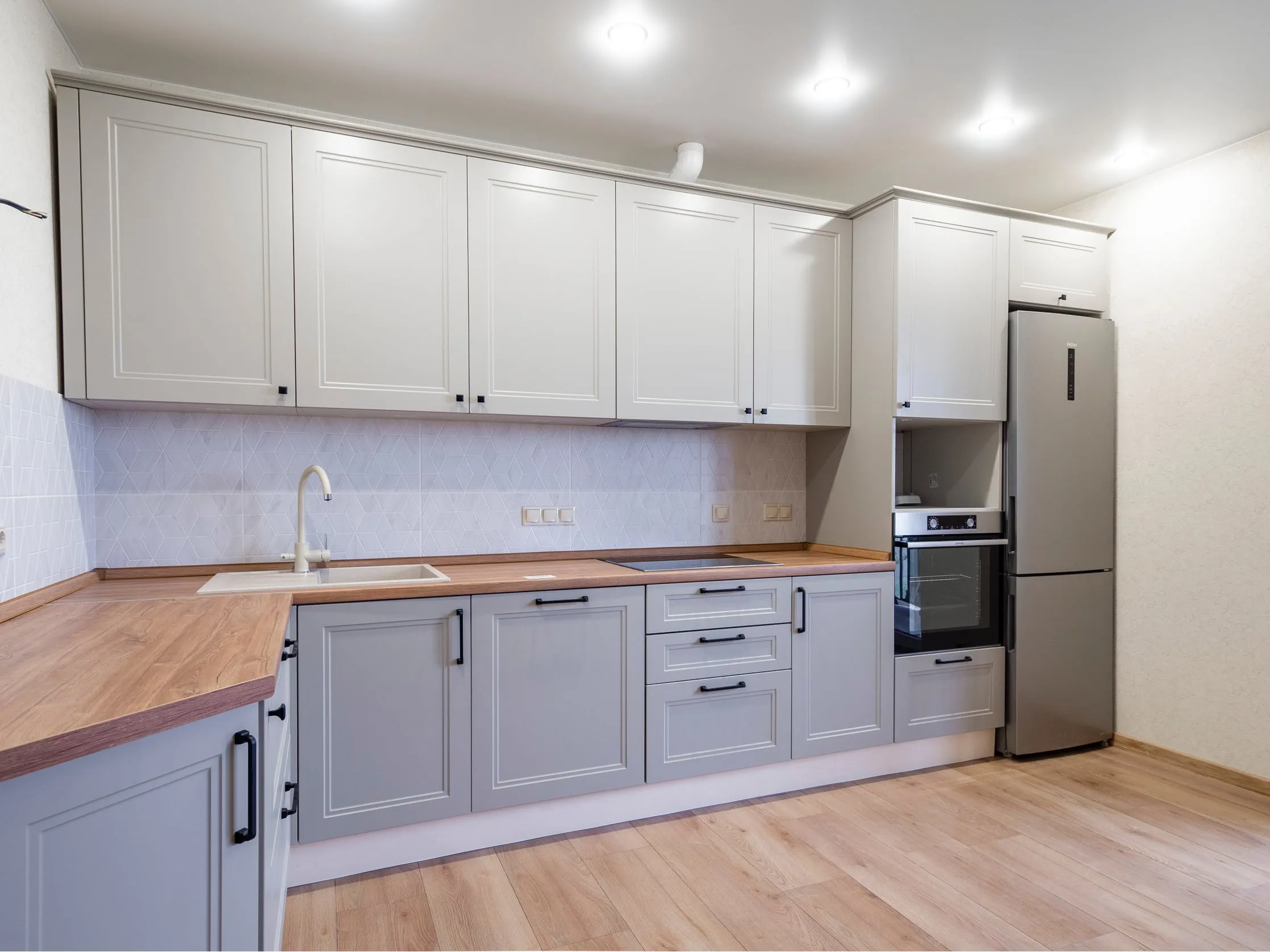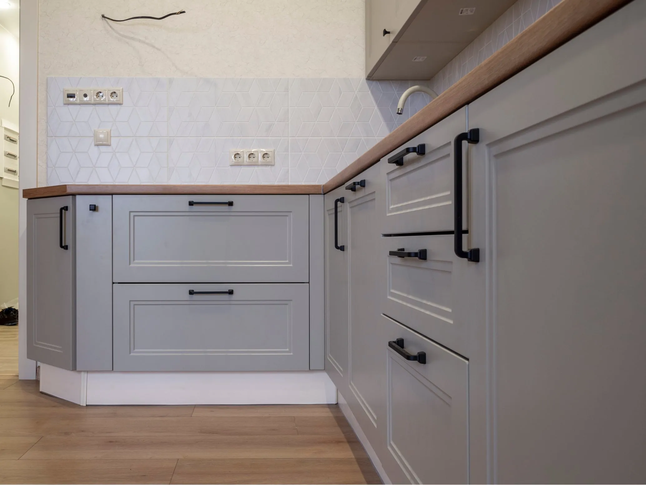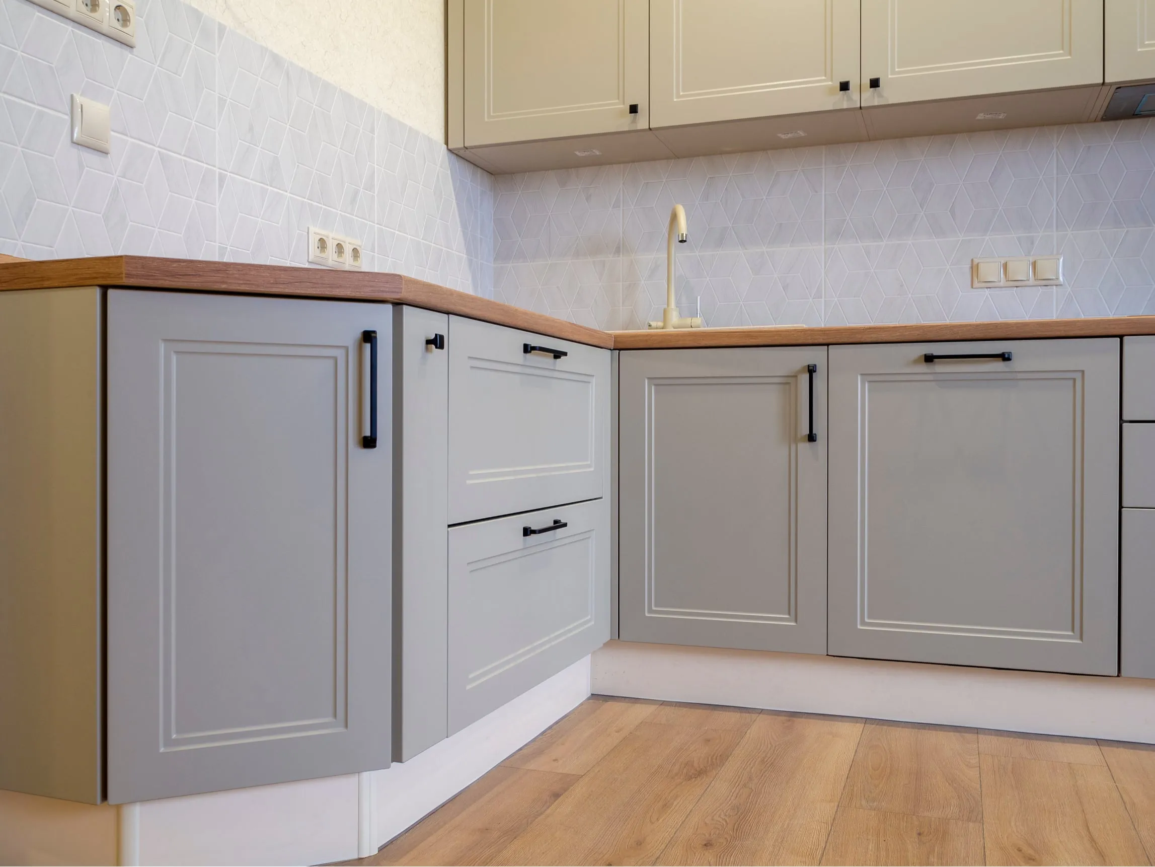 Фасады: МДФ Эмаль, Система, Теплый серый / МДФ ПВХ, Эйвон, Теплый серый