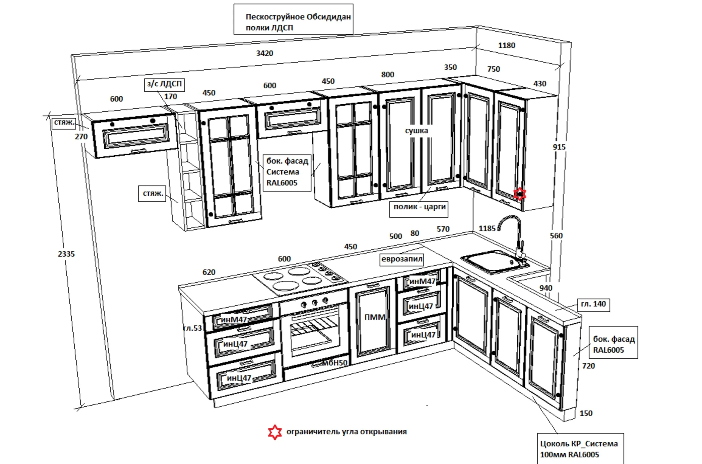 Фасады: МДФ ПВХ, Лонгфорд RAL6005 мат