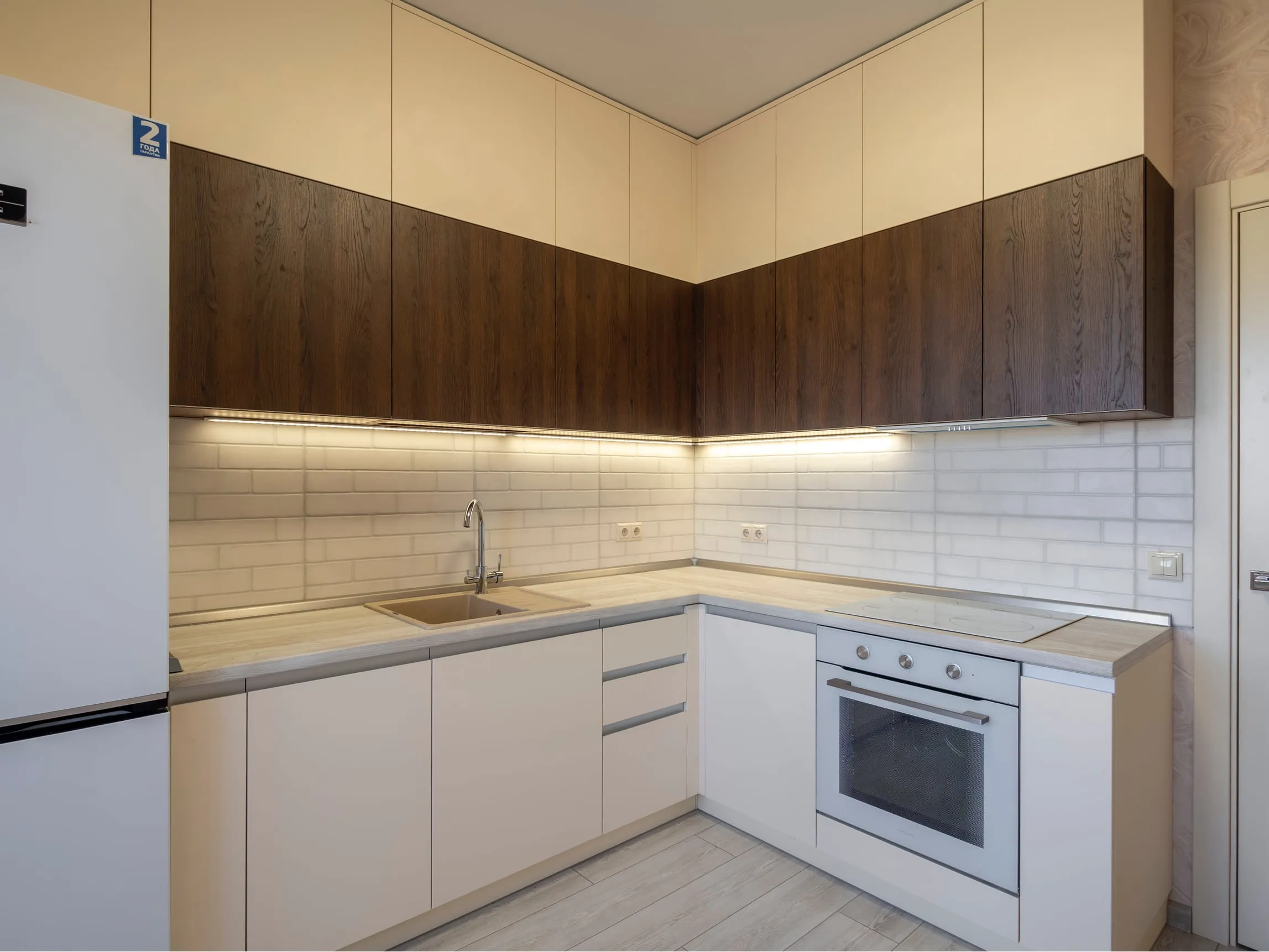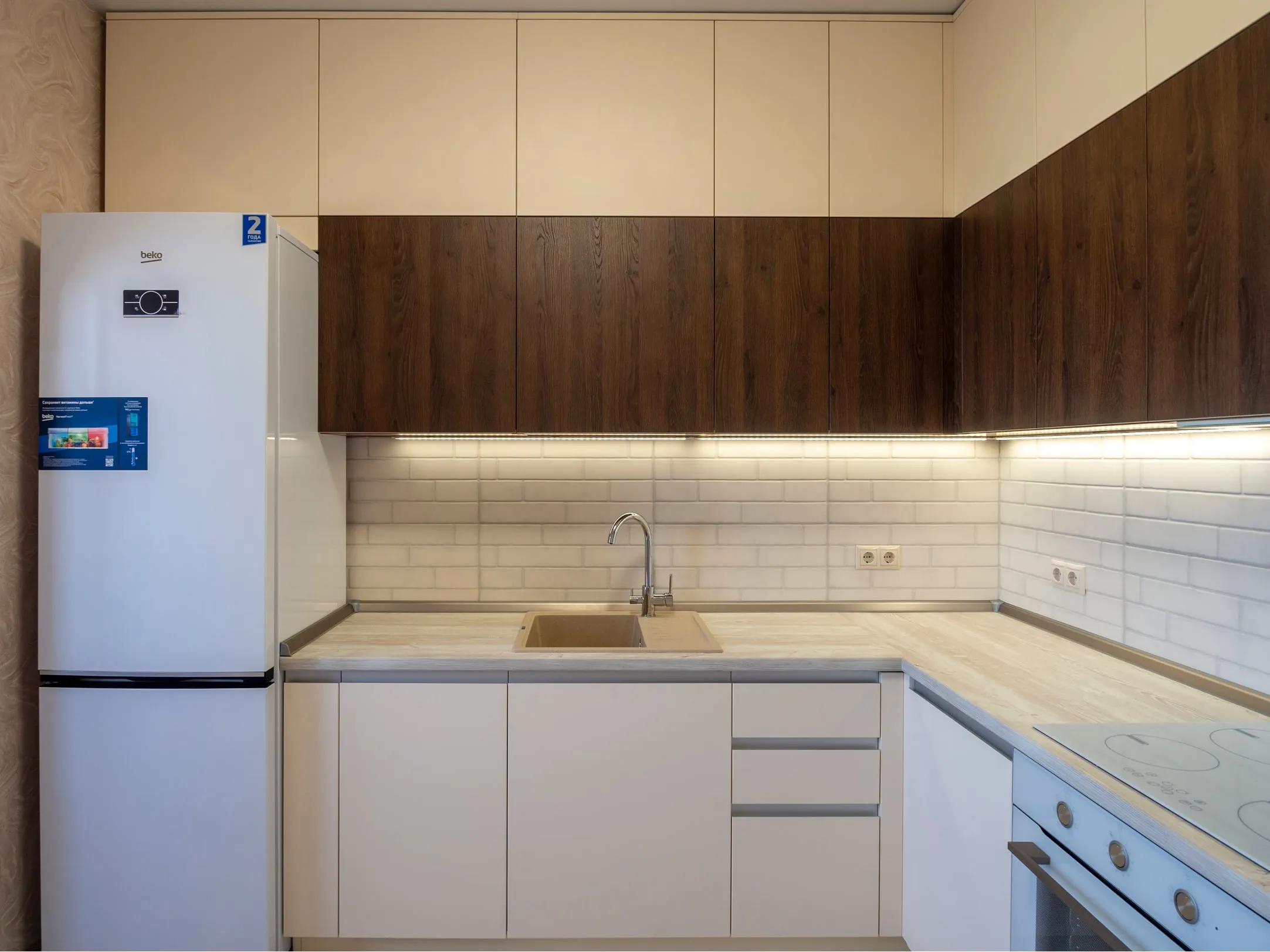 Фасады: ЛДСП Тимбер Кестен / МДФ эмаль, Система, Жасмин