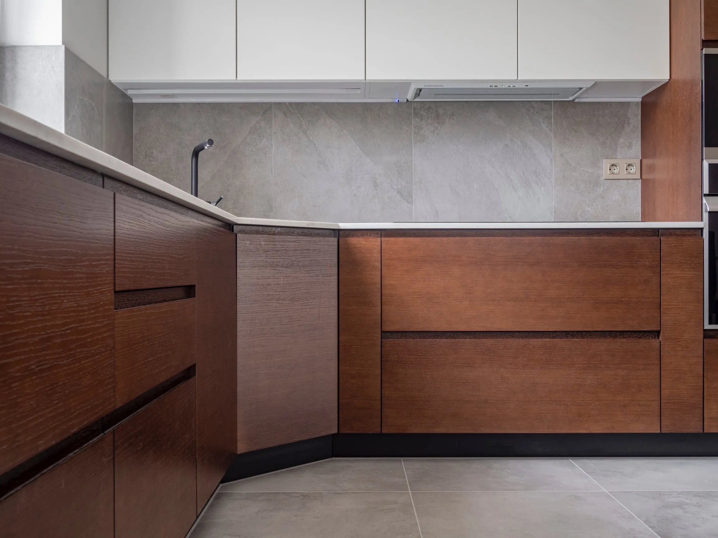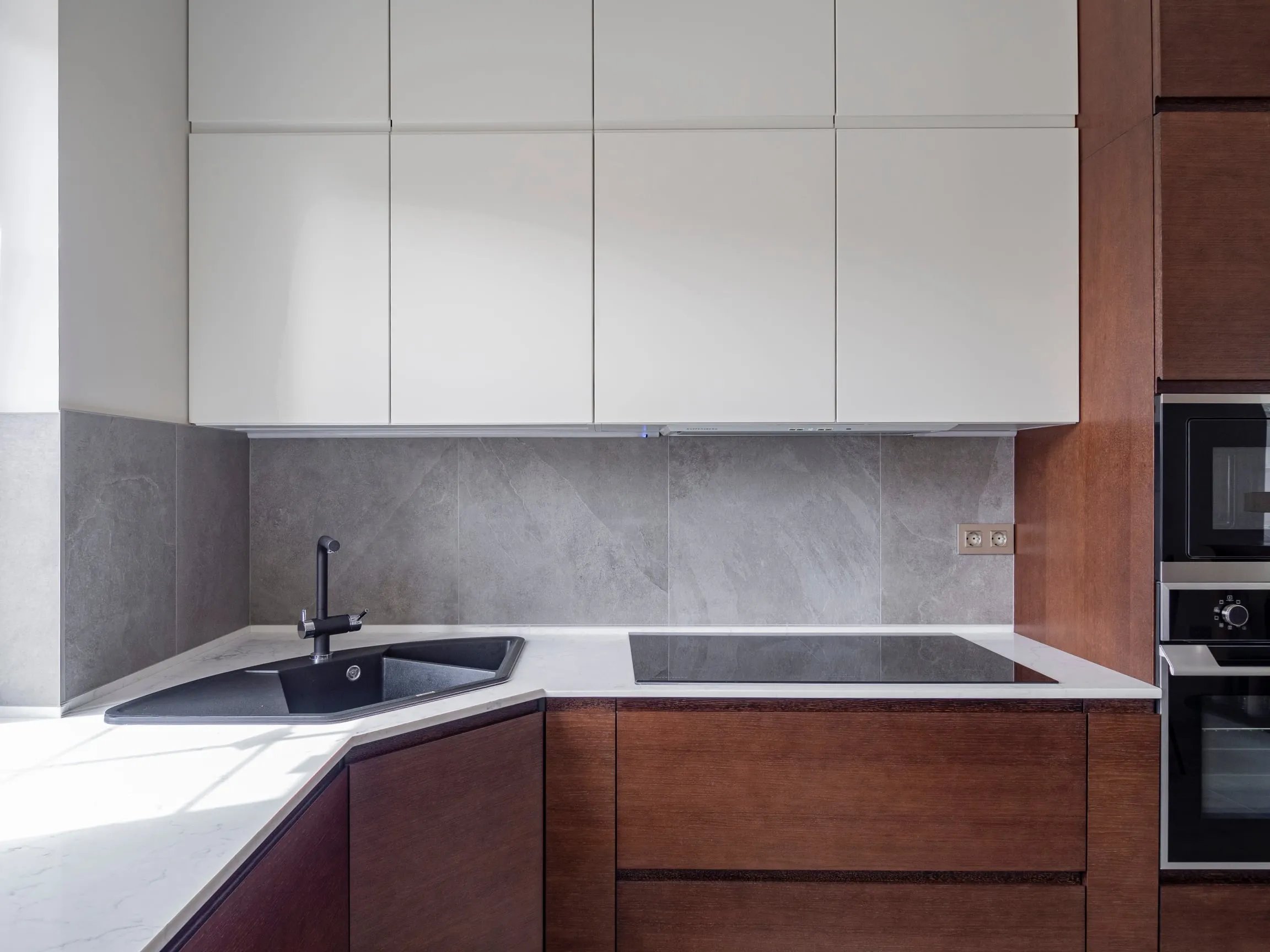 Фасады: ДСП Шпон дуба/ МДФ Эмаль Система Ral 9010 мат