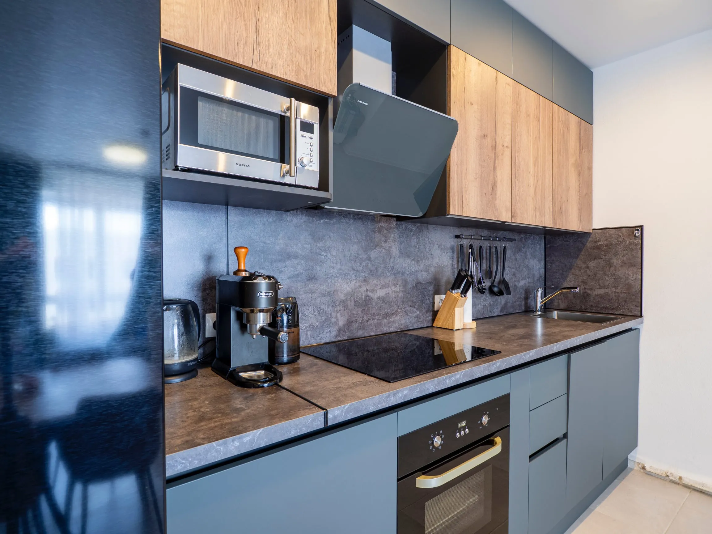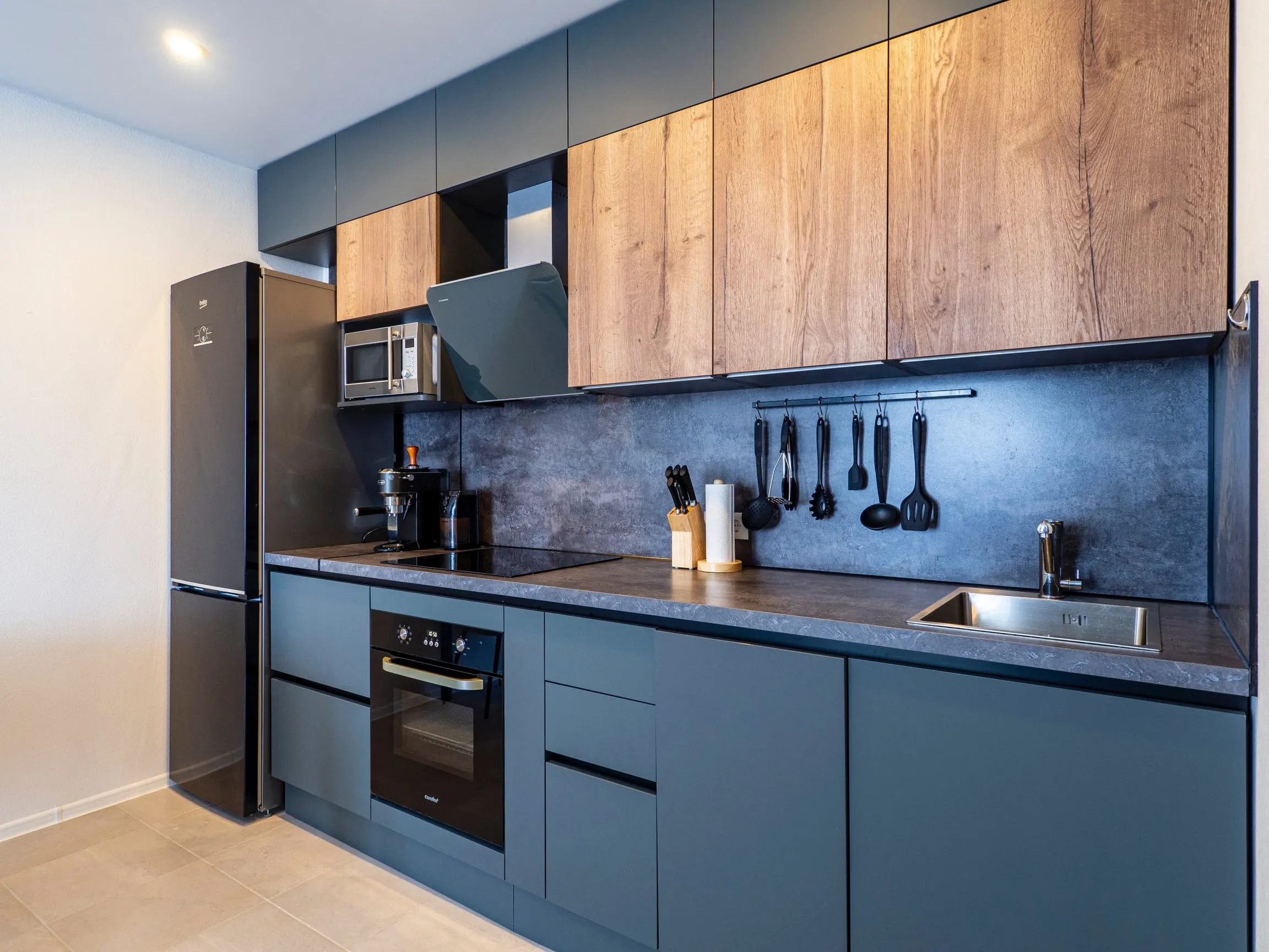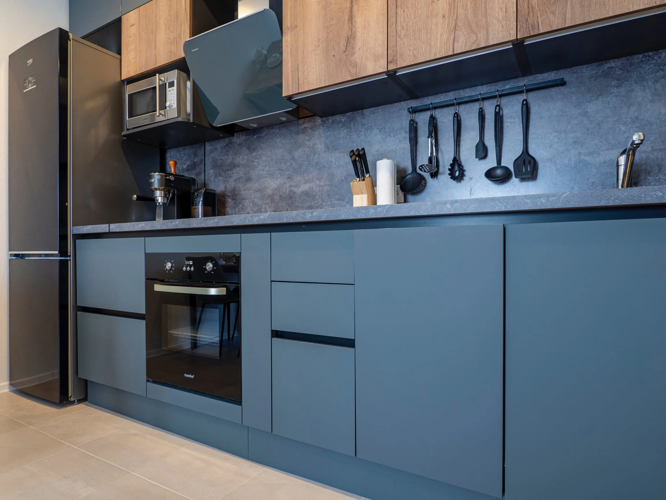 Фасады: Акрил-8, Зеленый NTM / ЛДСП Тимбер Рока верт
