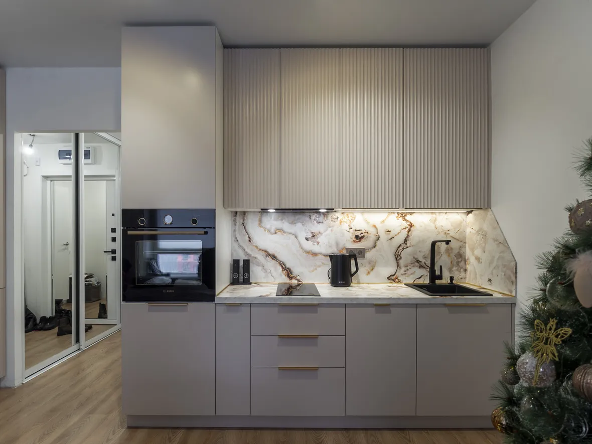 Фасад: Флавио в цвете Сатин бежевый; Краска в цвете Сатин бежевый