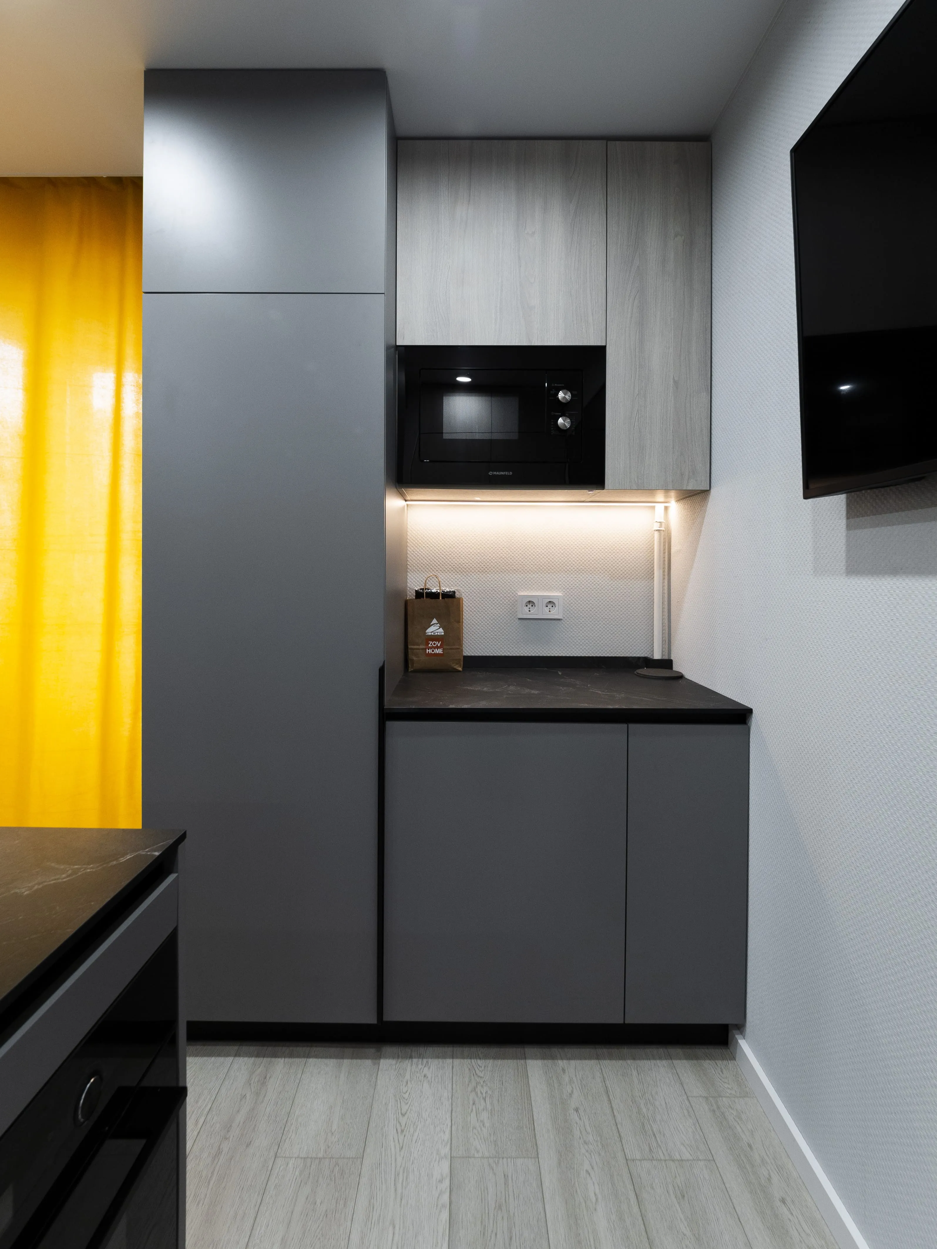 ◦ Фасад: ДСП-2 в цвете Серый пыльный; ДСП-2 в цвете Вяз серебряный