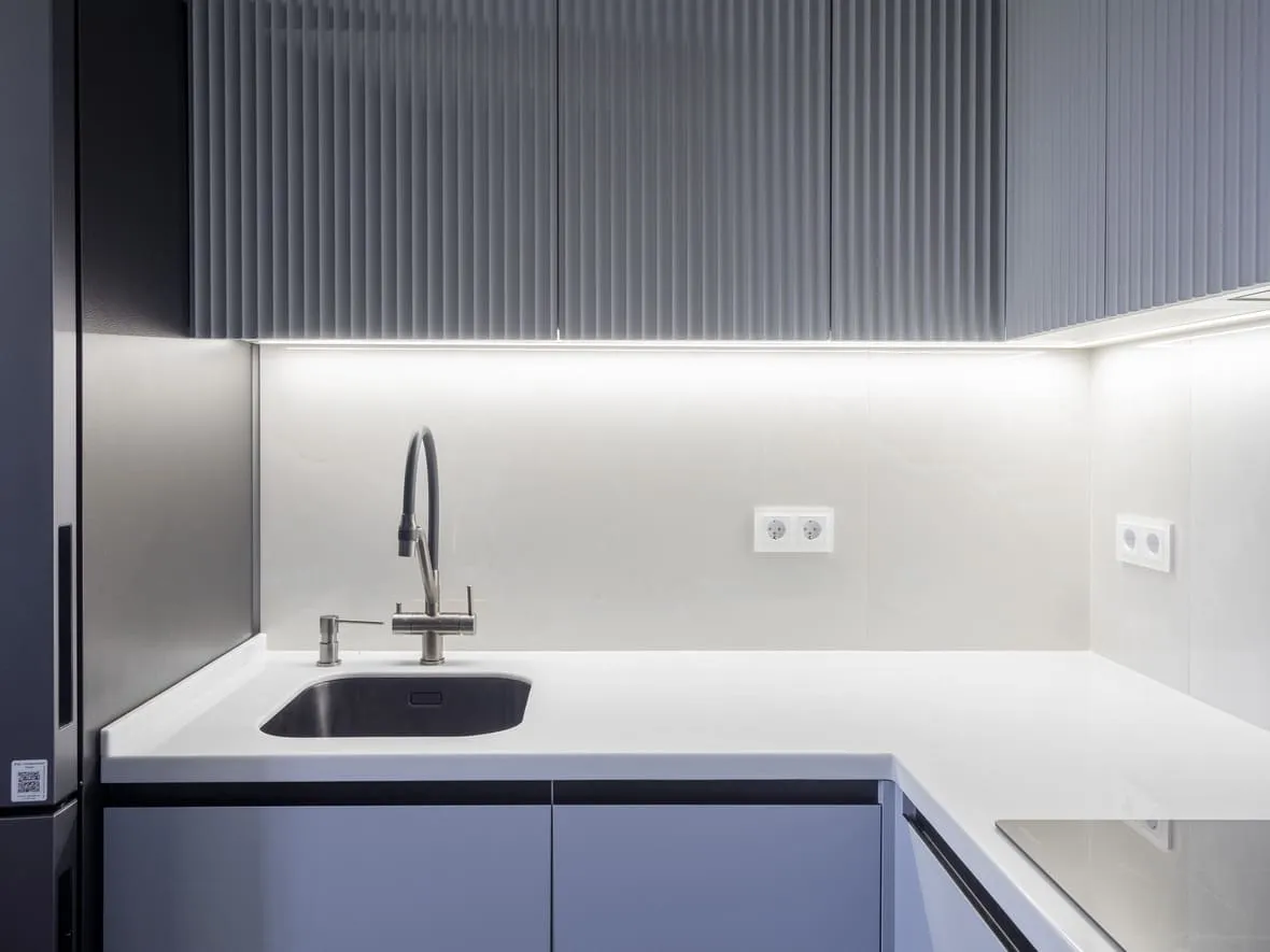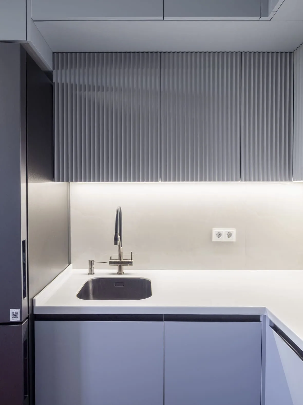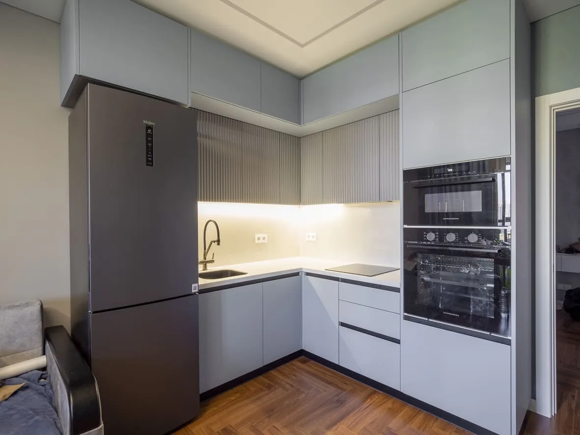 Фасад: Акрил-5 в цвете Ниагара; Флавио в цвете Стальной РЕТ