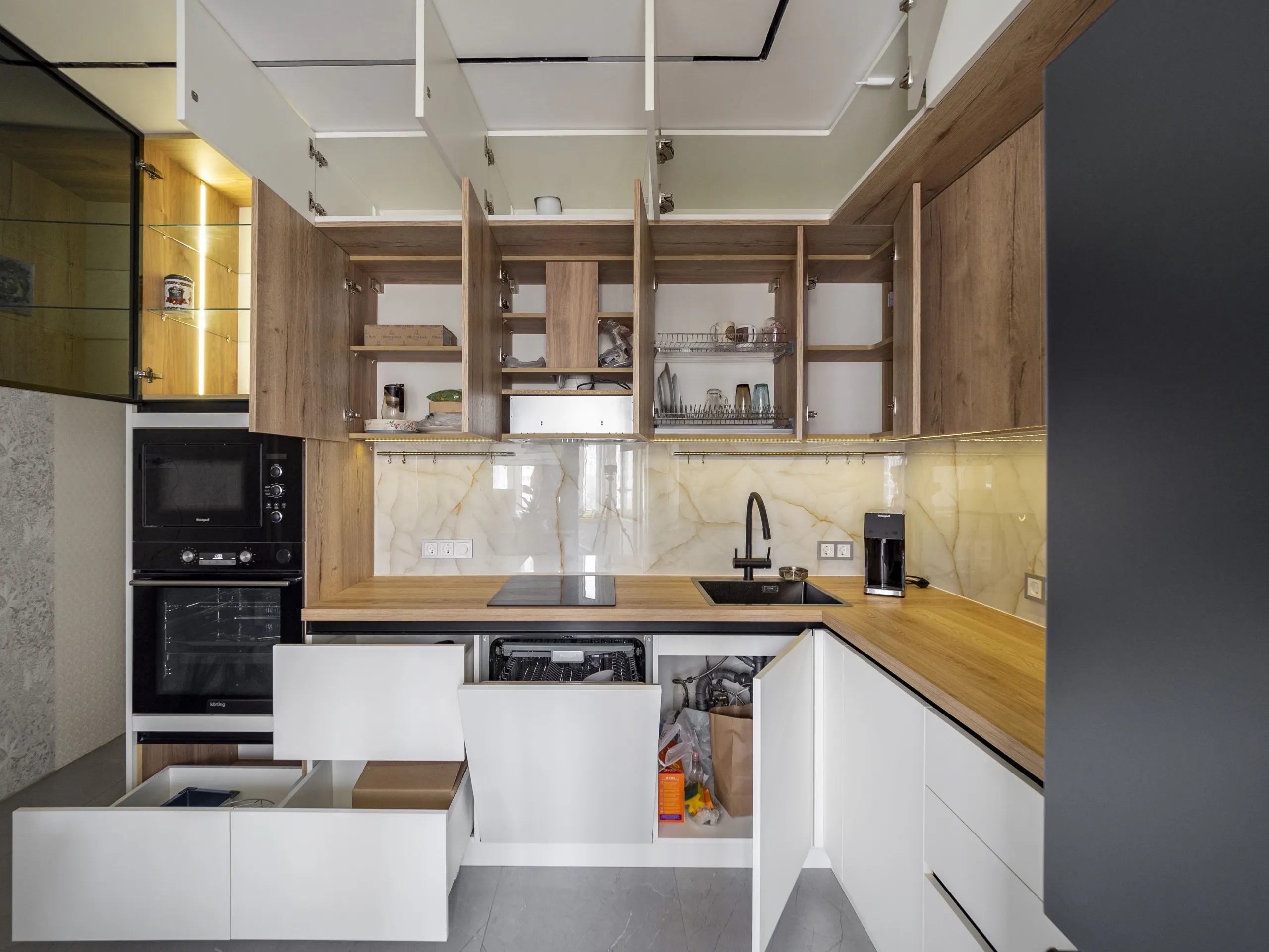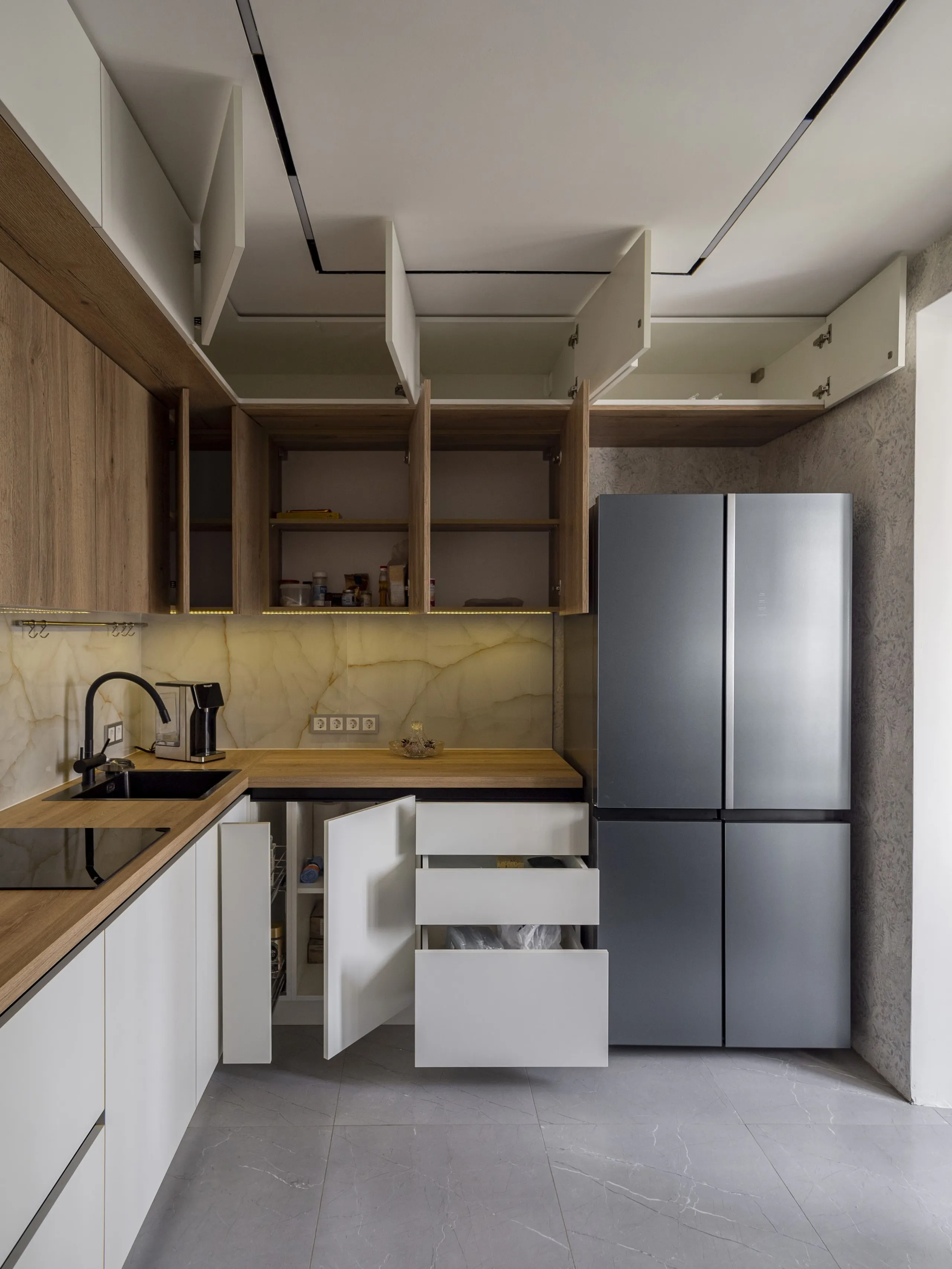 Фасад: Тимбер в цвете Галифакс; Акрил-5 в цвете Белый мат