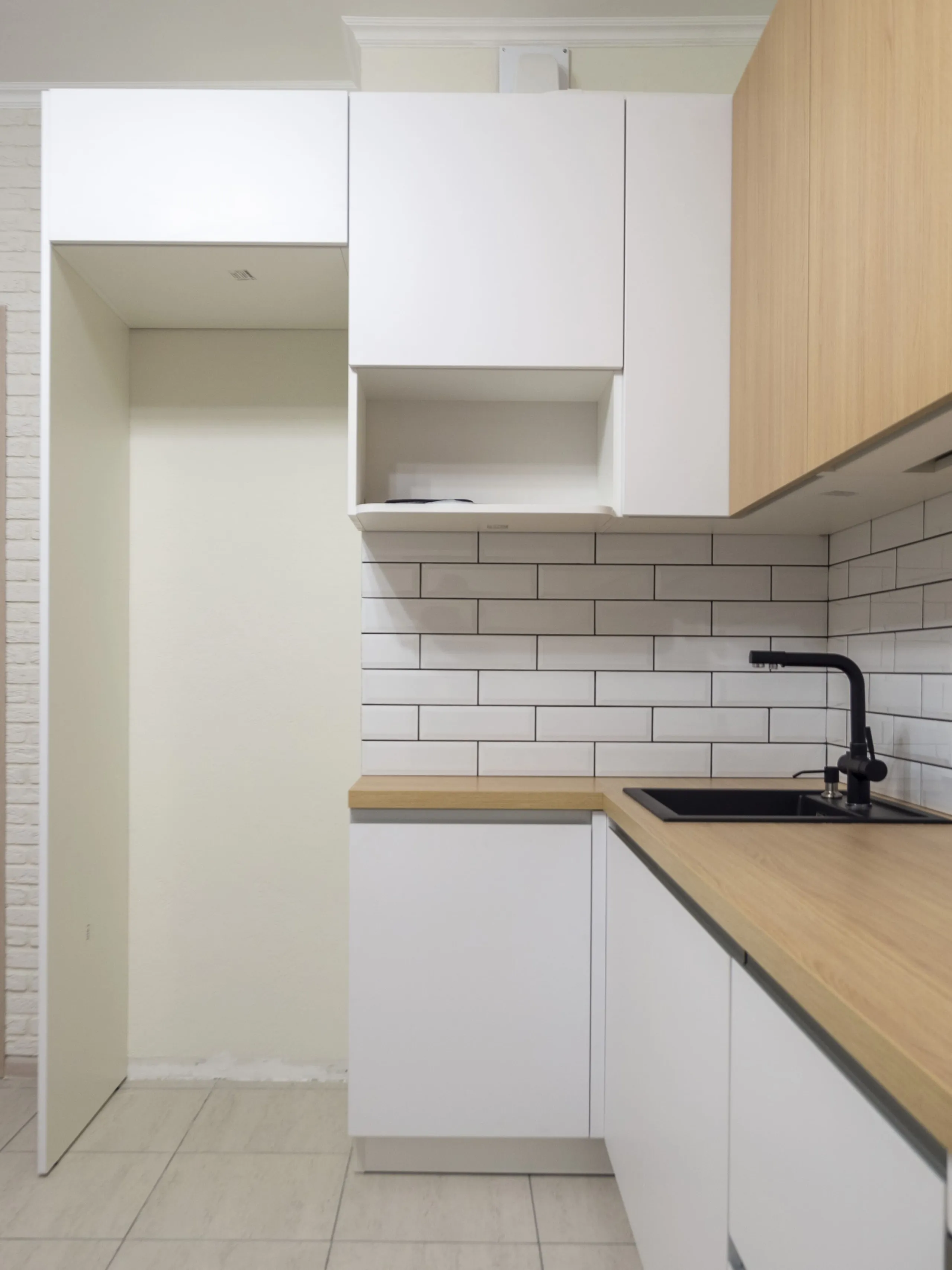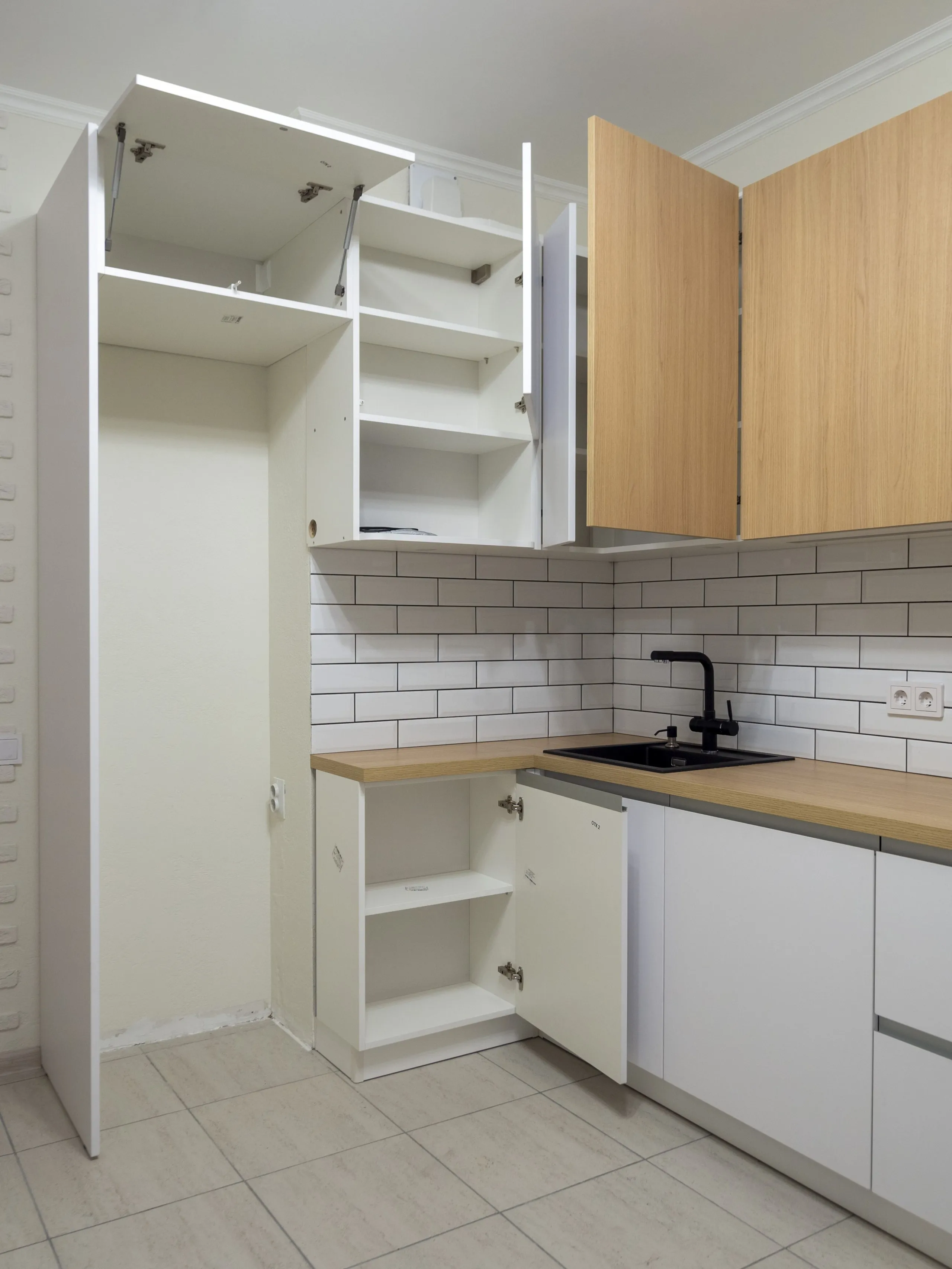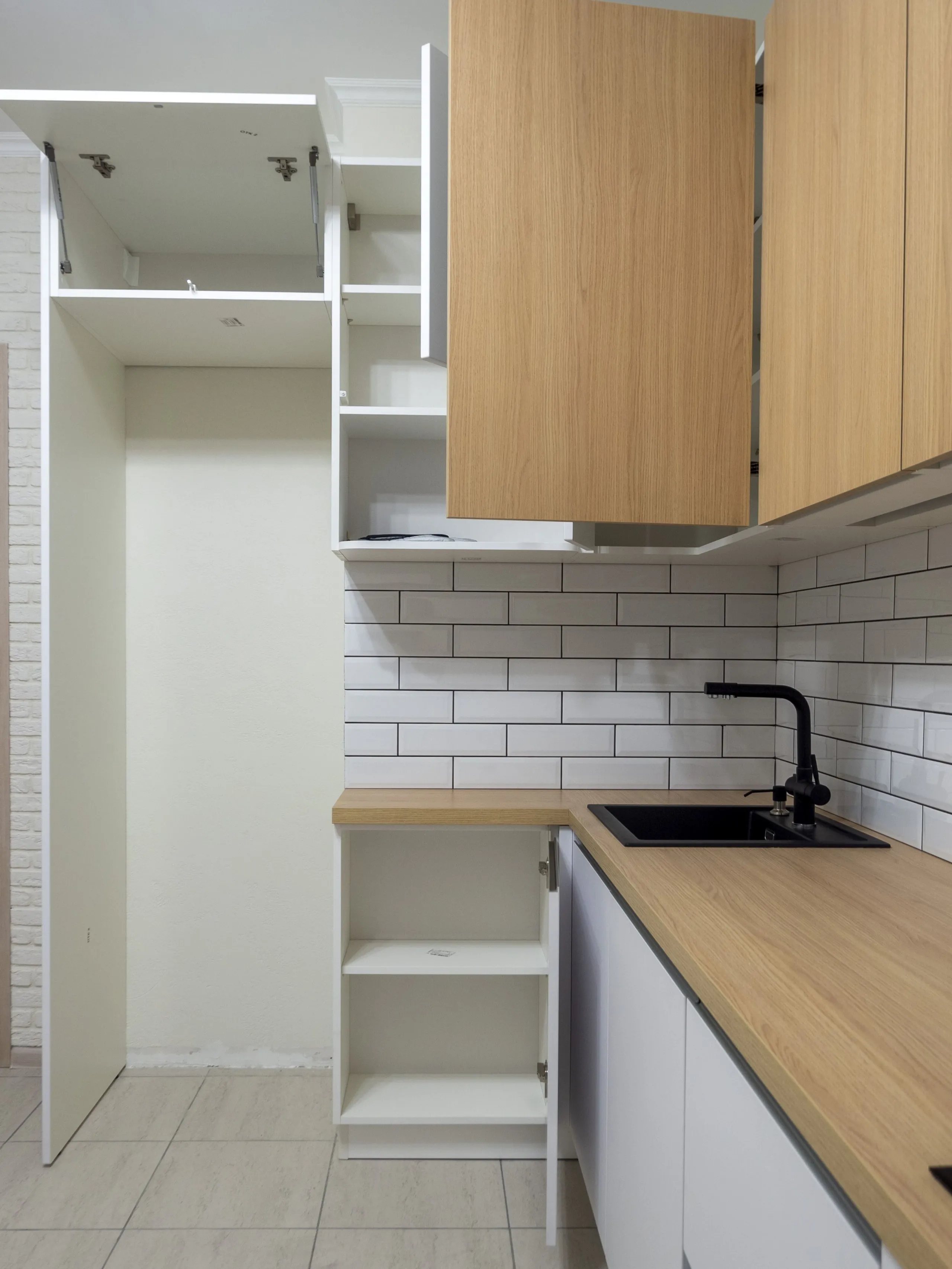Фасад: Пост-4 в цвете Дуб Ригато; Система в цвете Белый супермат