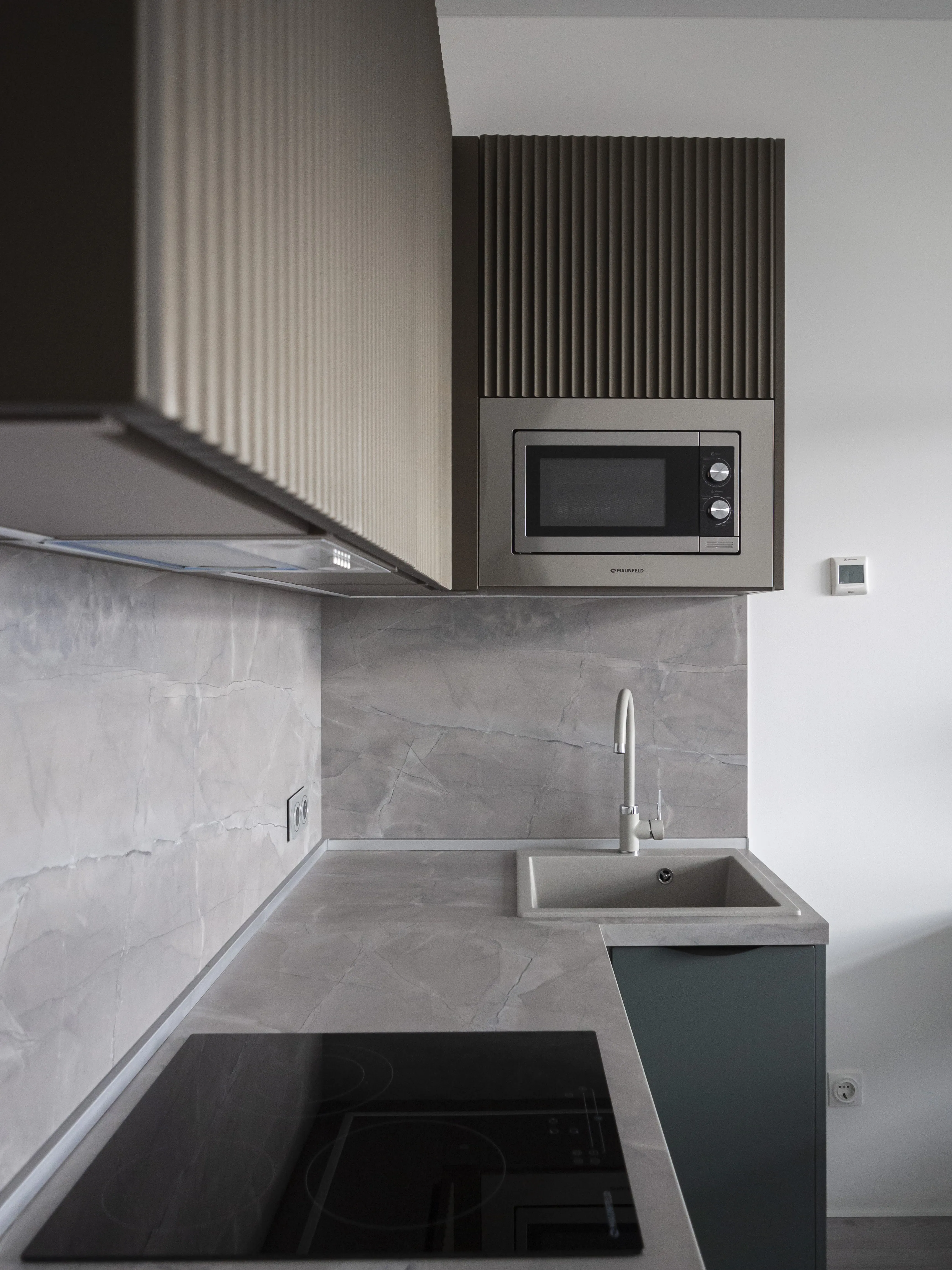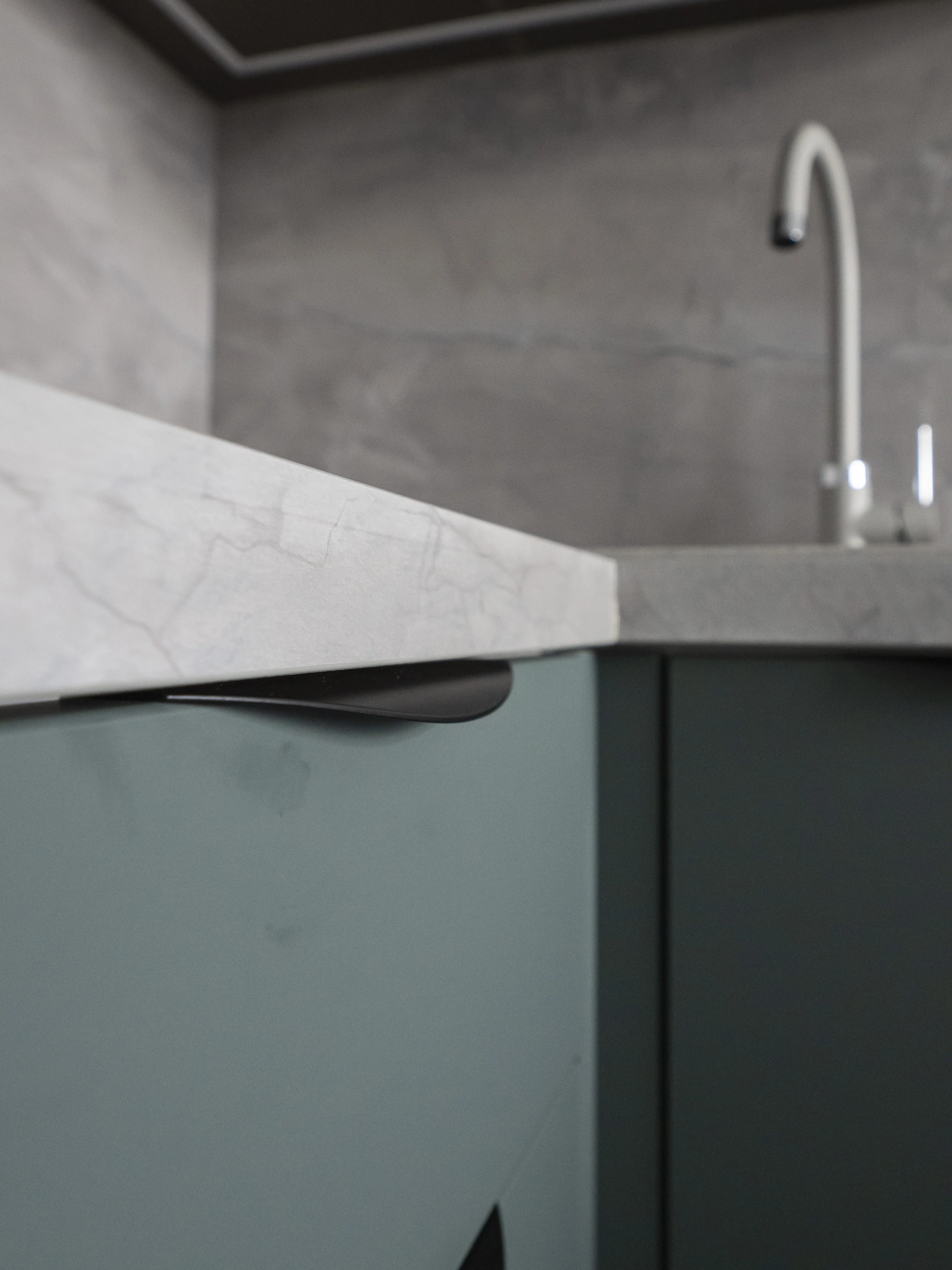 ◦ Столешница: 38мм в цвете Кварцит светло-серый