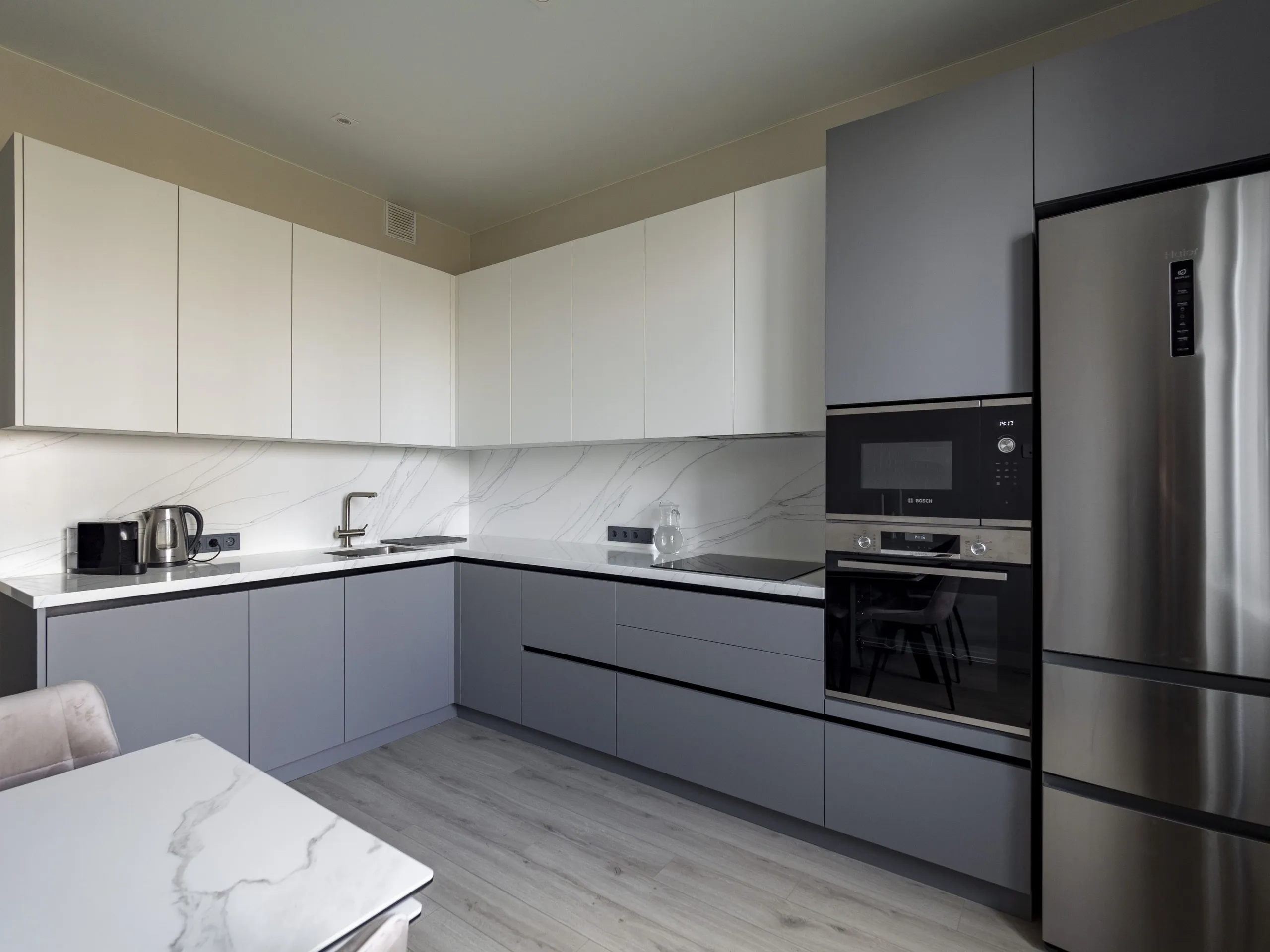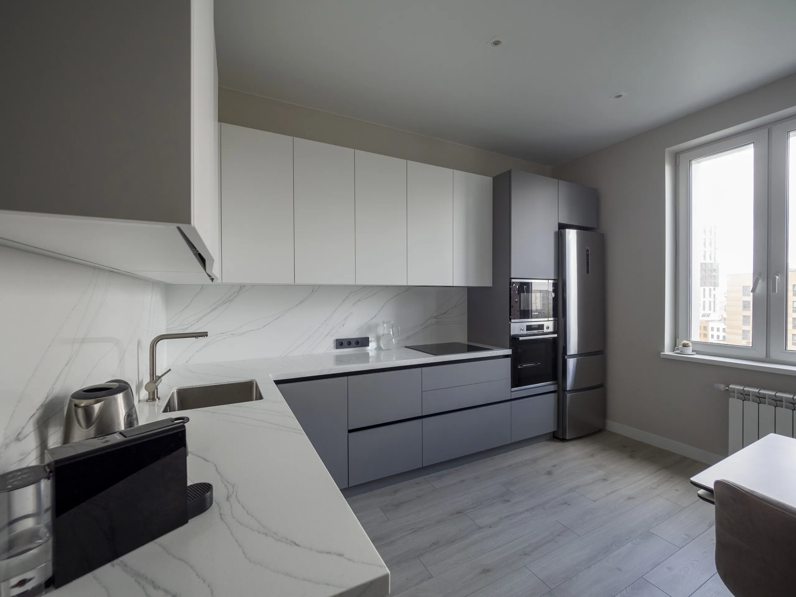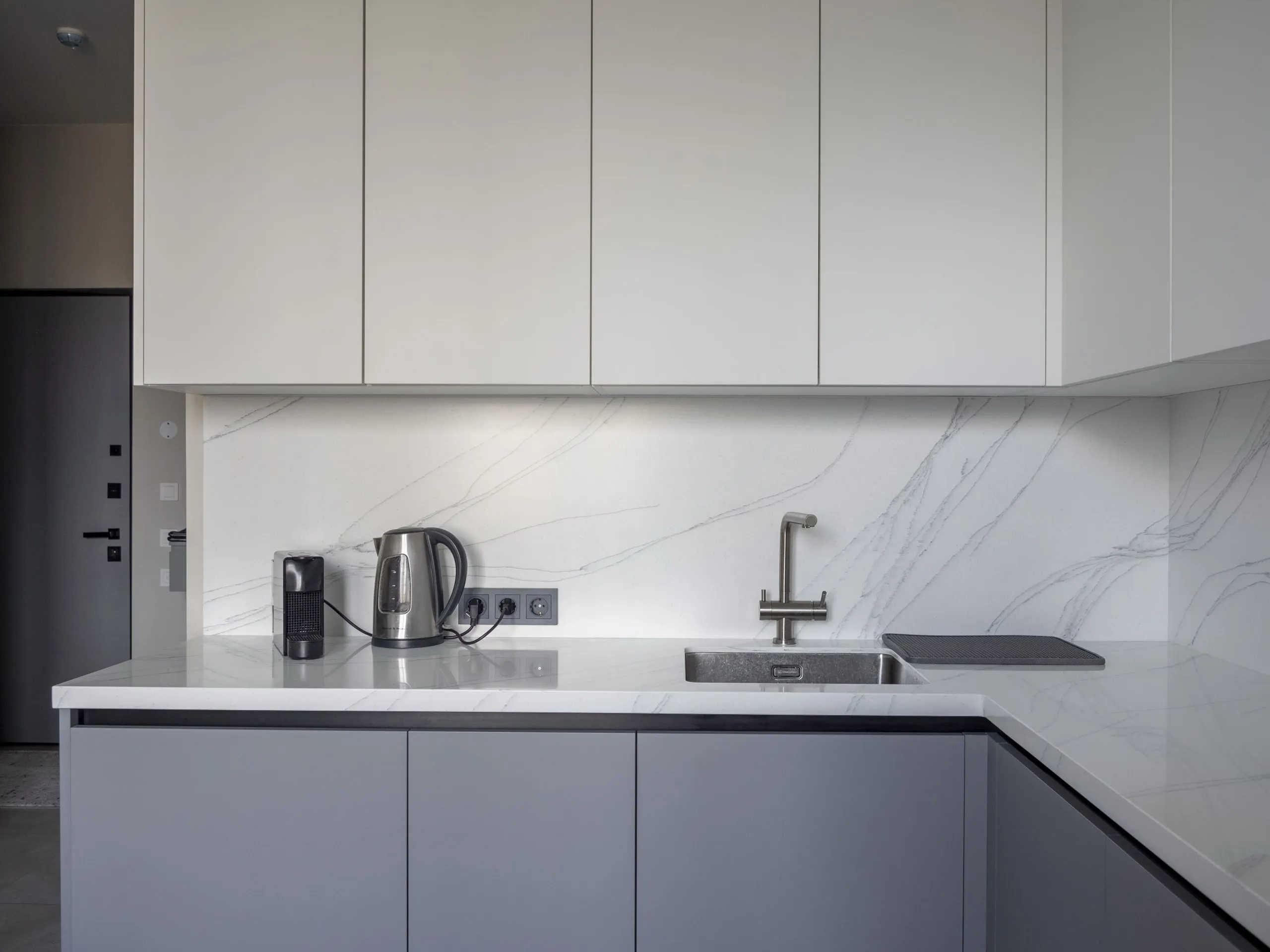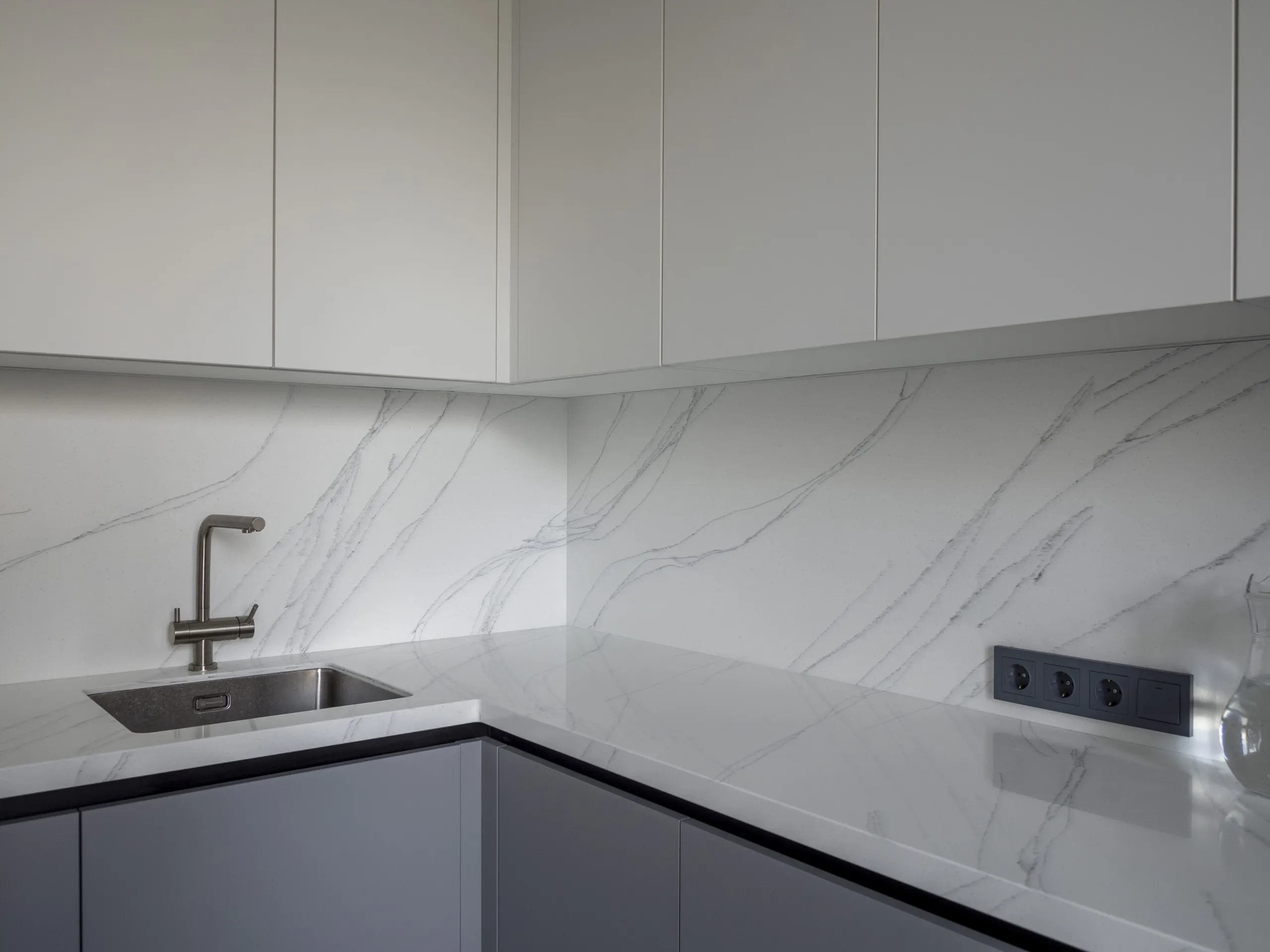 Столешница и стеновая панель: 40 мм акриловый камень GRANDEX C-801 Arezzo